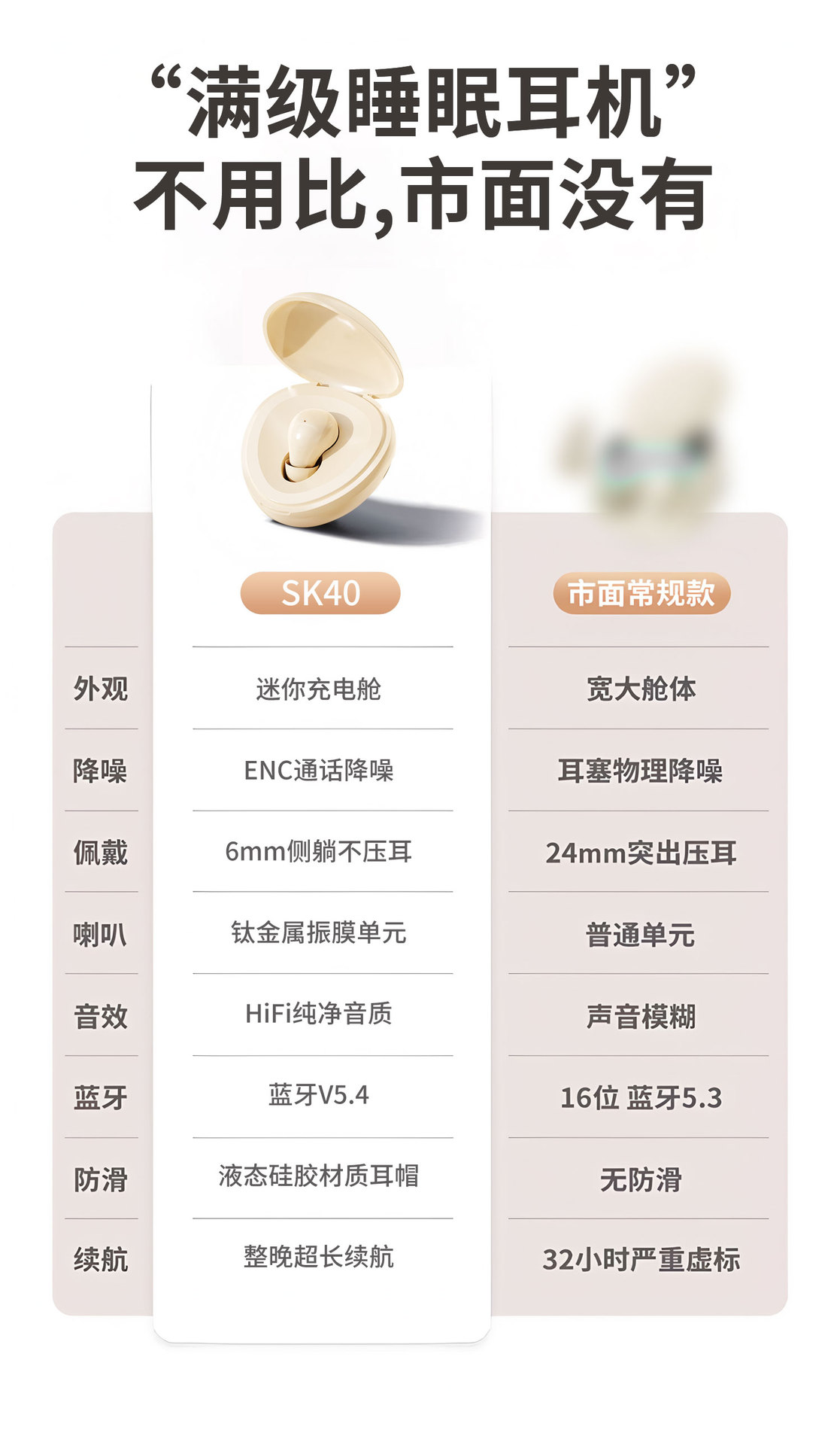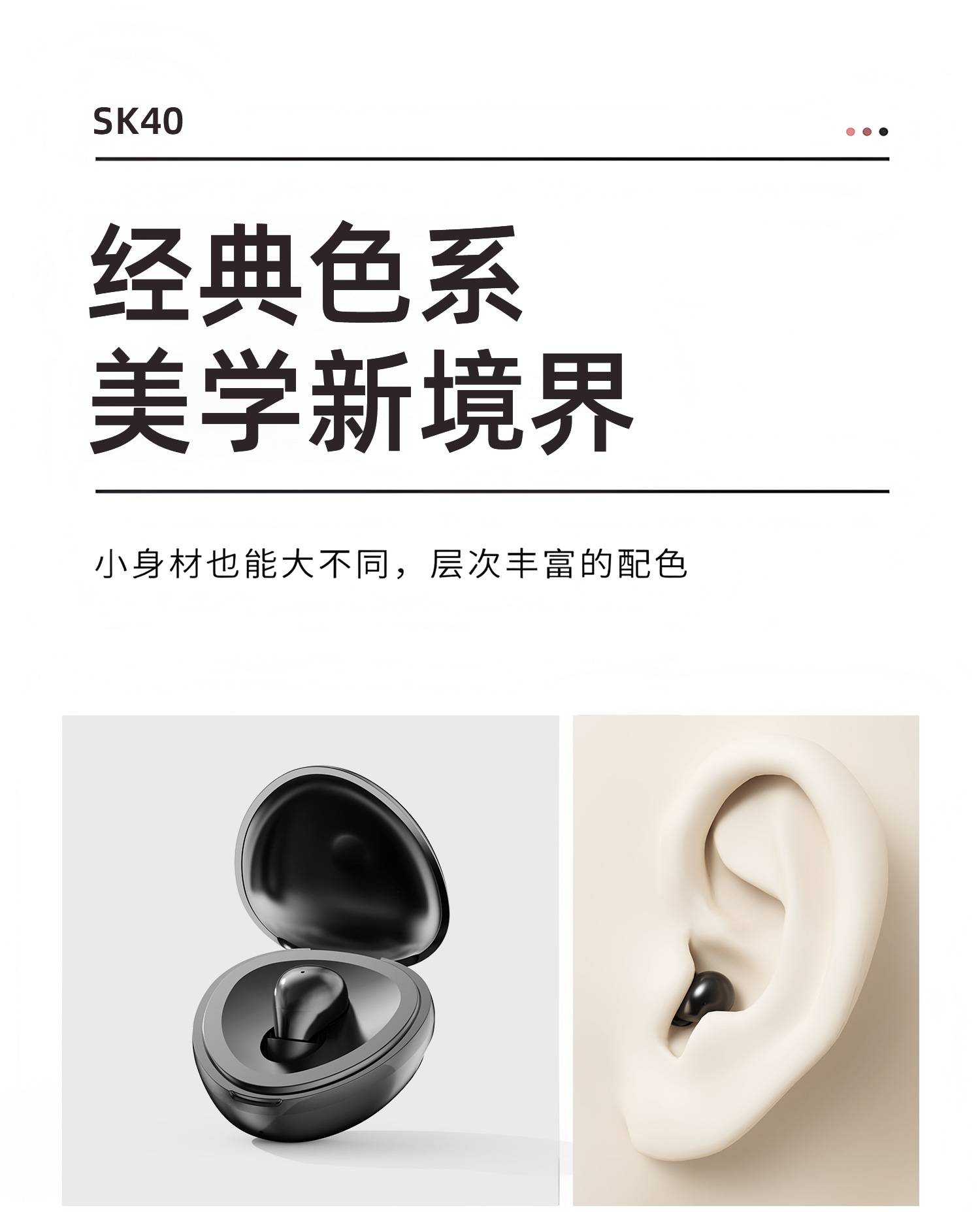 국내 개인 모델 SK40 미니 블루투스 헤드셋 무선 이어폰 수면 초소형 무통 착용 고품질 핫 모델