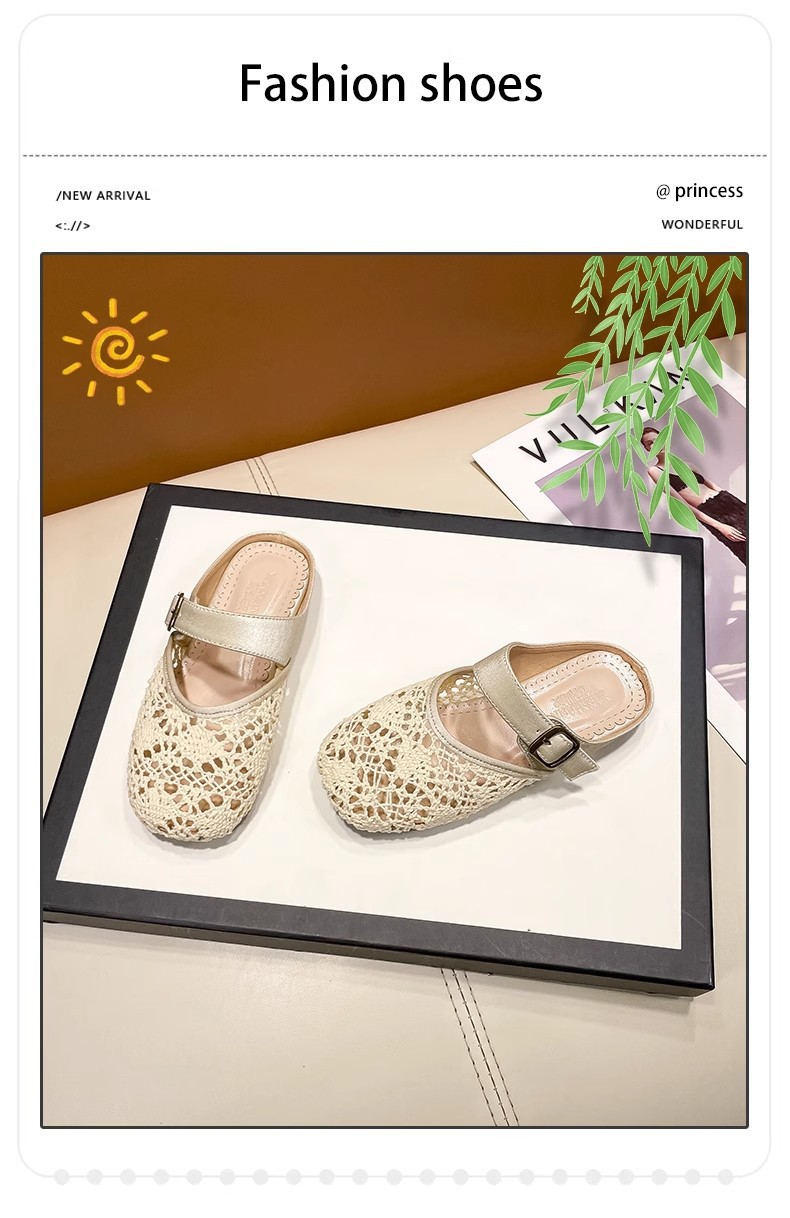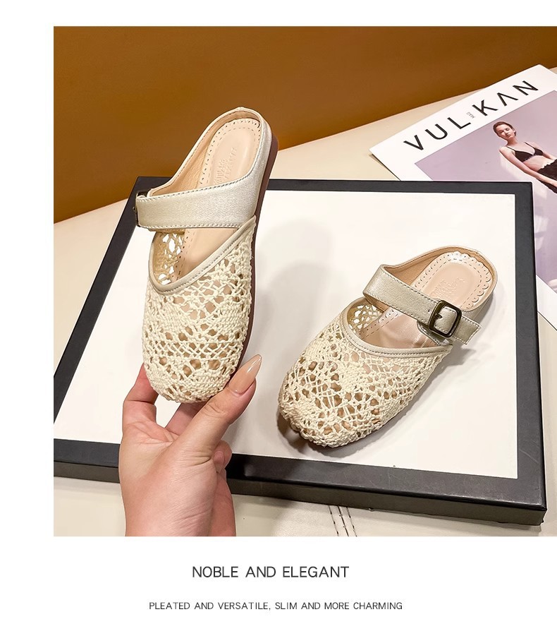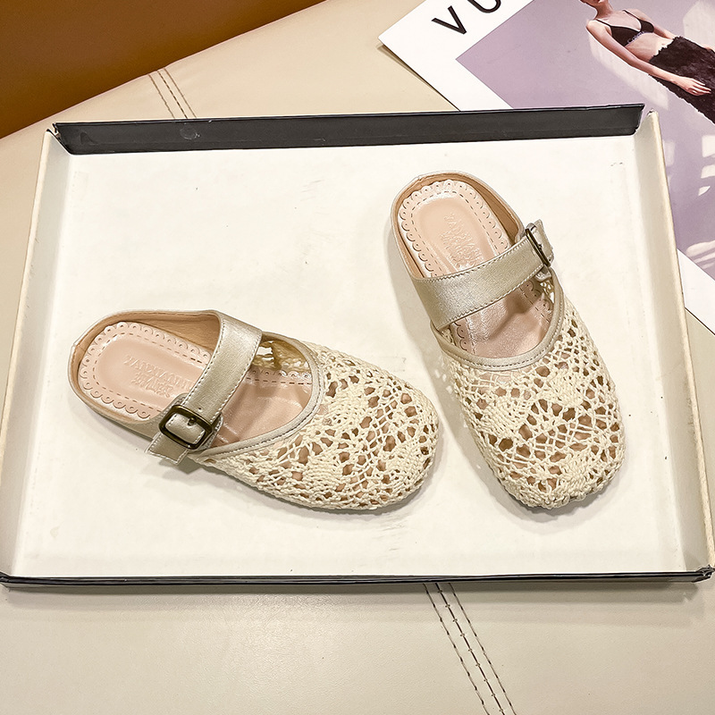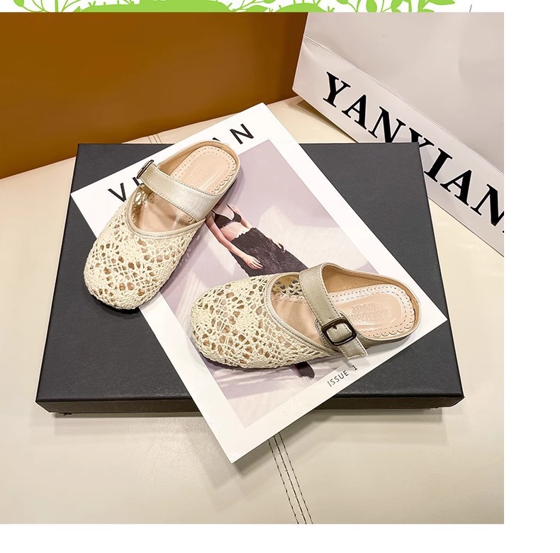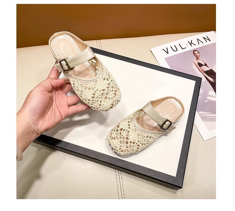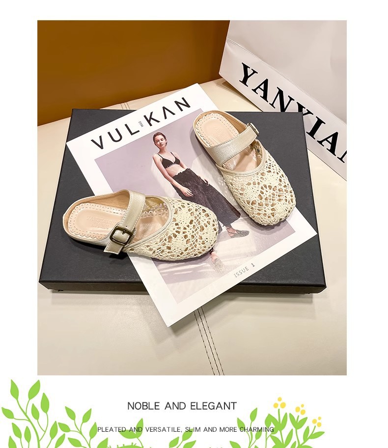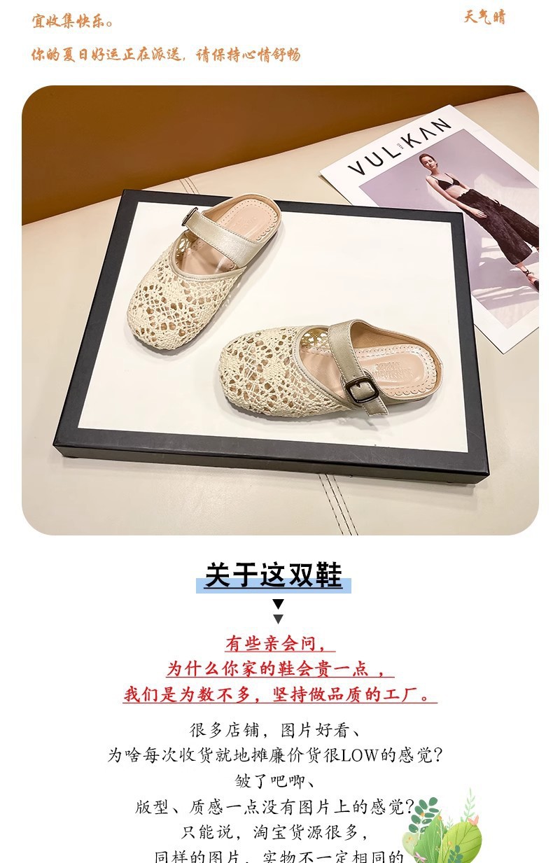 높은 가치의 짠 바오터우 반 슬리퍼 걸스 여름 복고풍 유행 외형 간단한 할로우 라운드 발가락 플랫 샌들스토어 가기
