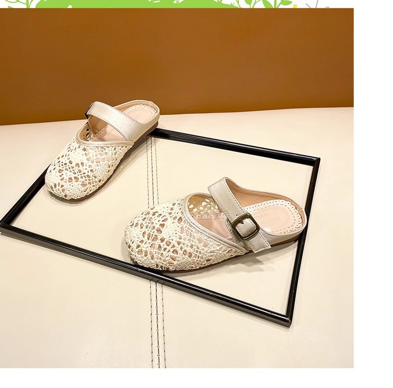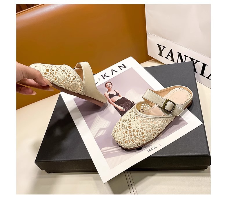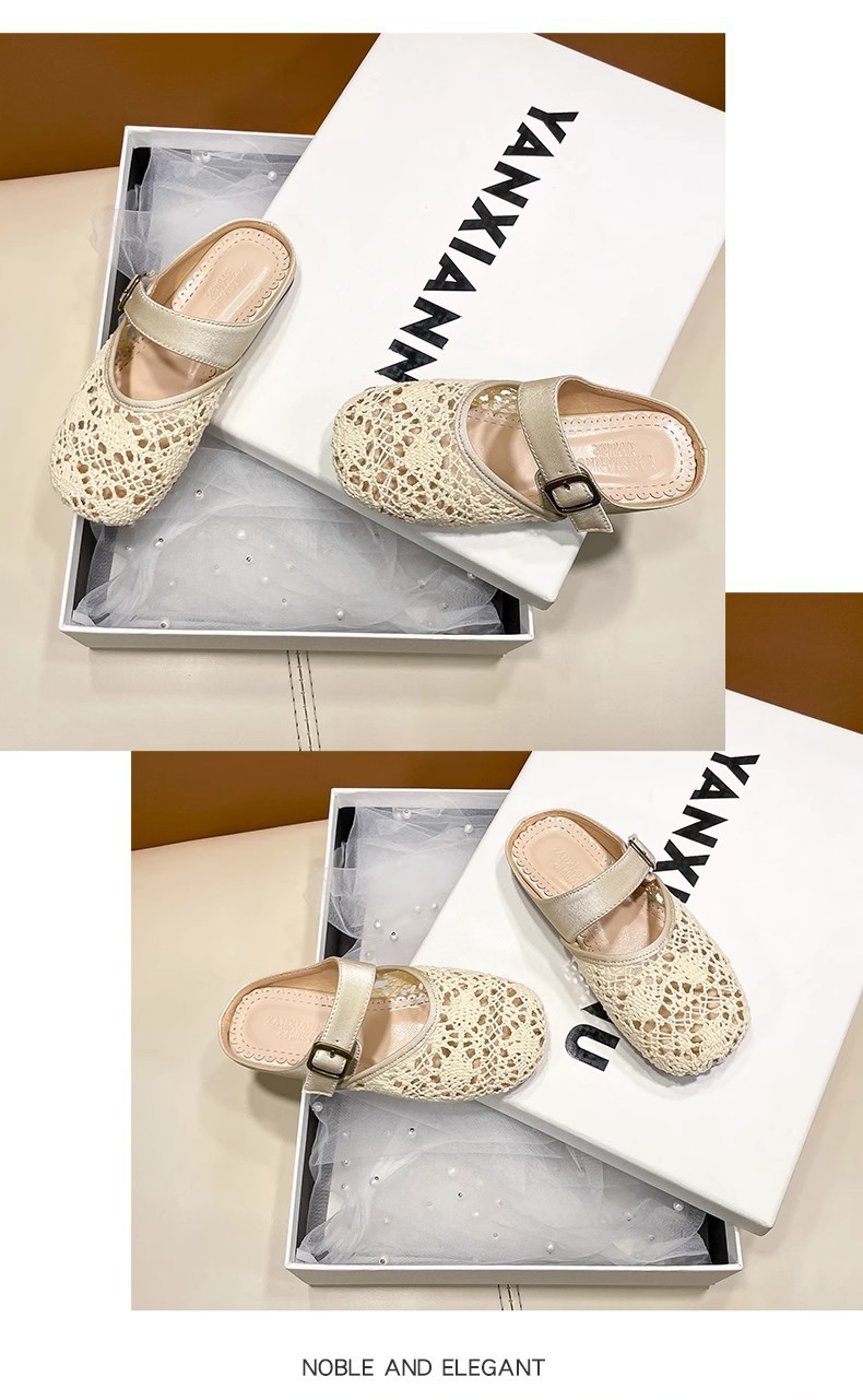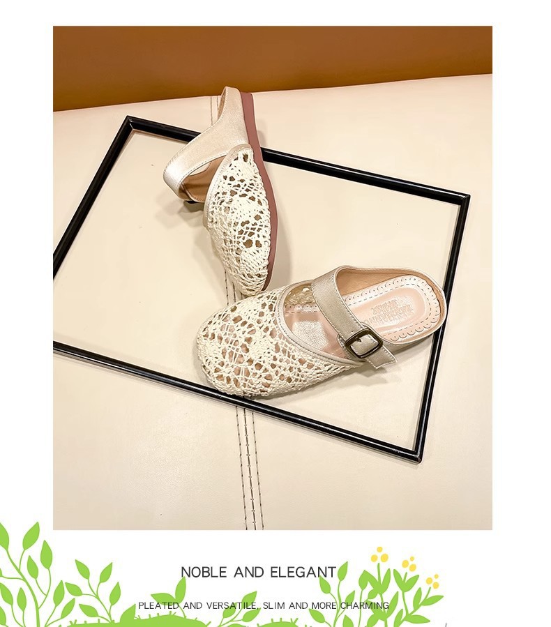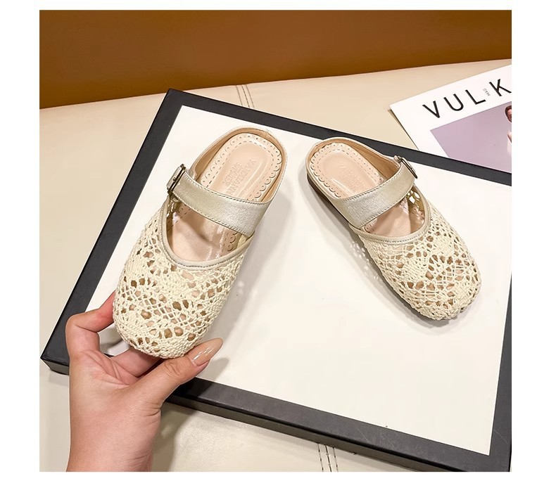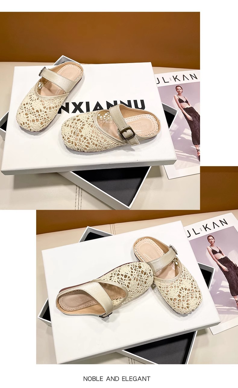 높은 가치의 짠 바오터우 반 슬리퍼 걸스 여름 복고풍 유행 외형 간단한 할로우 라운드 발가락 플랫 샌들스토어 가기