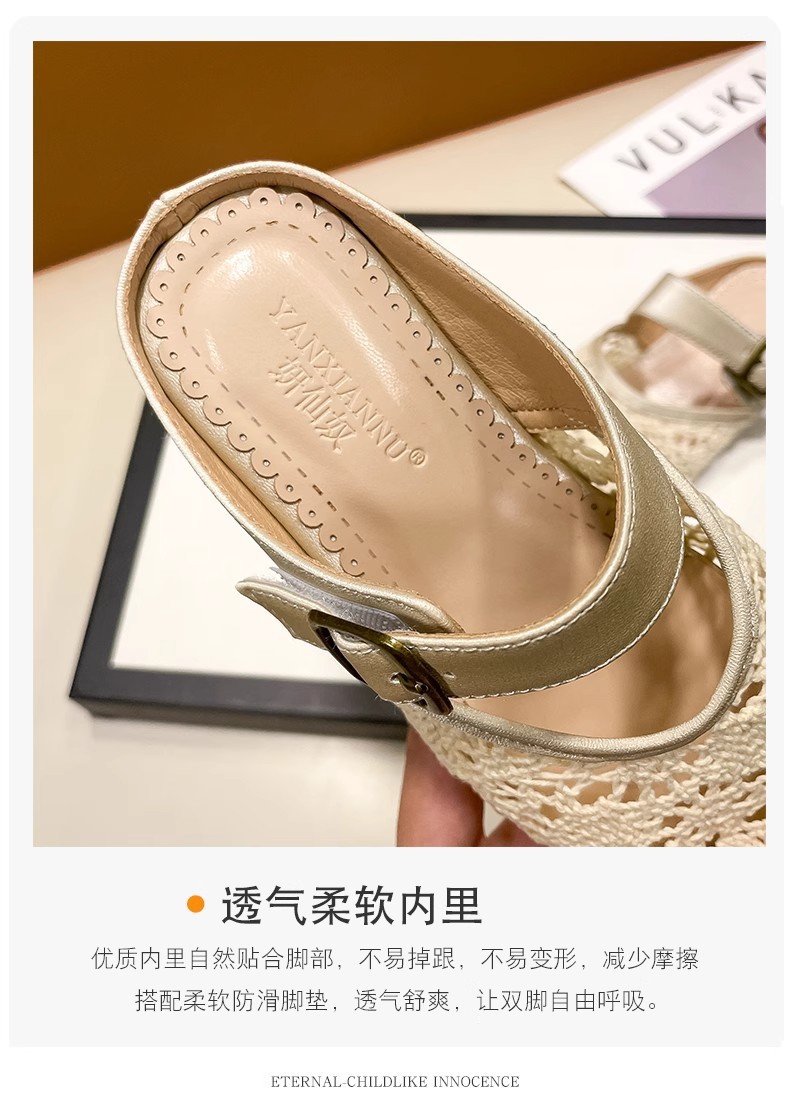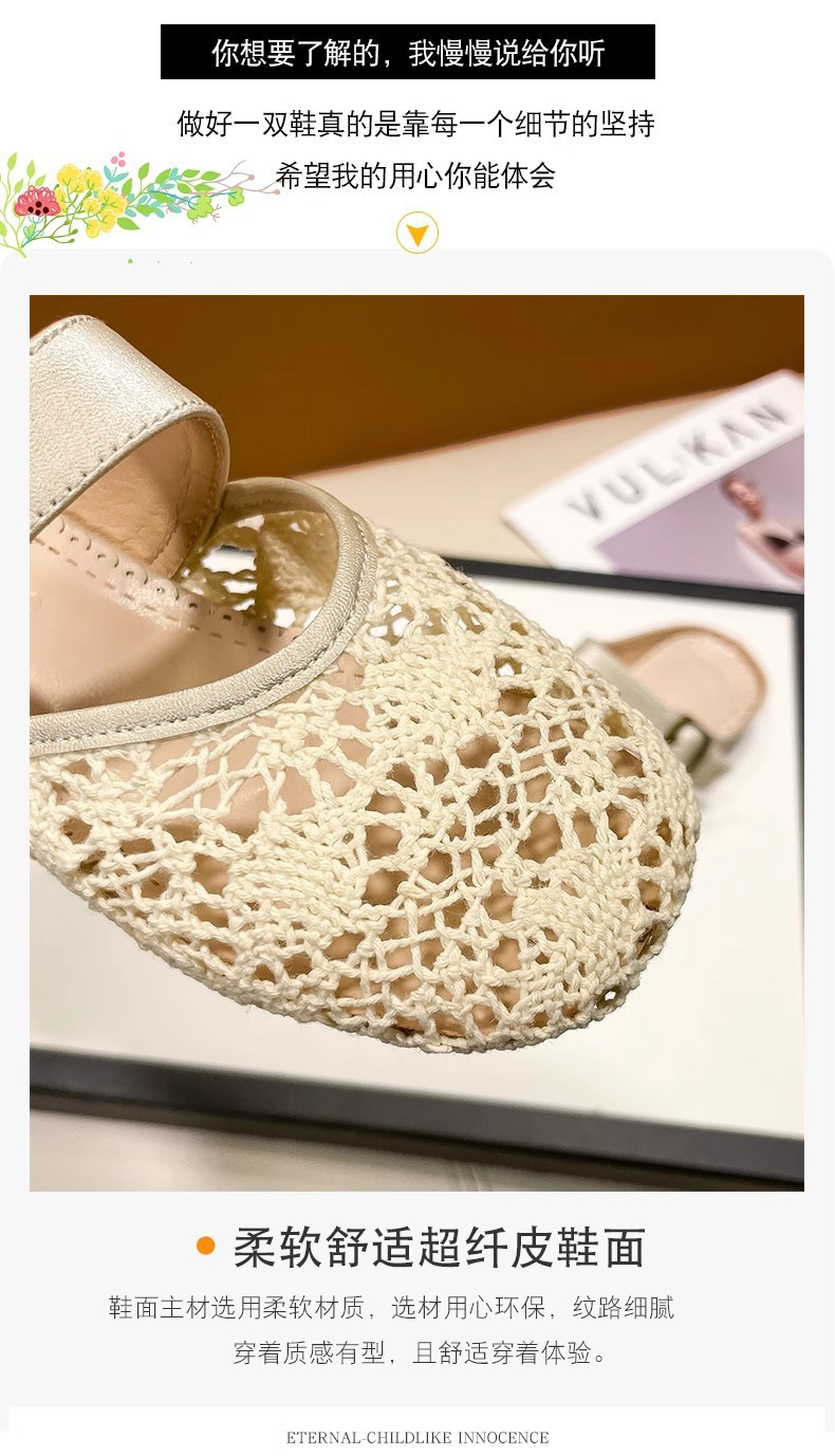 높은 가치의 짠 바오터우 반 슬리퍼 걸스 여름 복고풍 유행 외형 간단한 할로우 라운드 발가락 플랫 샌들