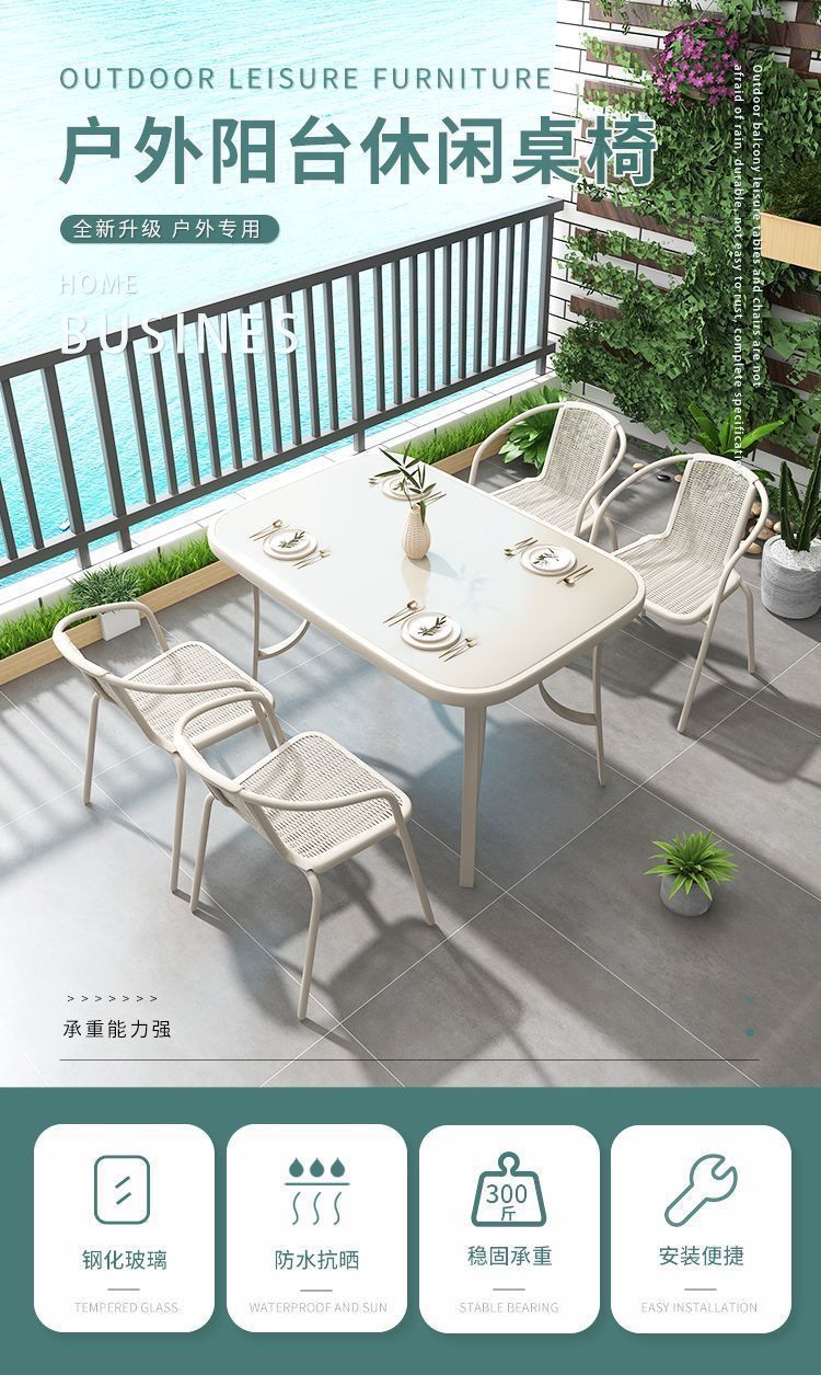 야외 테이블과 의자 조합, 야외 안뜰, 야외 발코니 식탁 의자, 밀크티 가게 레저 공간 레이아웃, 야외 철제 테이블스토어 가기