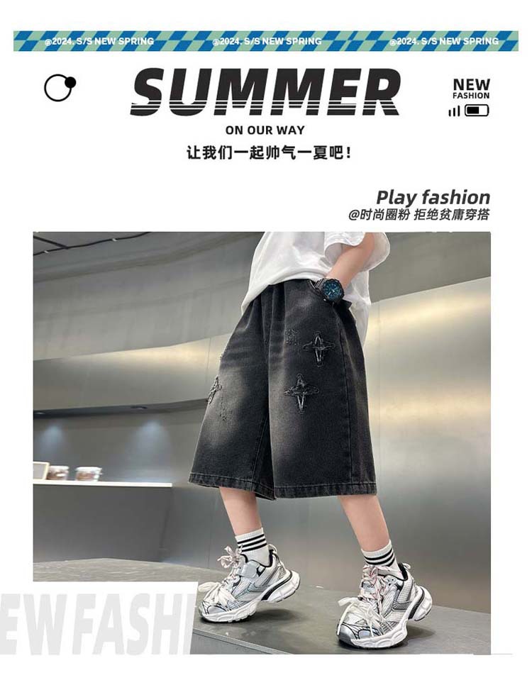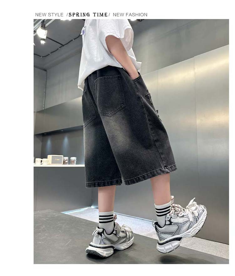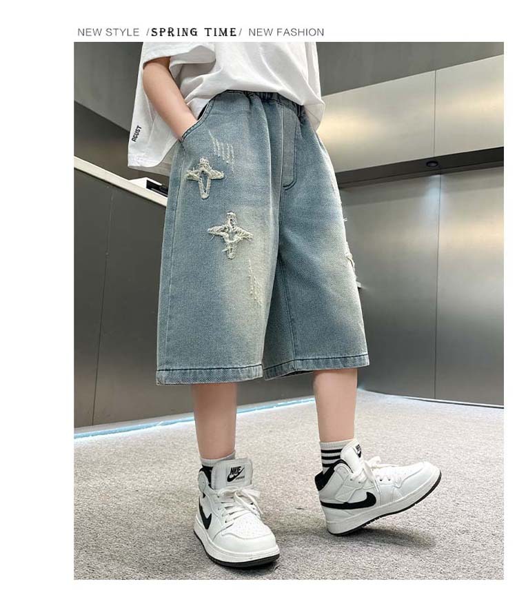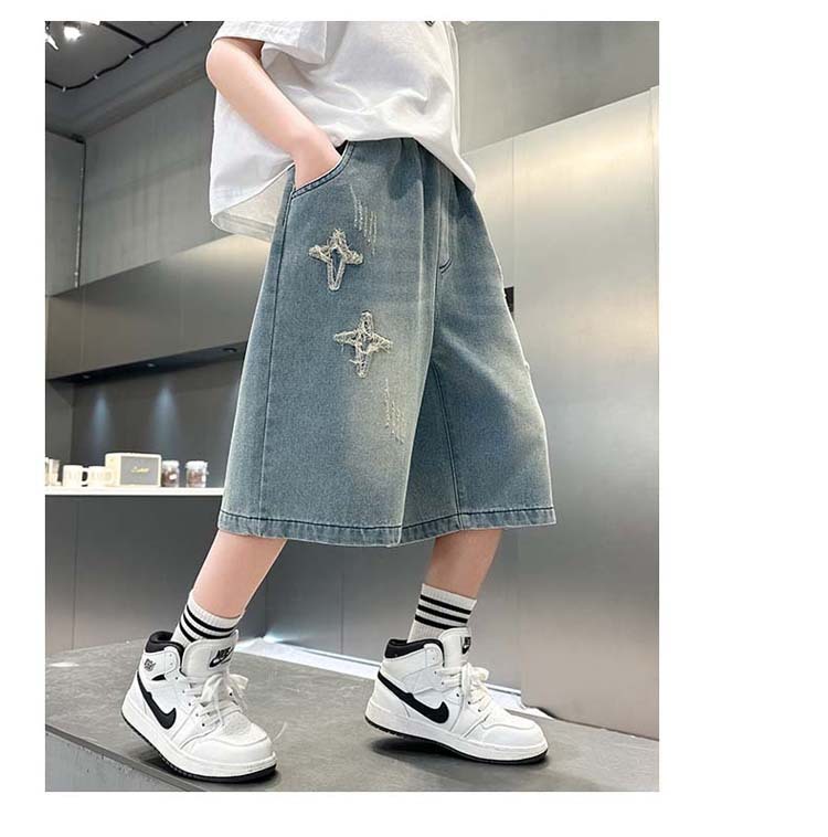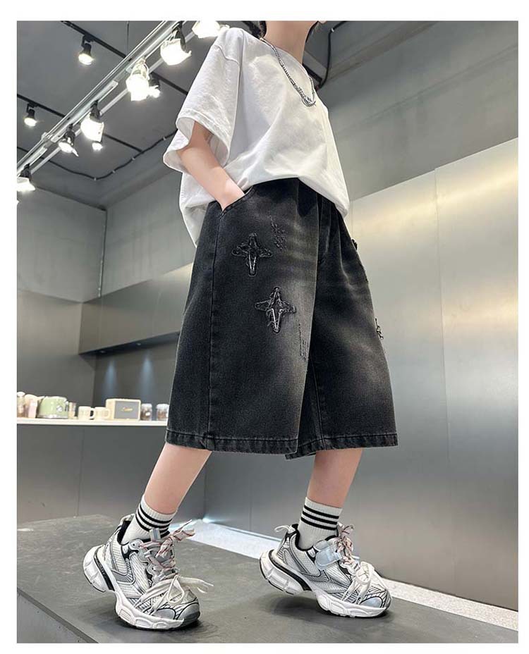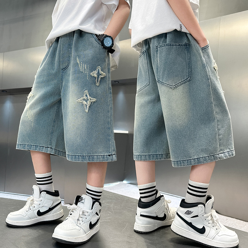 어린이 한국식 2025 여름 새 수놓은 데님 반바지 큰 어린이 여름 얇은 바지스토어 가기