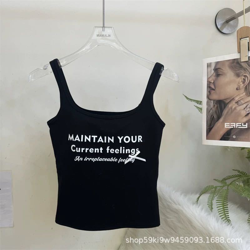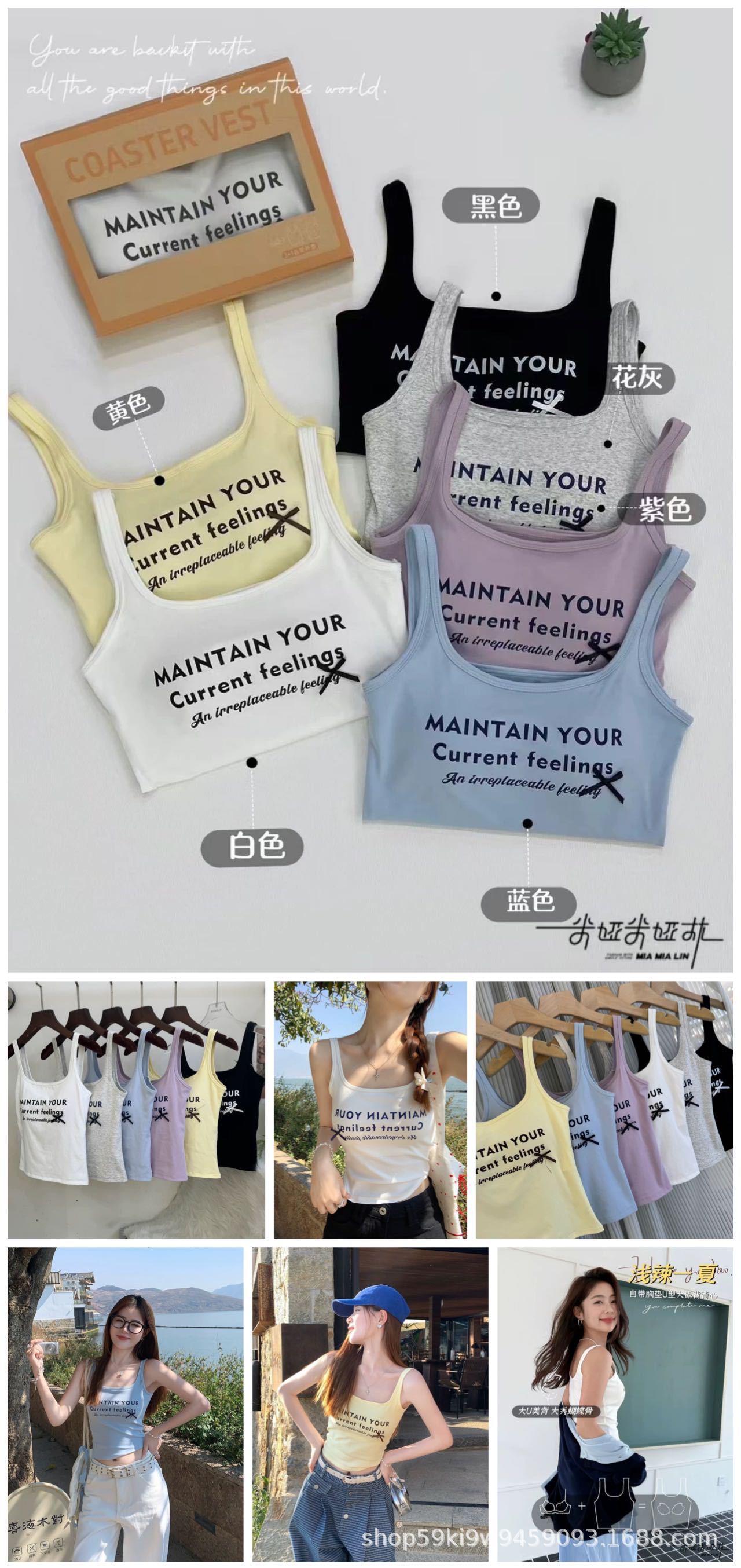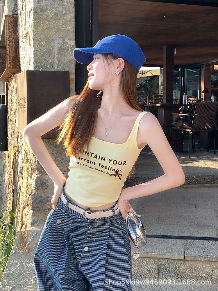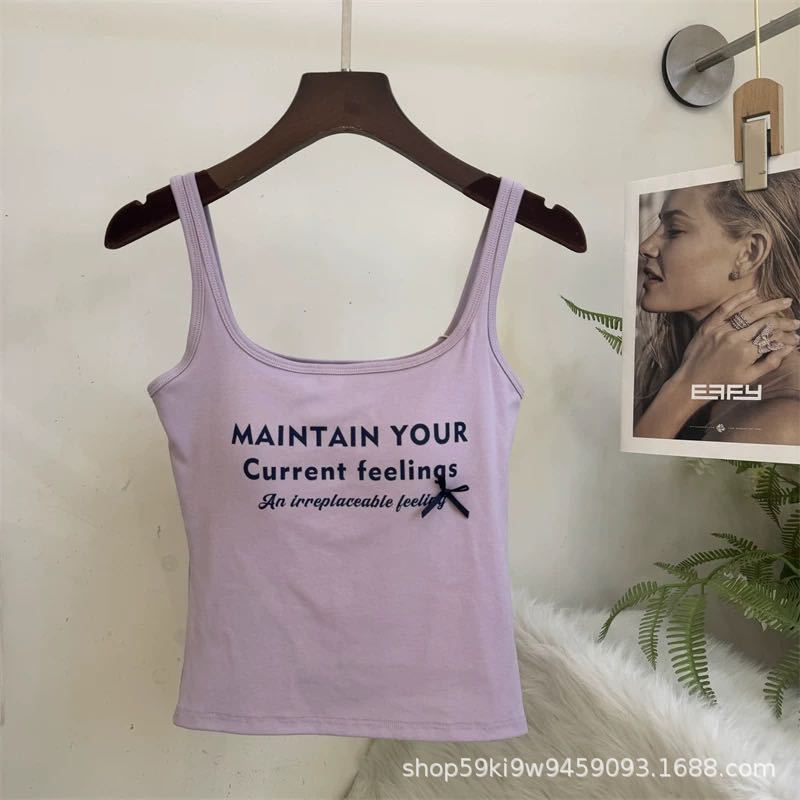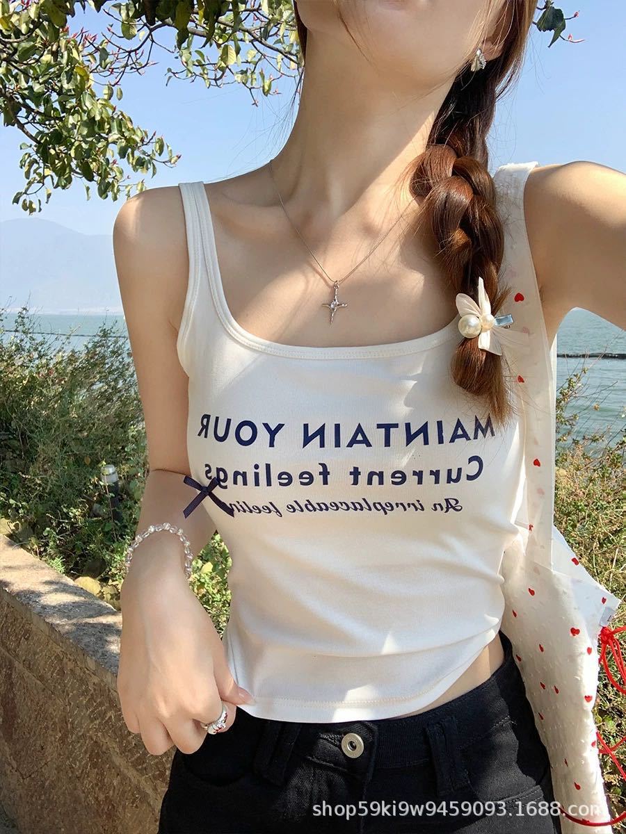 의류 옷걸이 여름 외부 착용 내부 탑 달콤한 스파이스 활 편지 인쇄 카미솔 여성을위한스토어 가기