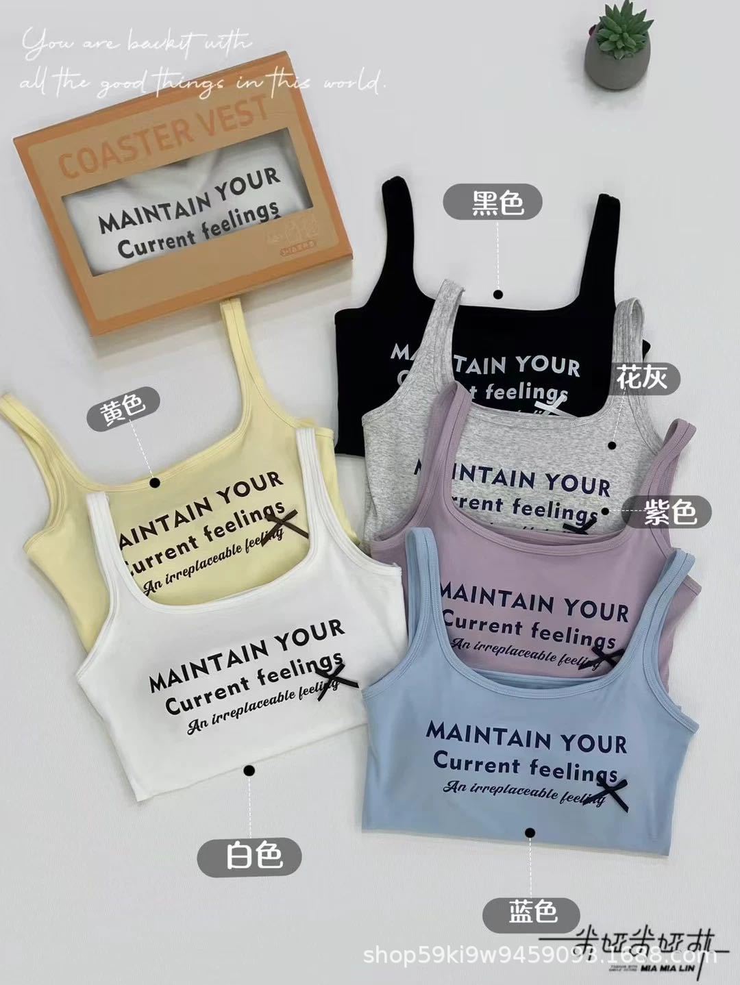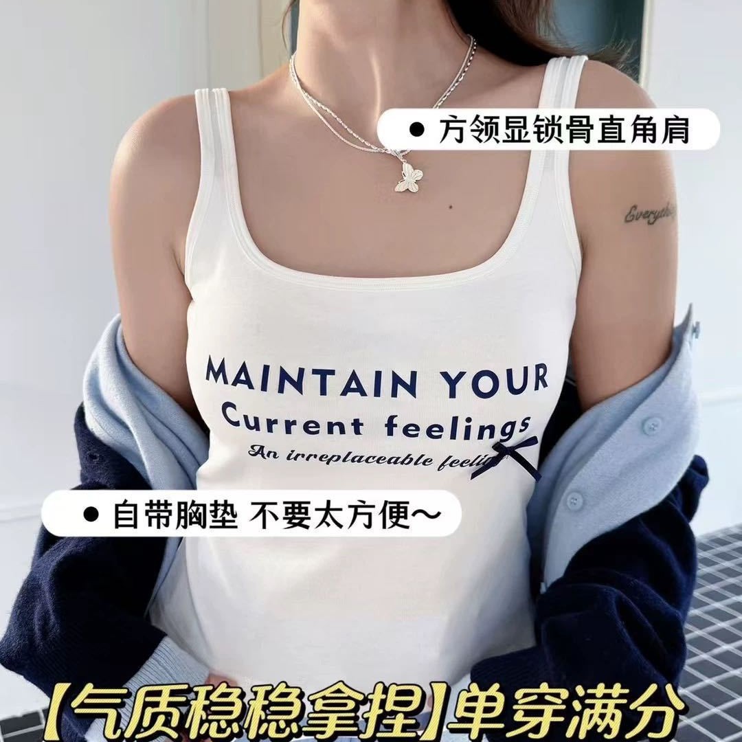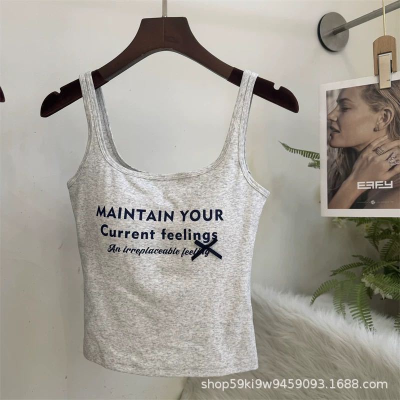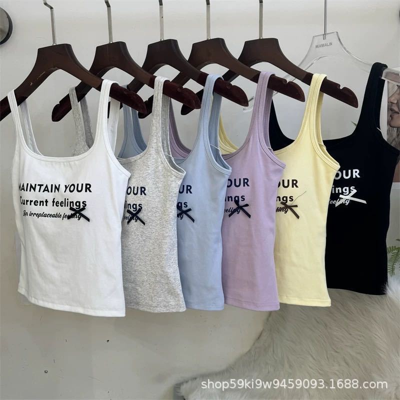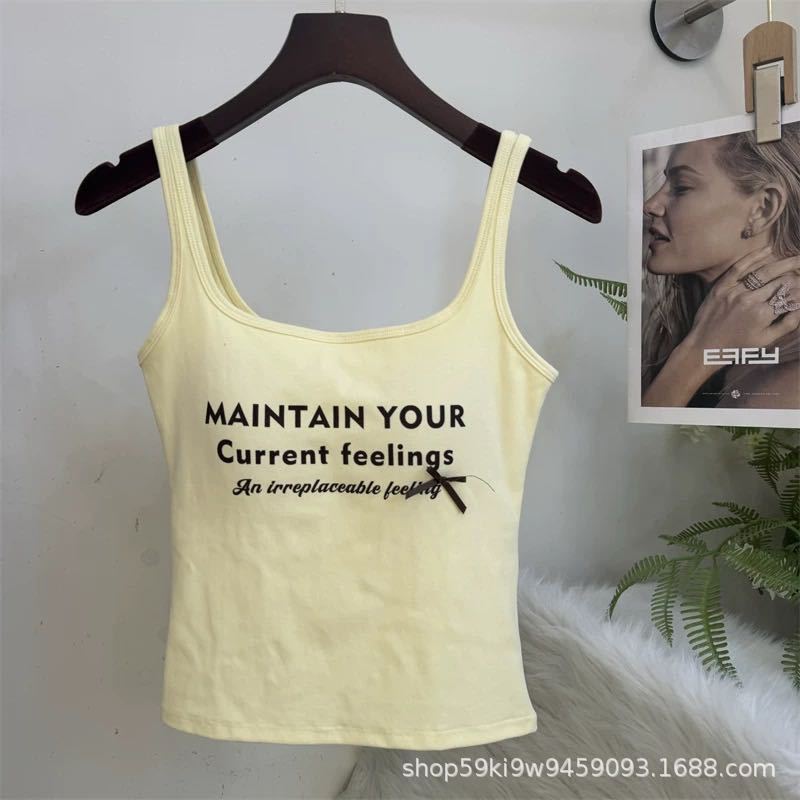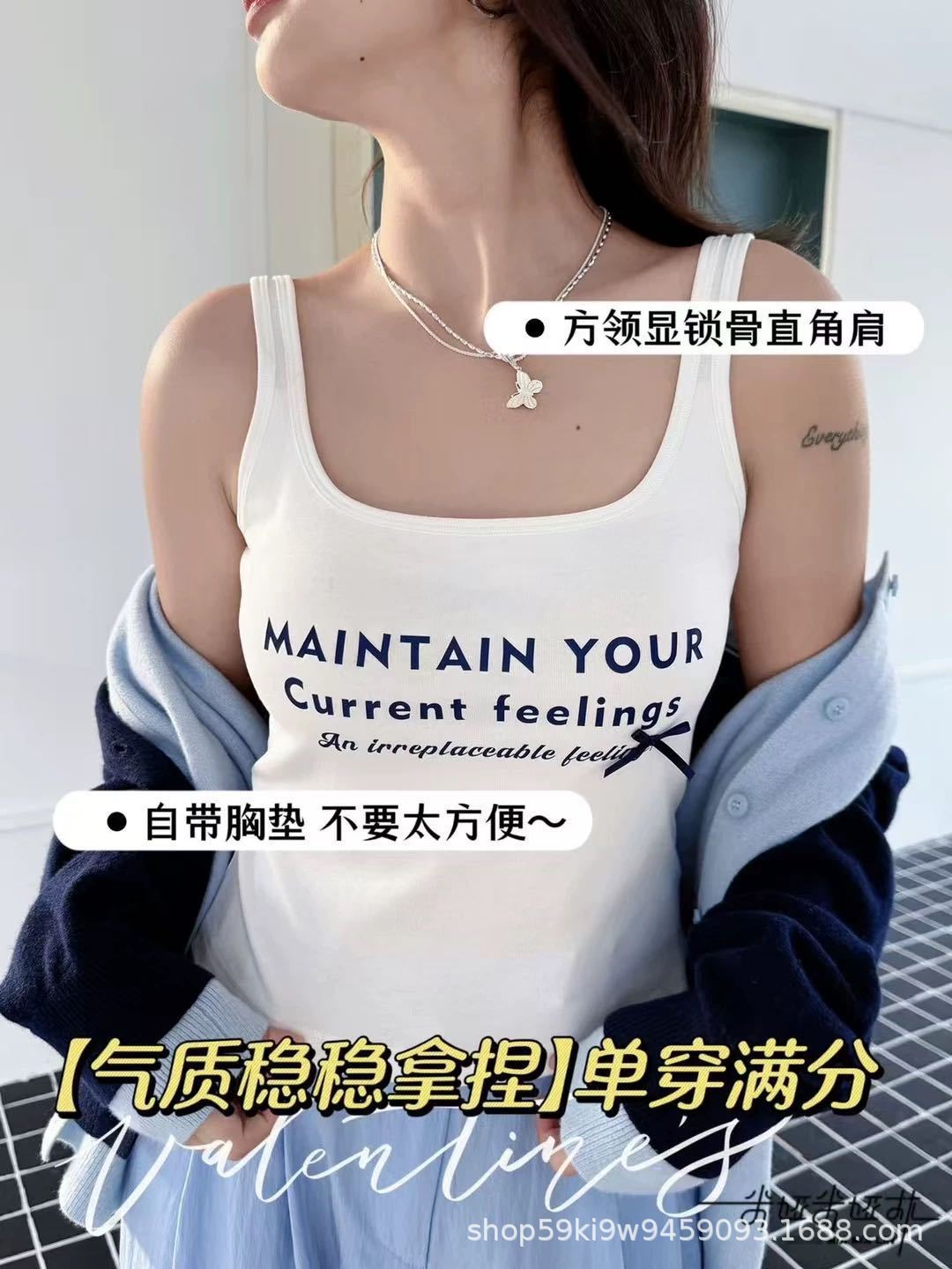 의류 옷걸이 여름 외부 착용 내부 탑 달콤한 스파이스 활 편지 인쇄 카미솔 여성을위한스토어 가기