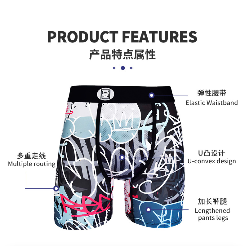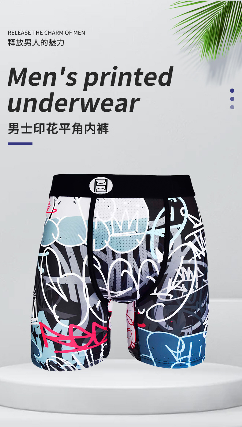 5 포인트 롱 스포츠 남성 속옷 유럽과 미국 패션 브랜드 디지털 인쇄 부드러운 통기성 소년 4 코너 짧은 바지 국경스토어 가기