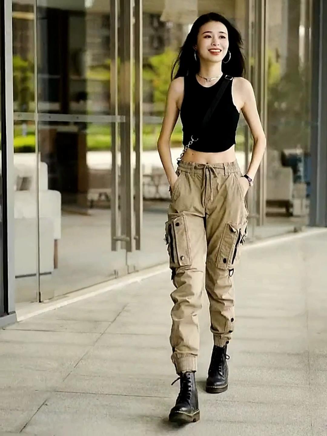 아미 카키 헤비 레트로 워싱 트렌디 브랜드 오버올 남성 봄, 가을 전술 기능성 슬림핏 레깅스 캐주얼 바지 트렌디스토어 가기