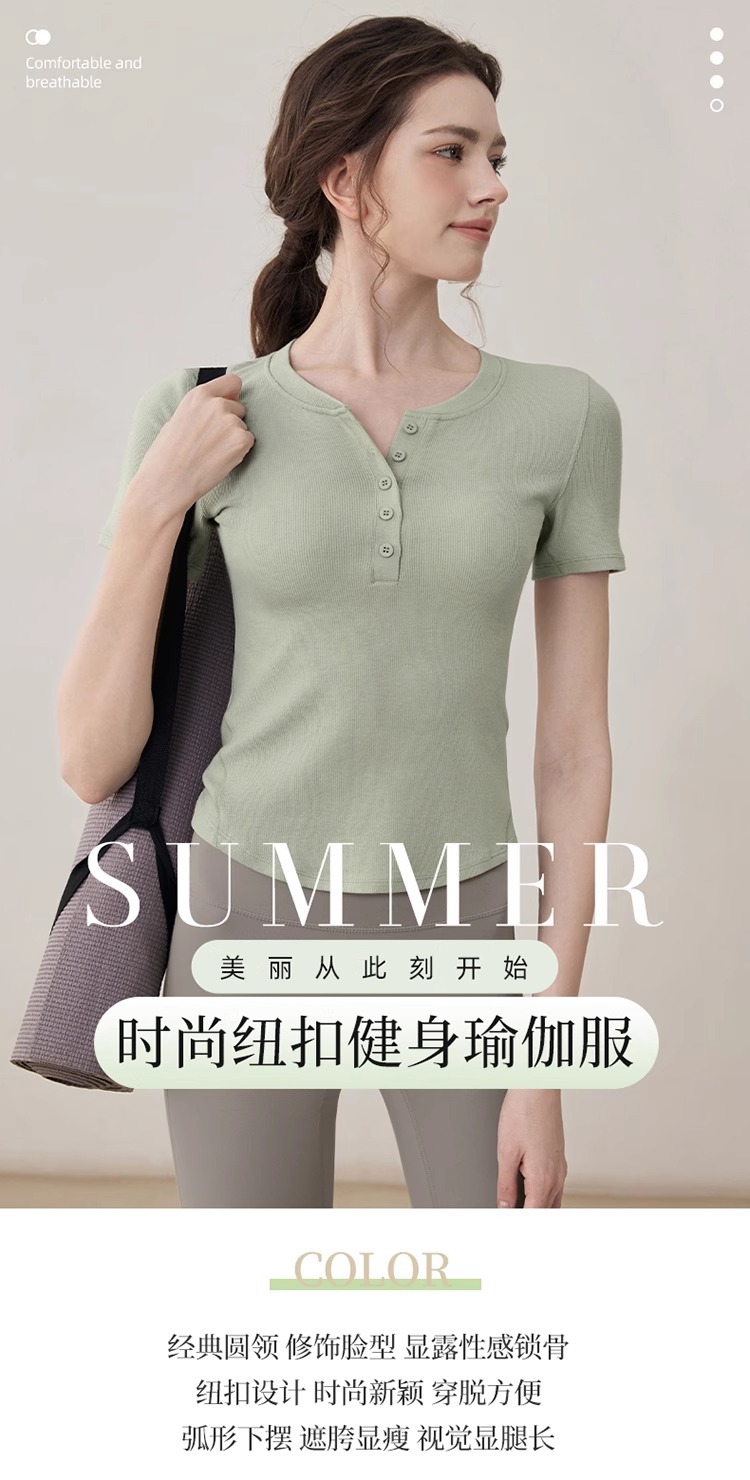 요가 의류 여름 반팔 여성 2025 새로운 카디건 슬리밍 스포츠 필라테스 반팔 탑 정장 여성 도매스토어 가기