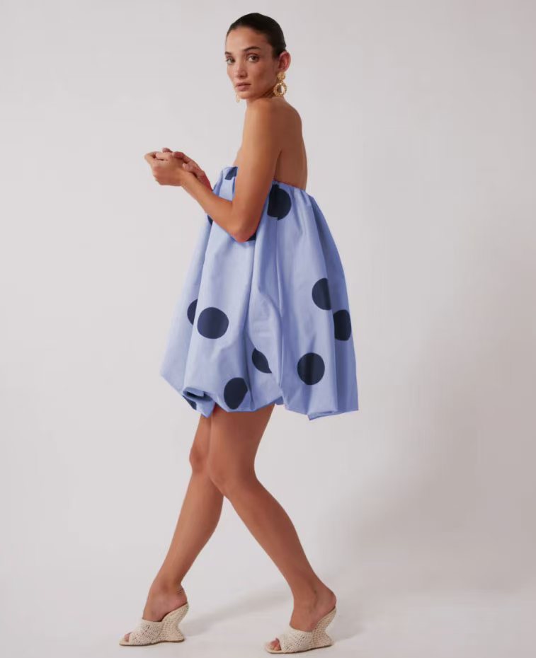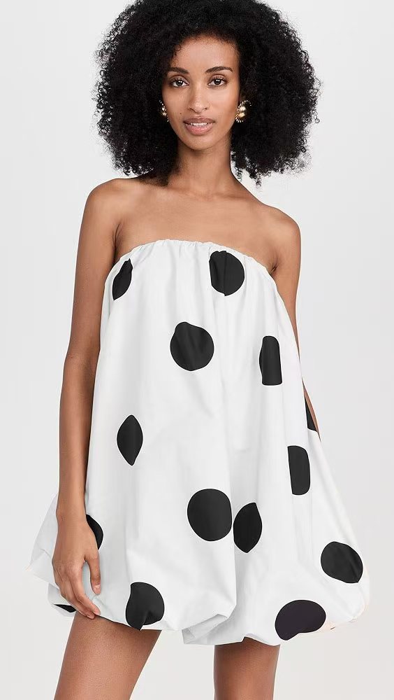유럽과 미국의 국경 간 2025 Amazon 봄 여름 새로운 섹시한 폴카 도트 프린트 미니 가슴 랩 드레스스토어 가기