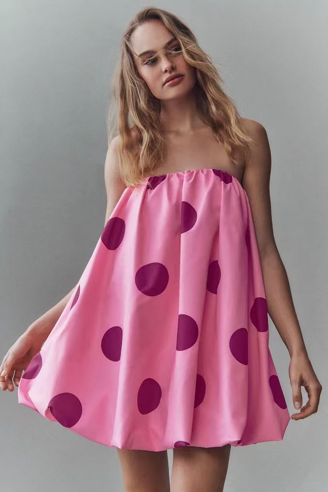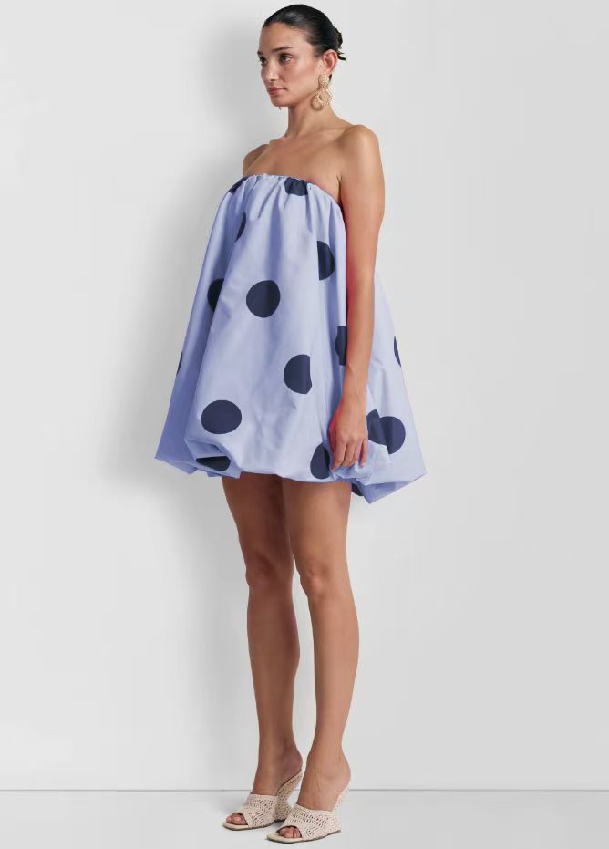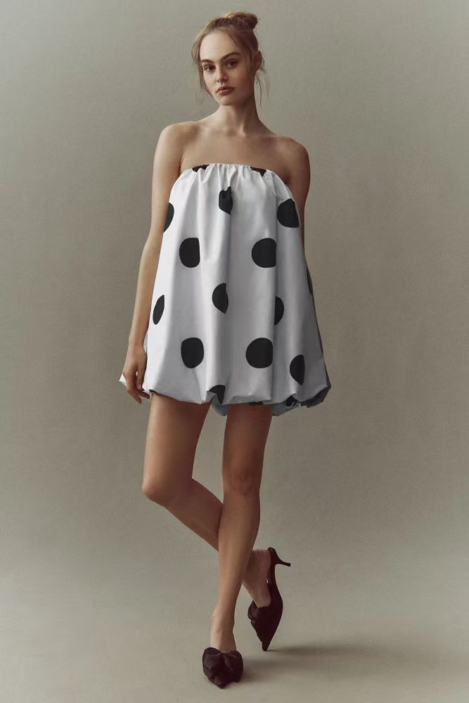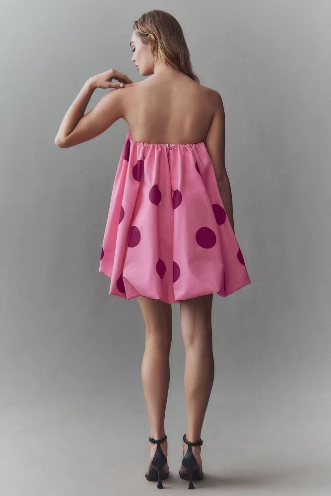 유럽과 미국의 국경 간 2025 Amazon 봄 여름 새로운 섹시한 폴카 도트 프린트 미니 가슴 랩 드레스