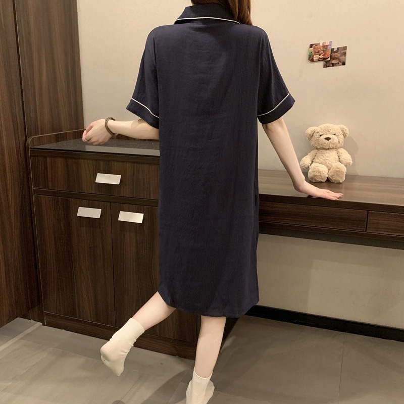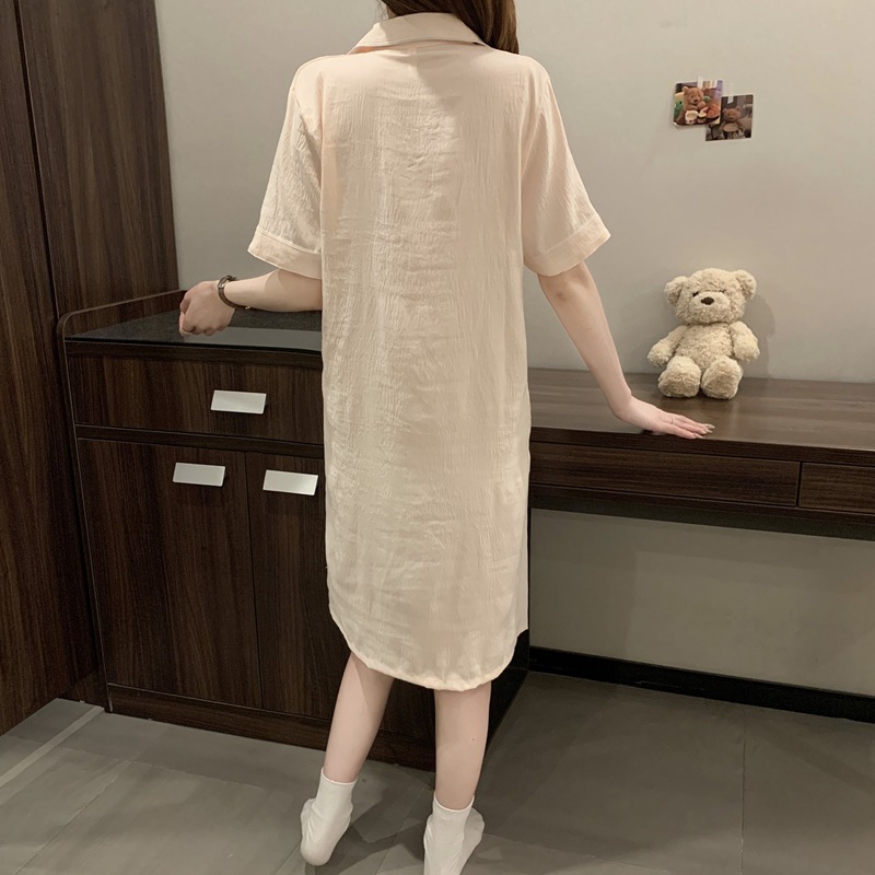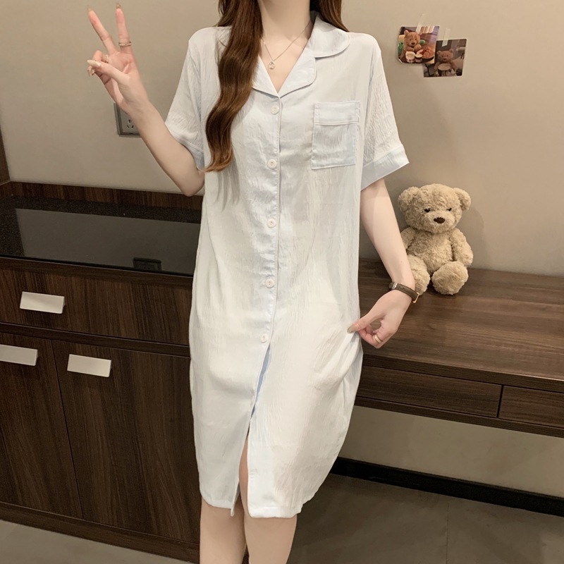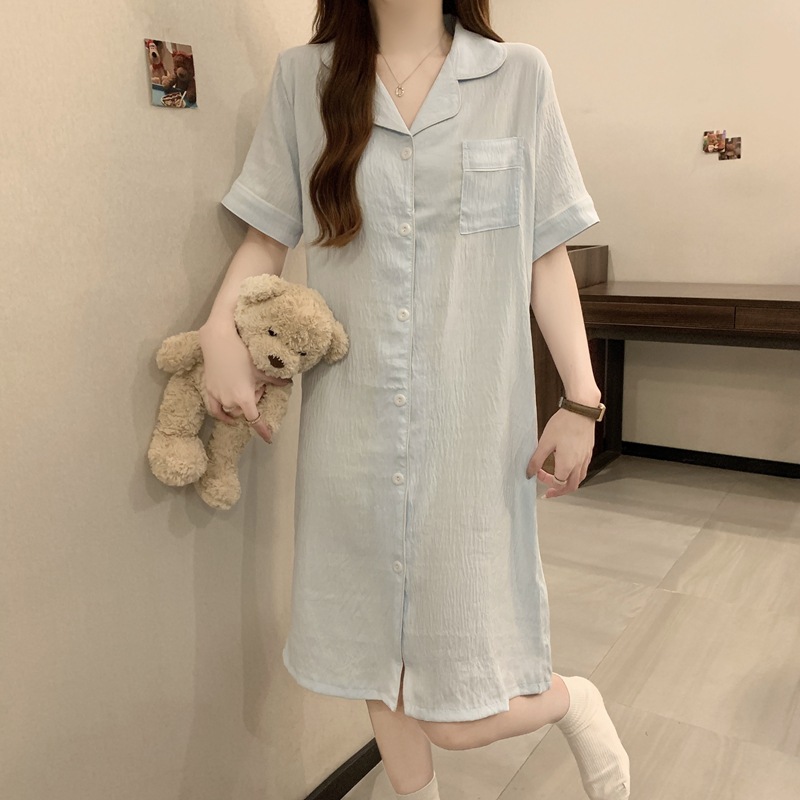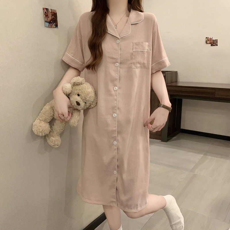새로운 대외 무역 구름 면화 여름 숙녀 단색 셔츠 잠옷 느슨한 섹시한 짧은 소매 잠옷 홈 의류 도매