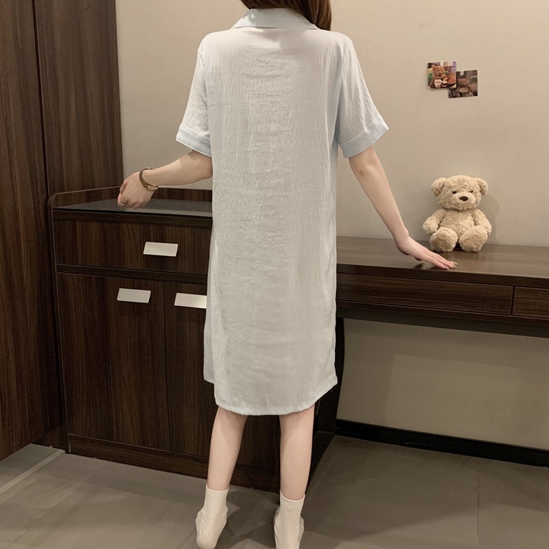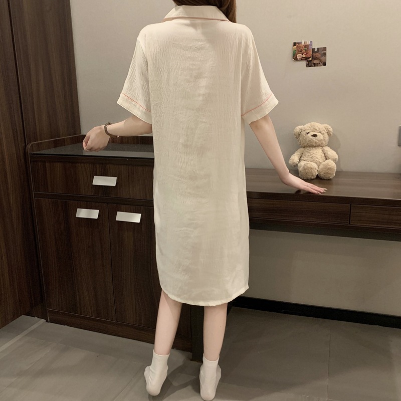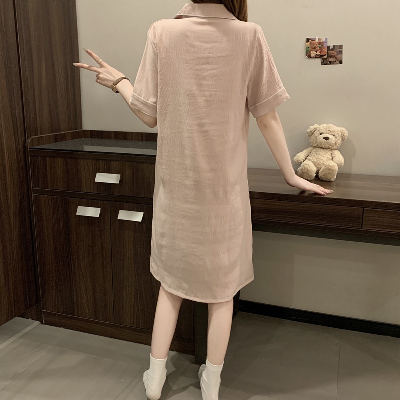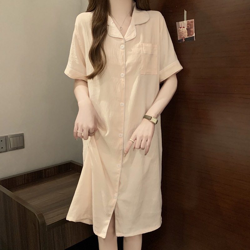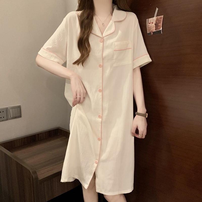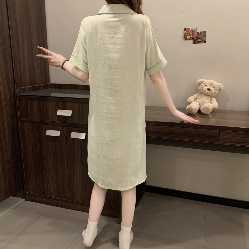 새로운 대외 무역 구름 면화 여름 숙녀 단색 셔츠 잠옷 느슨한 섹시한 짧은 소매 잠옷 홈 의류 도매
