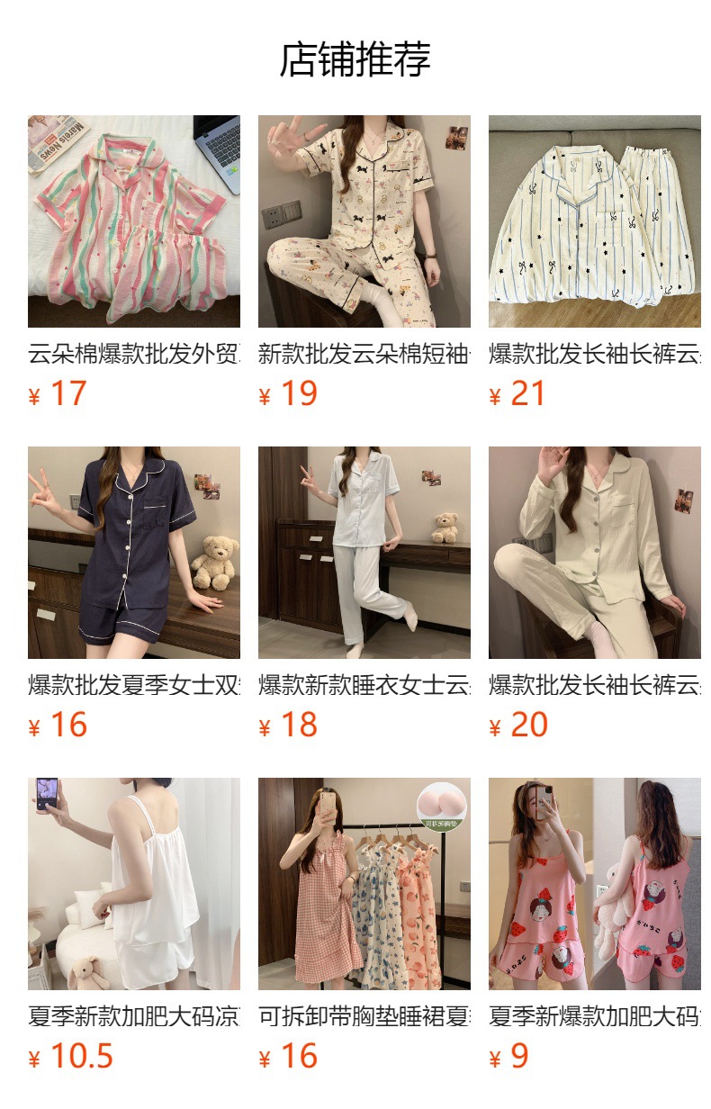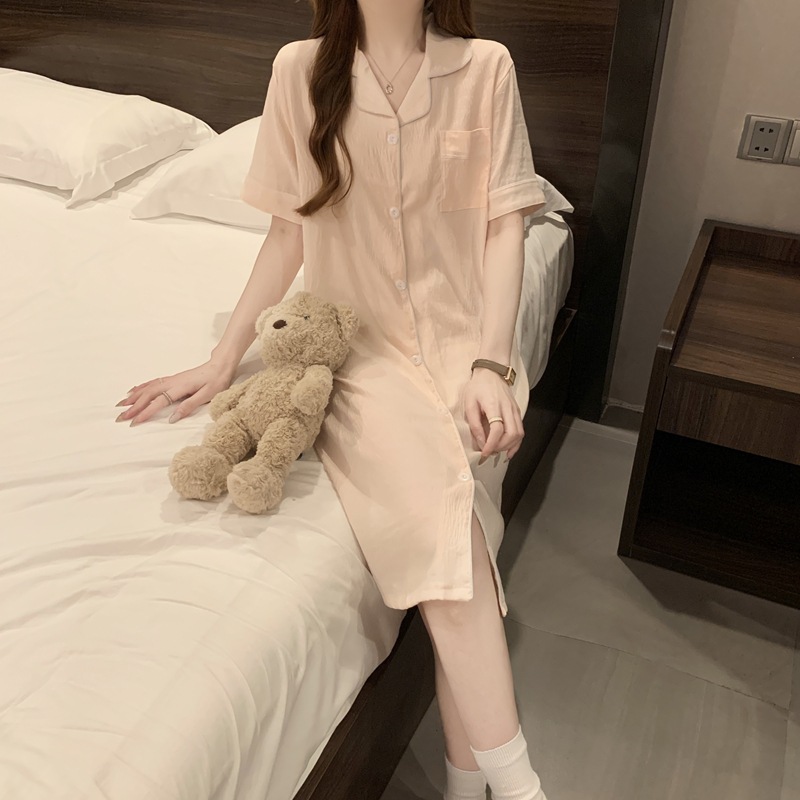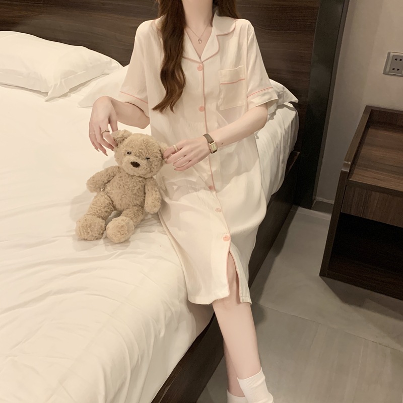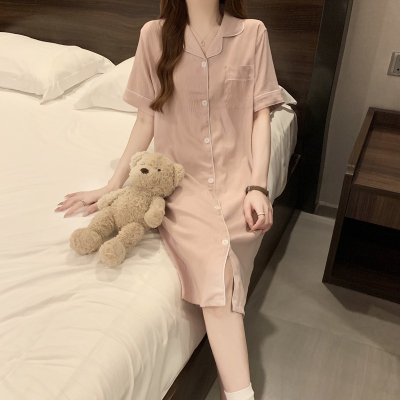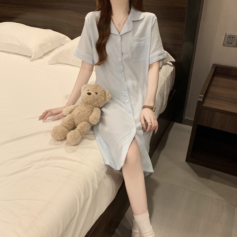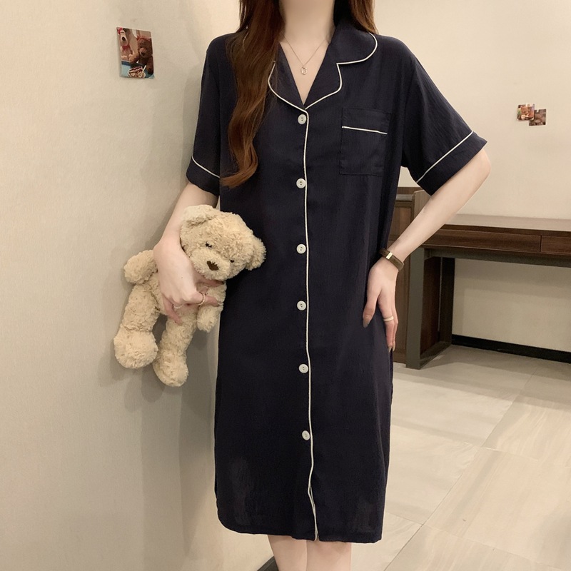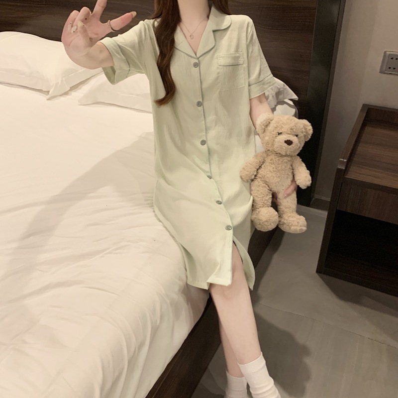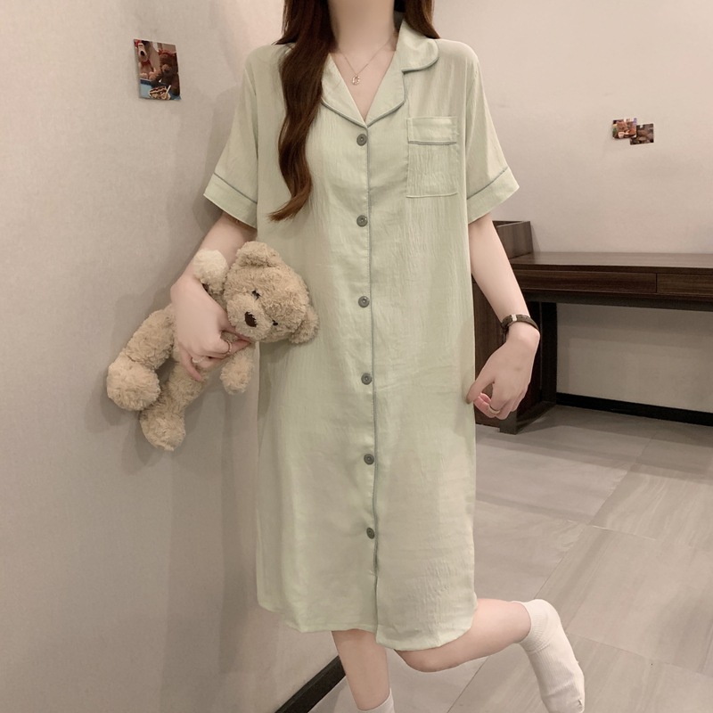 새로운 대외 무역 구름 면화 여름 숙녀 단색 셔츠 잠옷 느슨한 섹시한 짧은 소매 잠옷 홈 의류 도매스토어 가기
