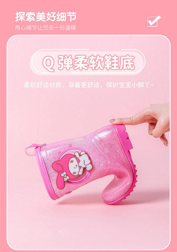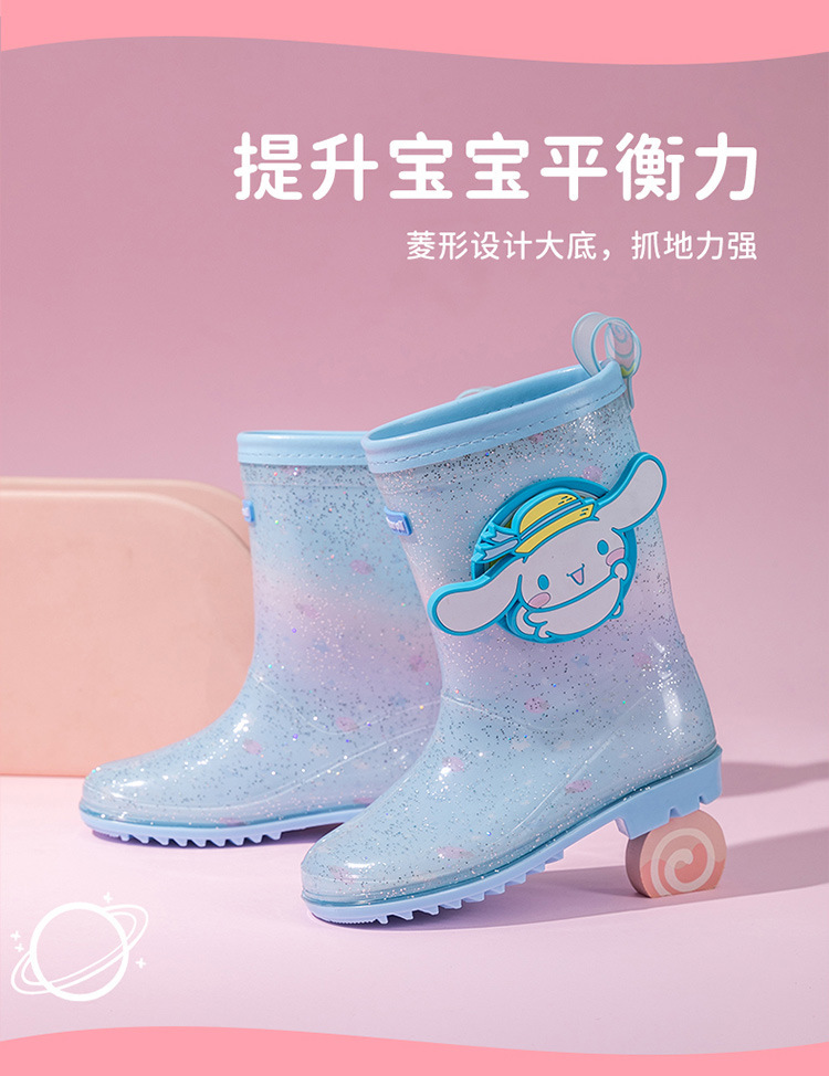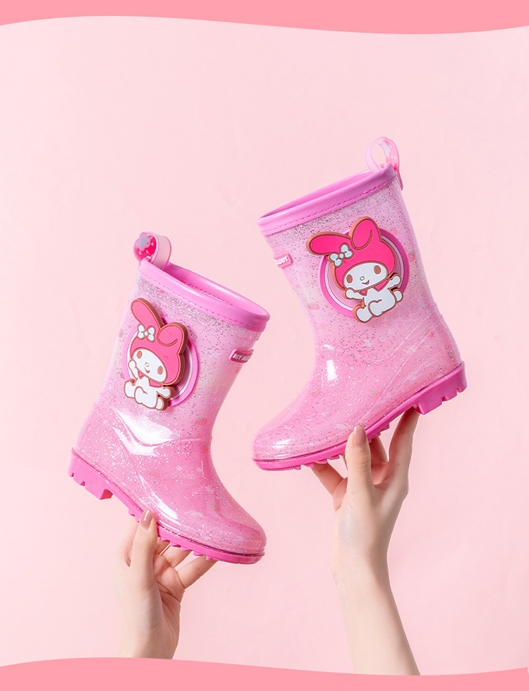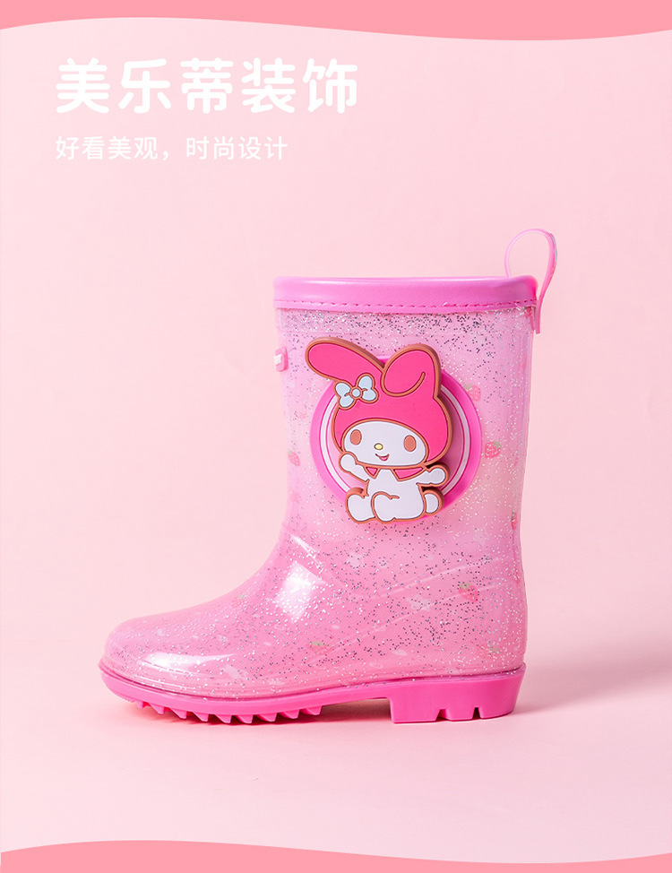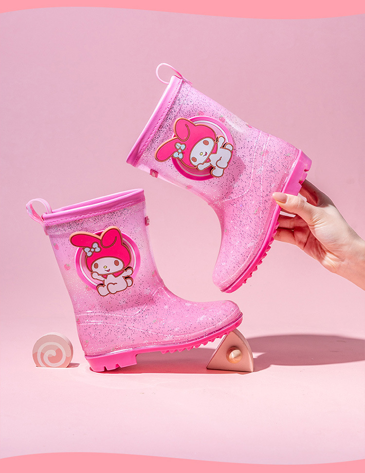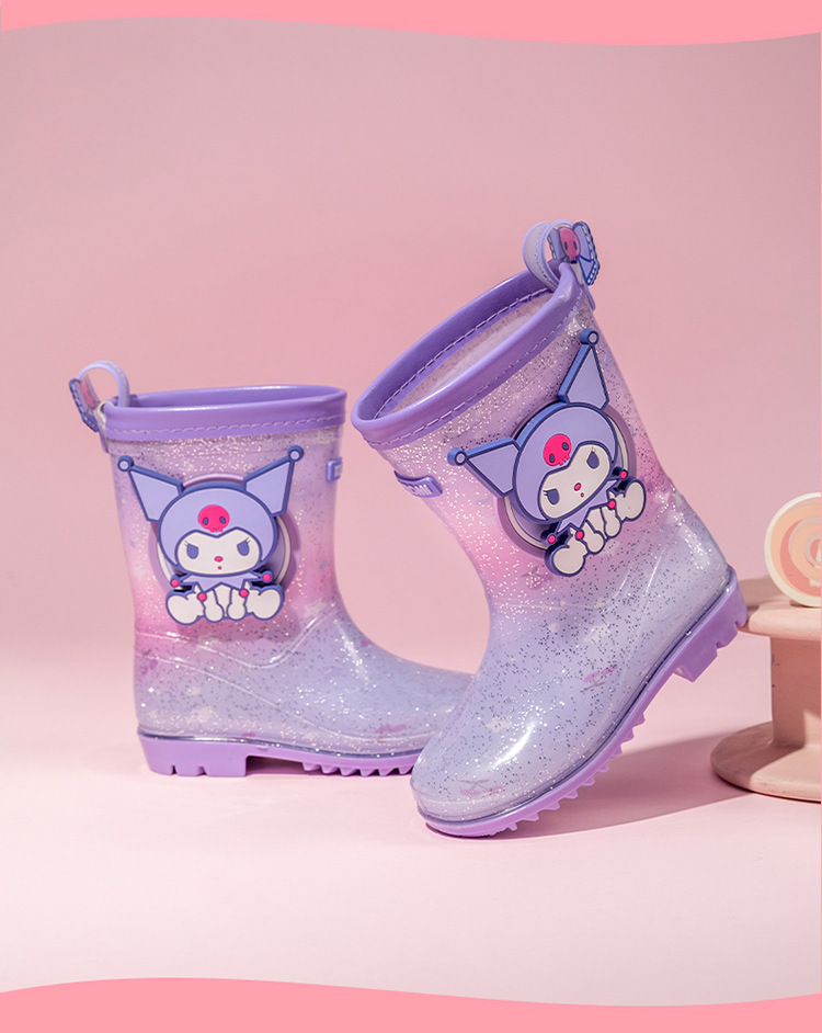 Sanrio 만화 어린이 장화 학생 물 신발 소녀 Kuromi 야외 미끄럼 방지 덧신 아기 크리스탈 장화