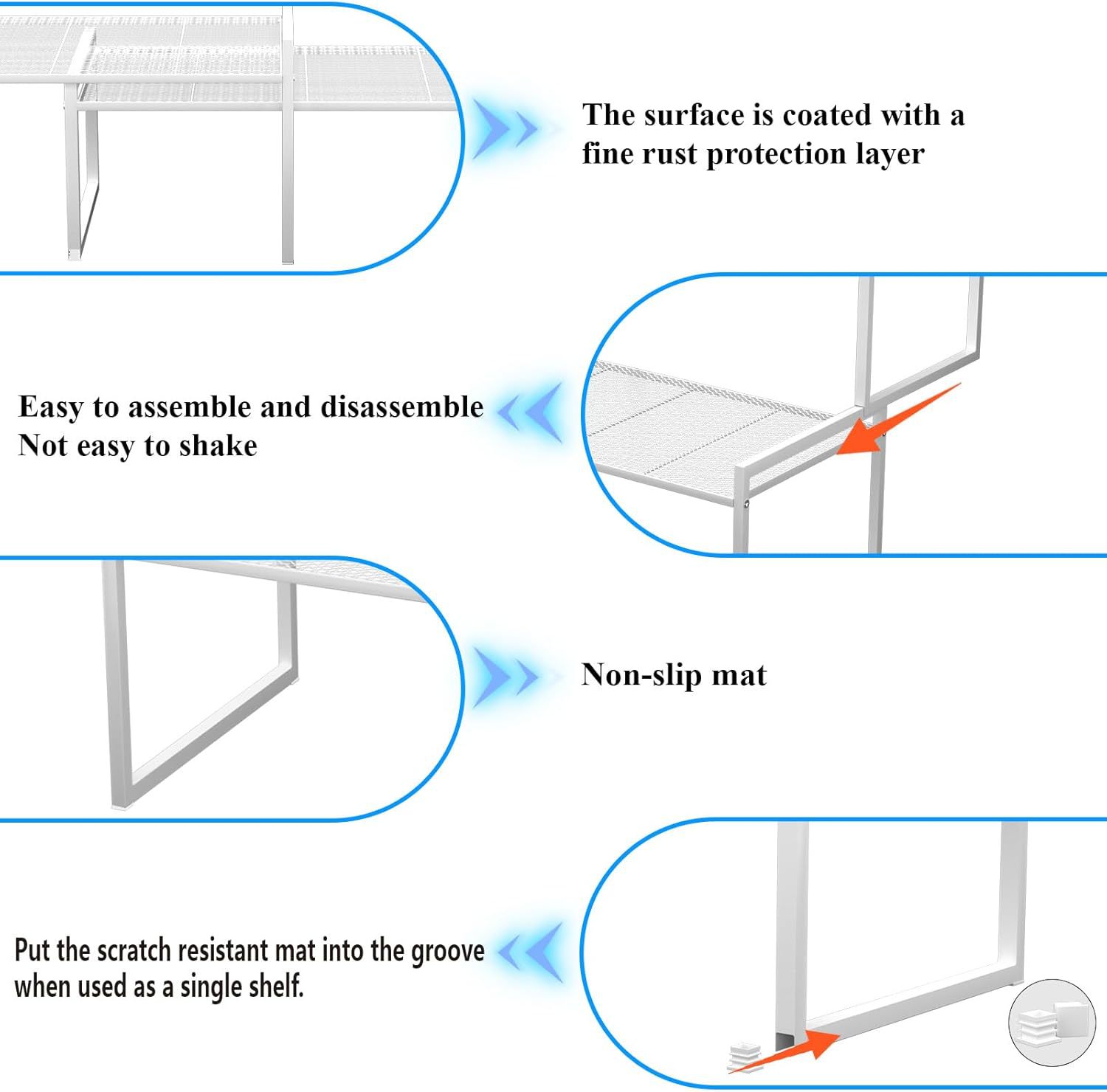 2 조각 주방 캐비닛 조직 랙 쌓을 수있는 튼튼한 금속 카운터 수조 보관 랙 주방 주최자 스토리지 랙