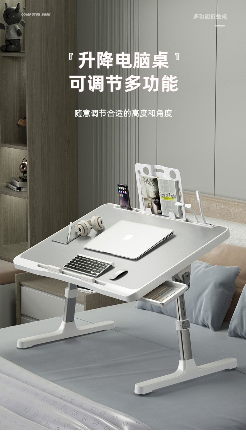 도매 새로운 리프팅 범위 조절 가능한 침대 접이식 작은 테이블 홈 오피스 컴퓨터 책상 게으른 사람들을위한 학습