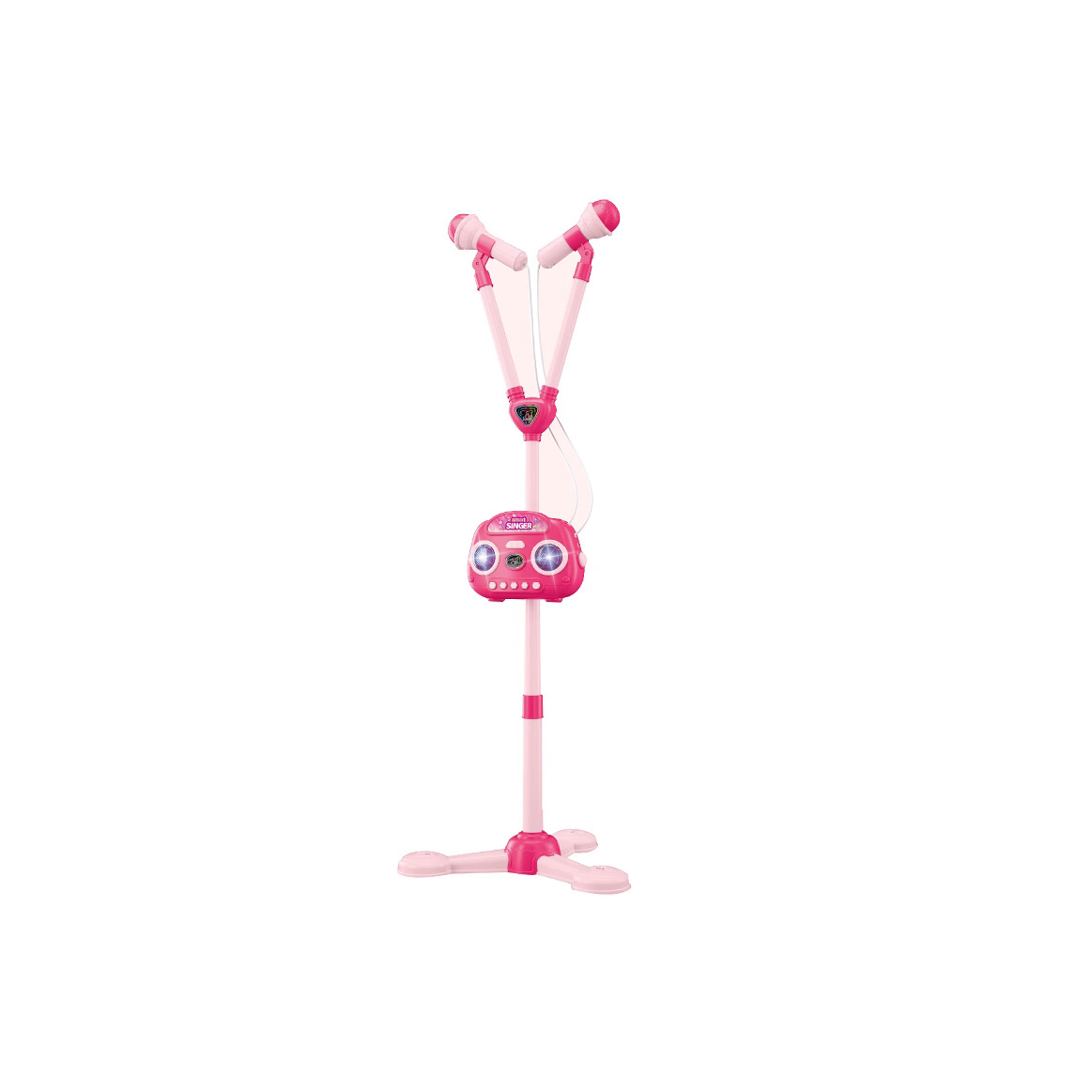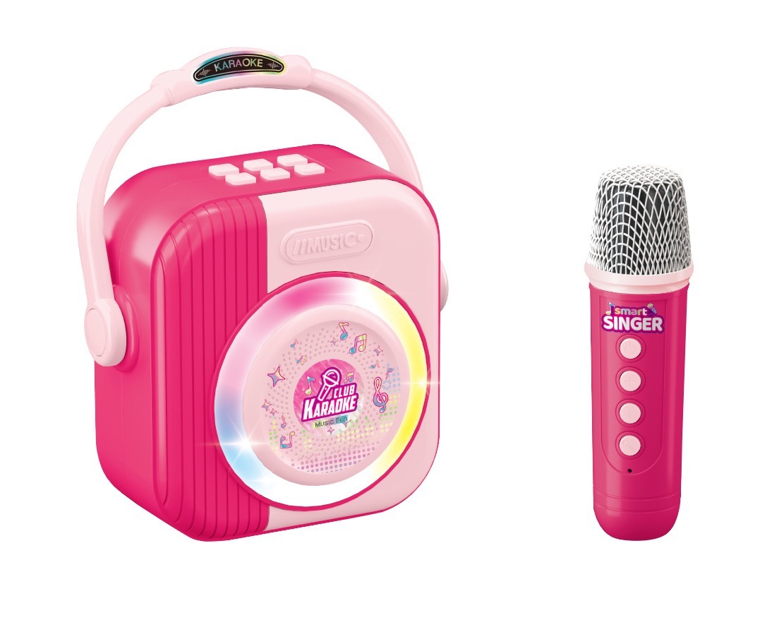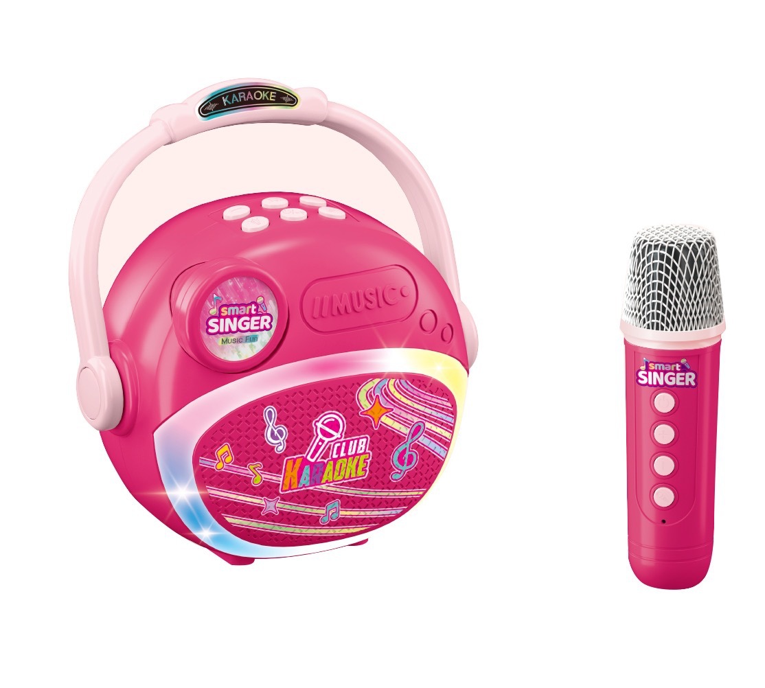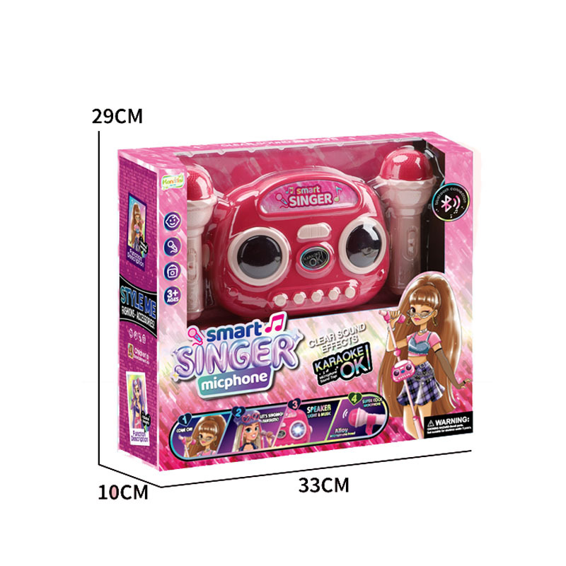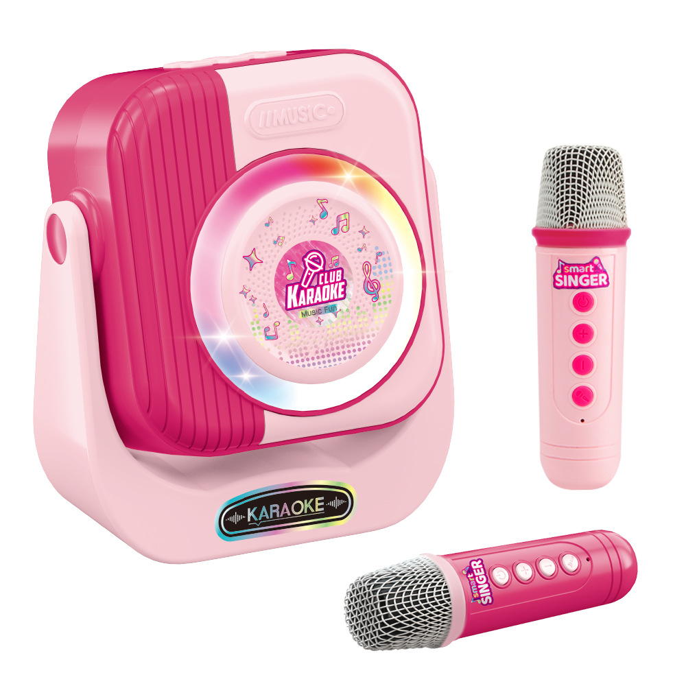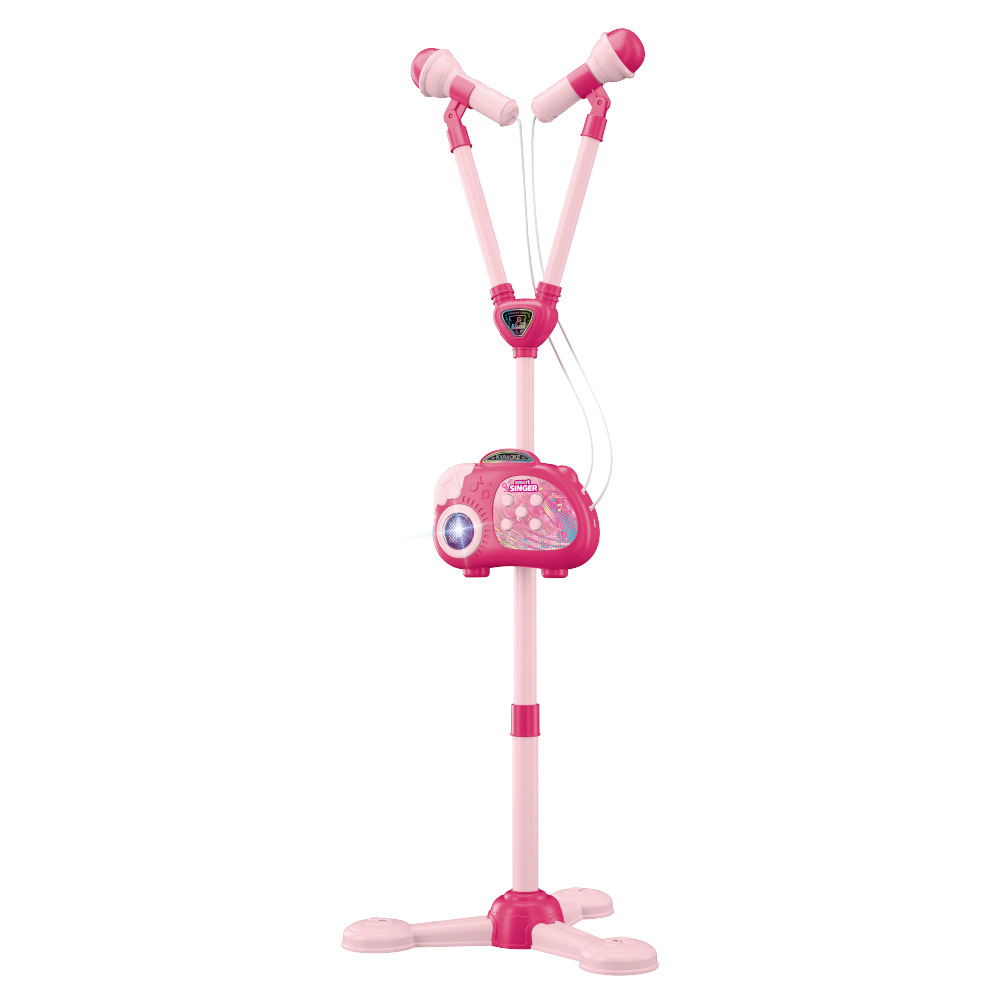 새로운 도착 핑크 더블 마이크 어린이 쇼 대화 형 게임 눈부신 색상 빛 악기 장난감스토어 가기