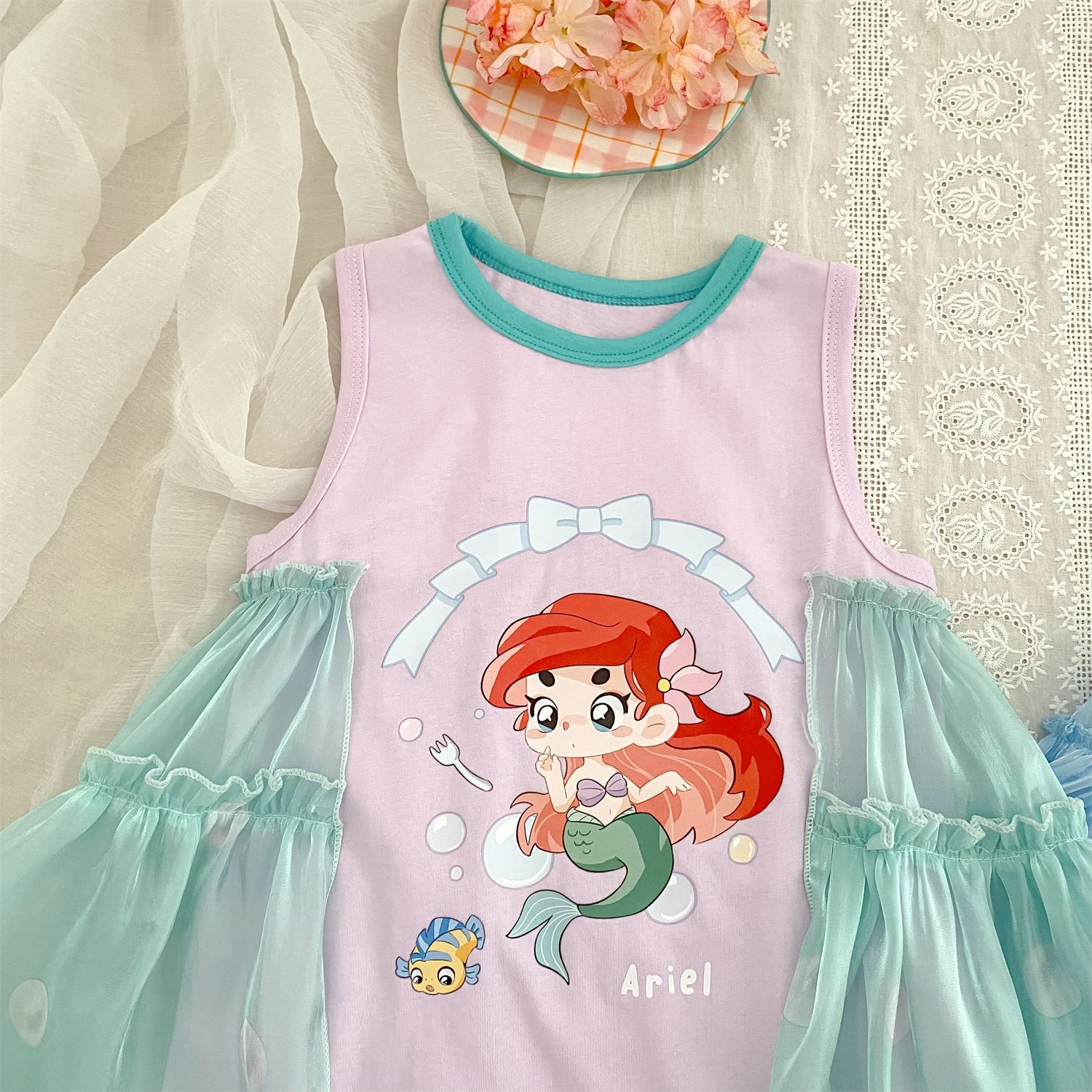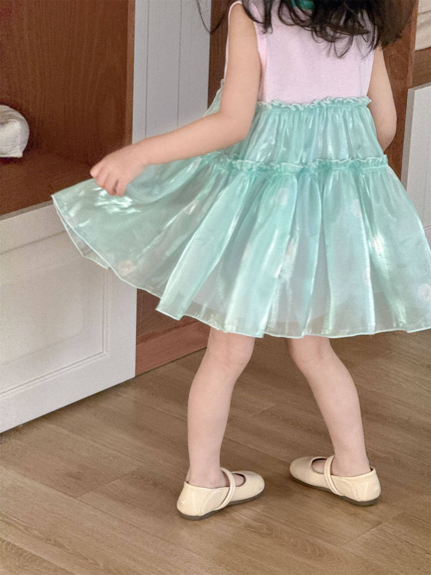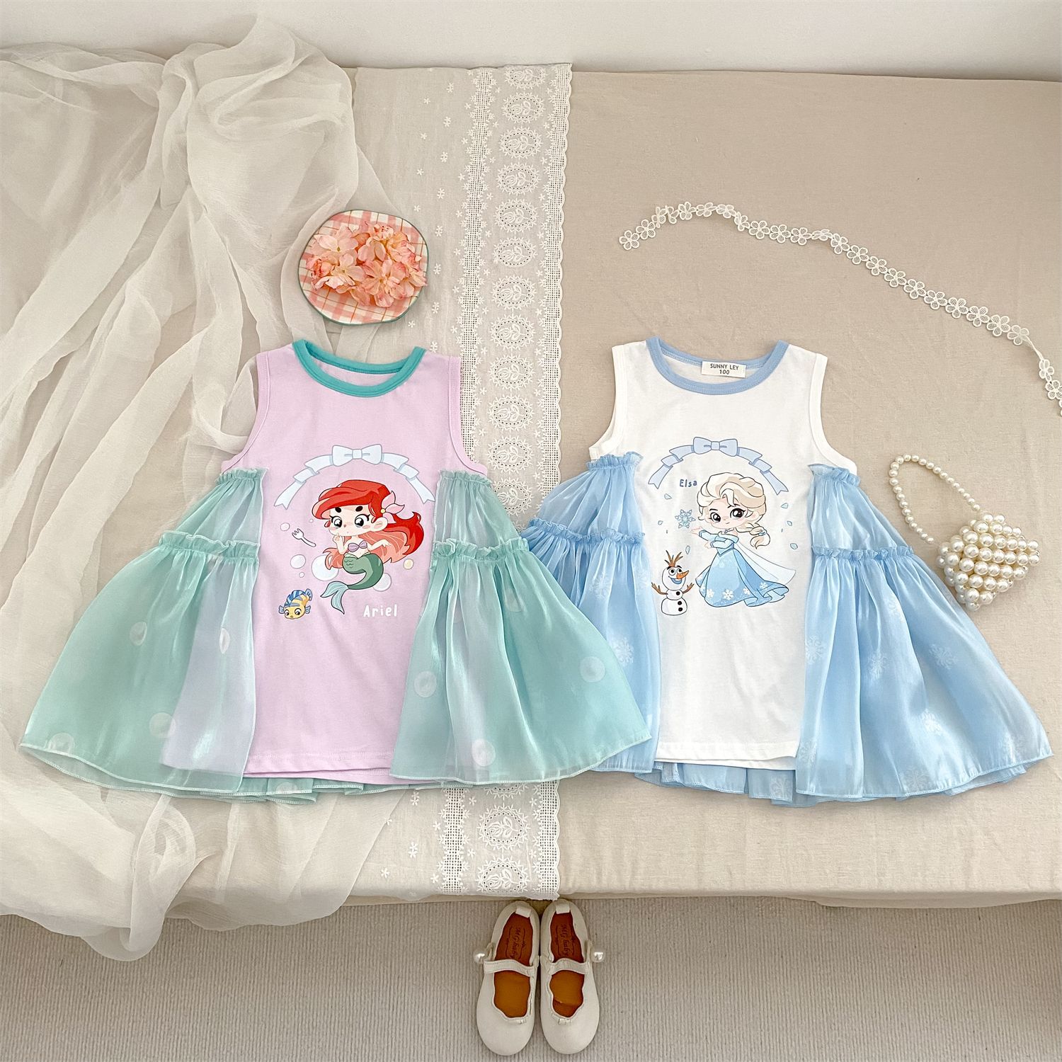 2025 봄 여름 신상품 해외 인기 여아 니트 반짝이 거즈 나비 날개 요정 드레스