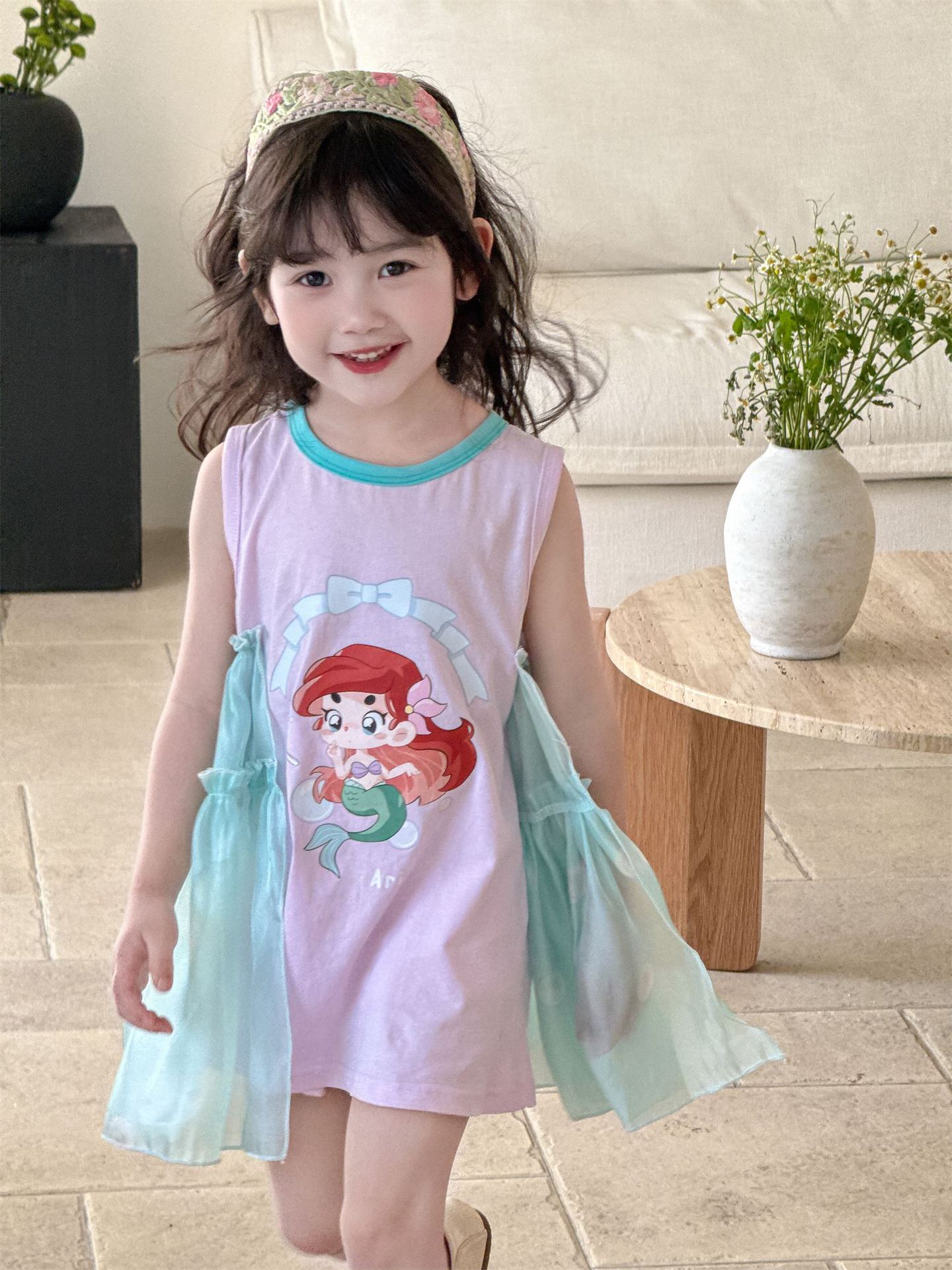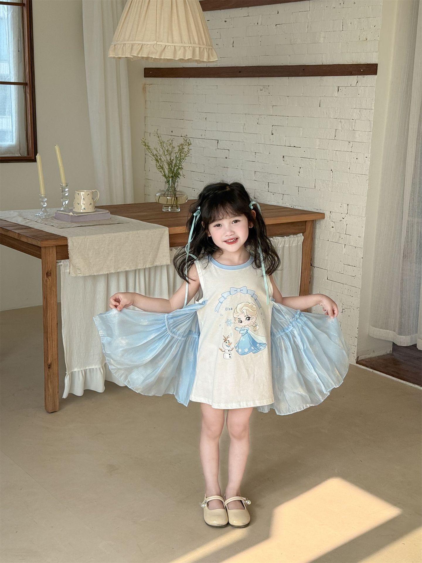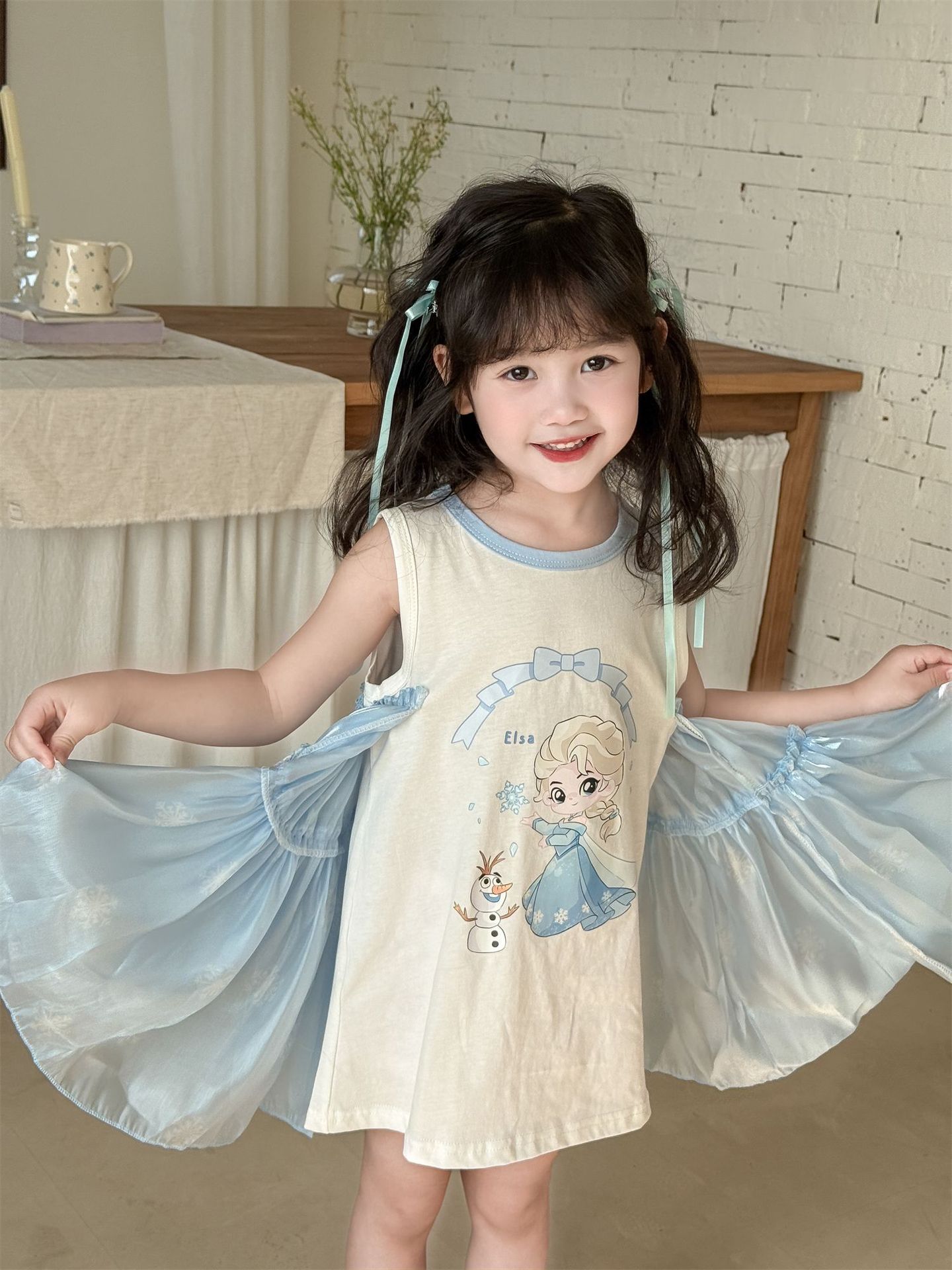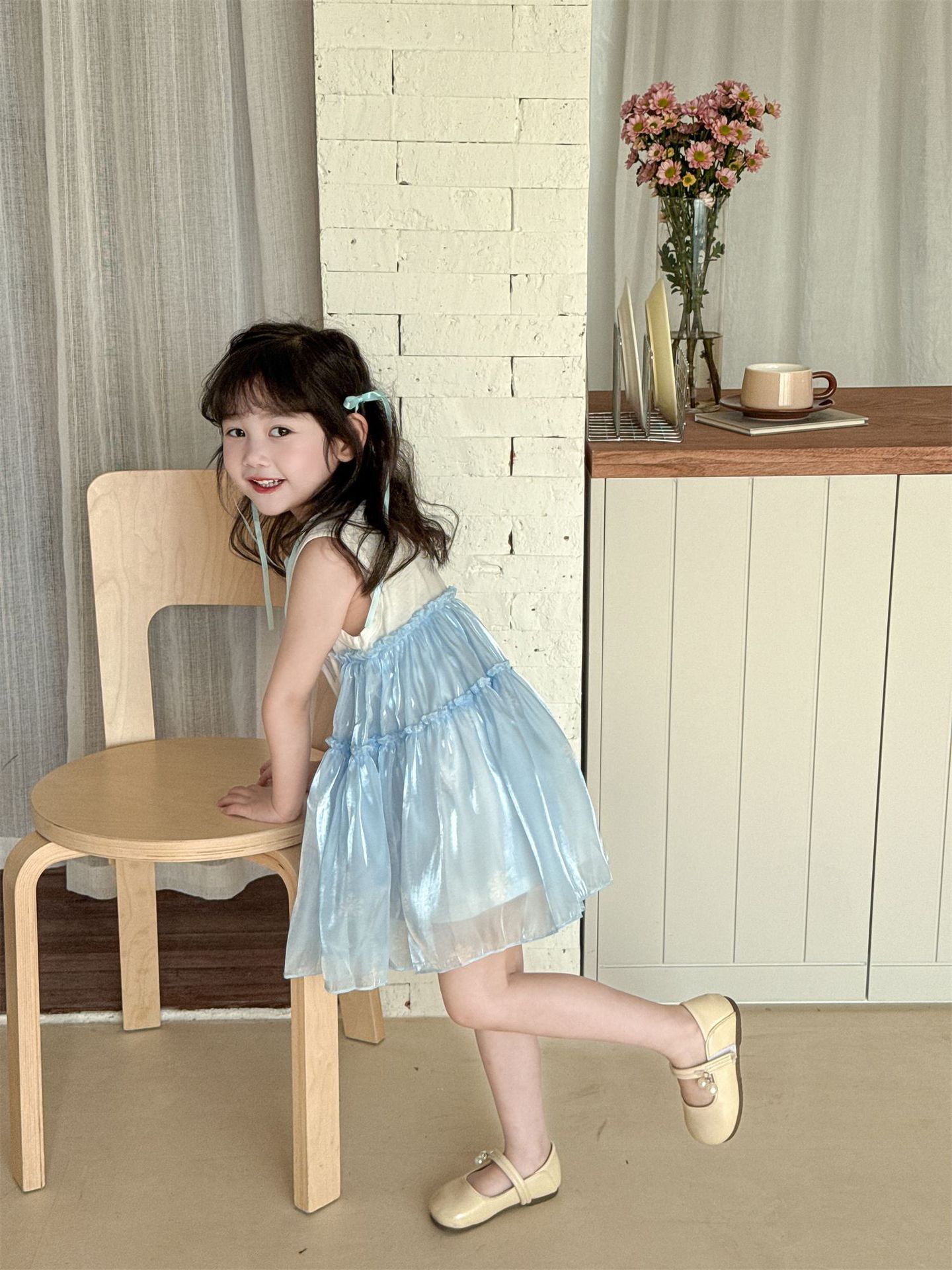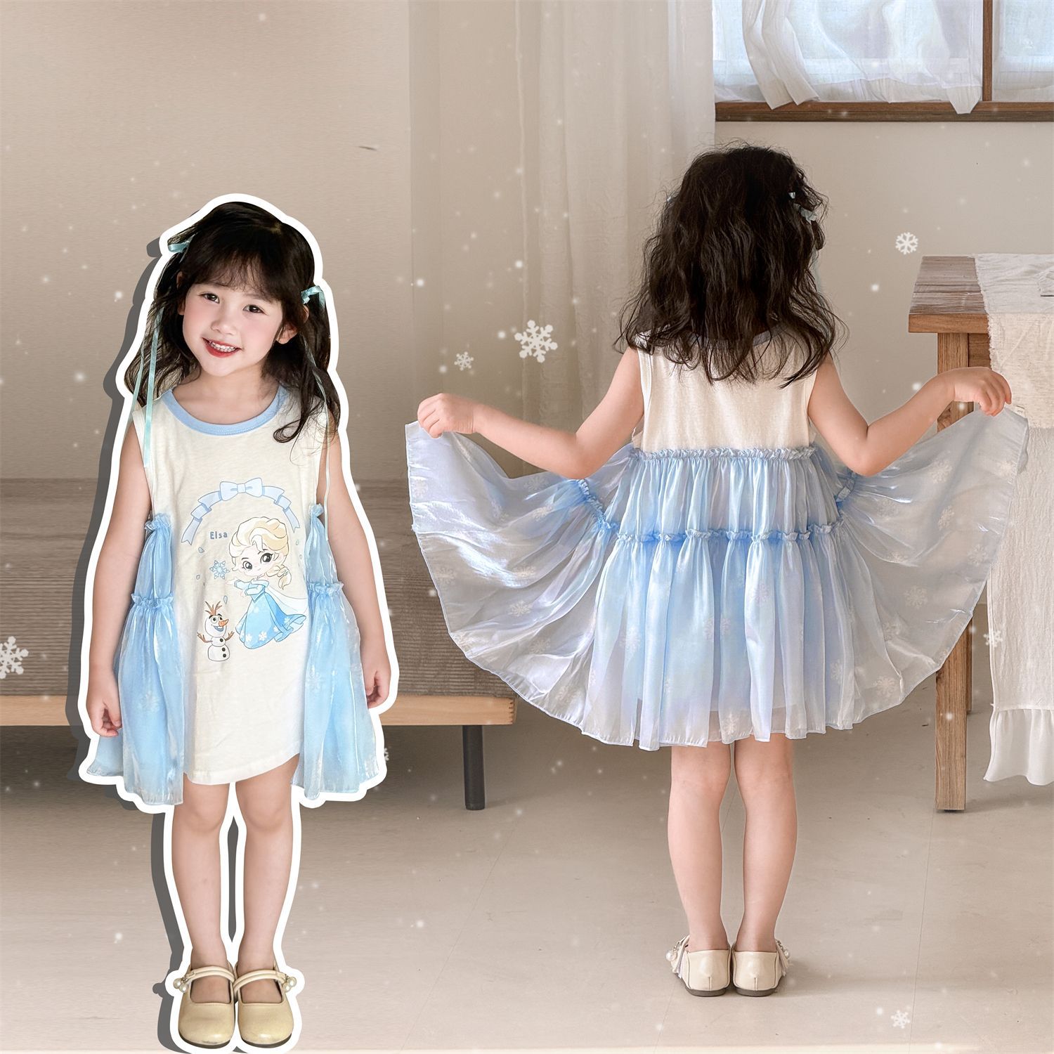 2025 봄 여름 신상품 해외 인기 여아 니트 반짝이 거즈 나비 날개 요정 드레스스토어 가기