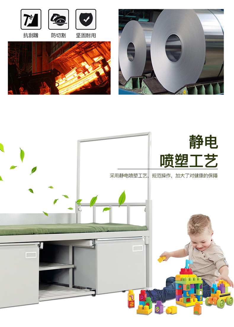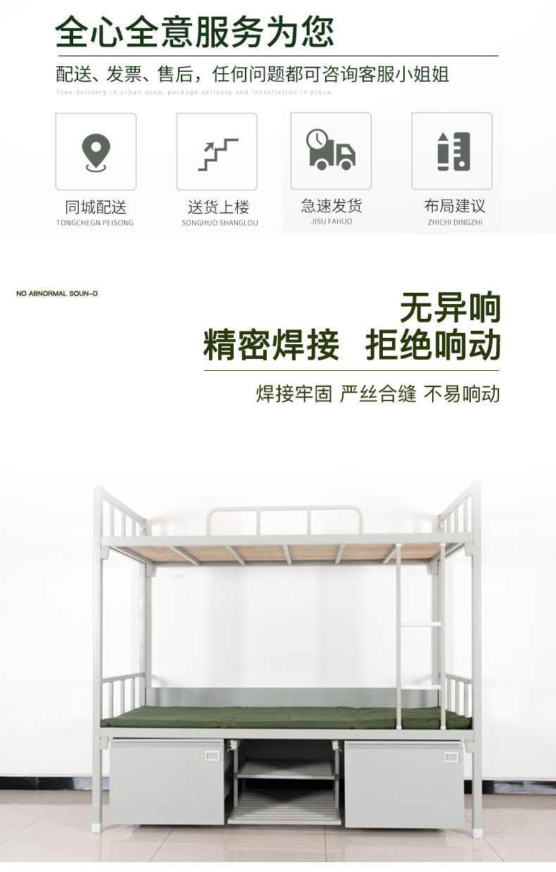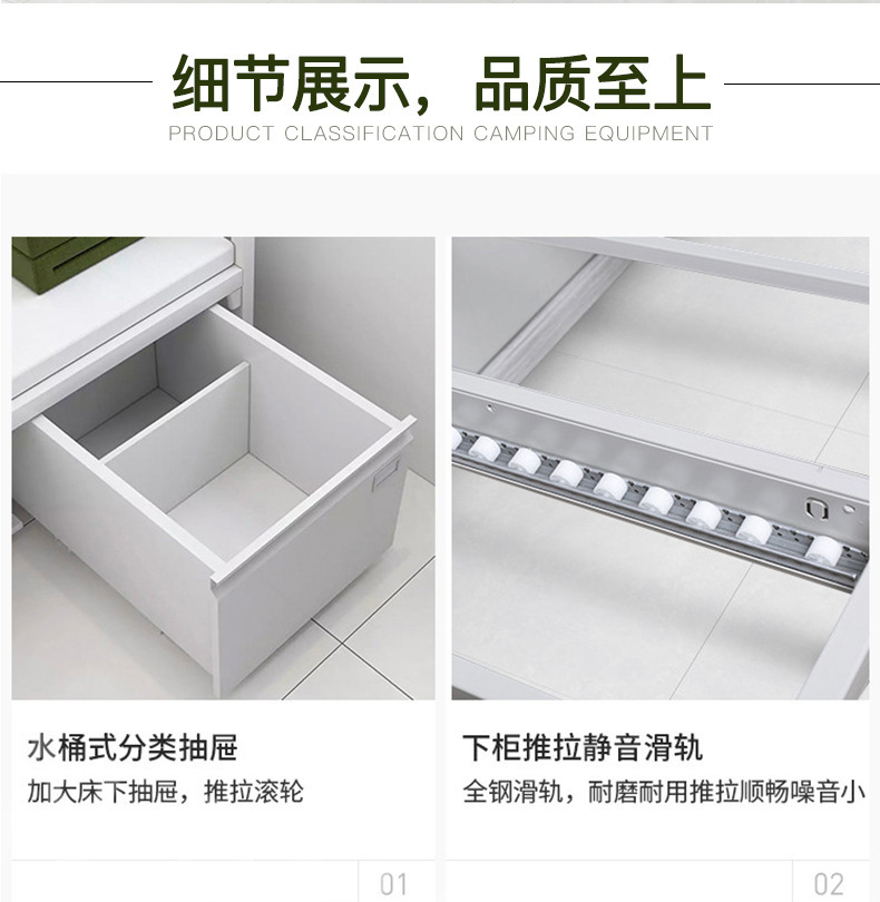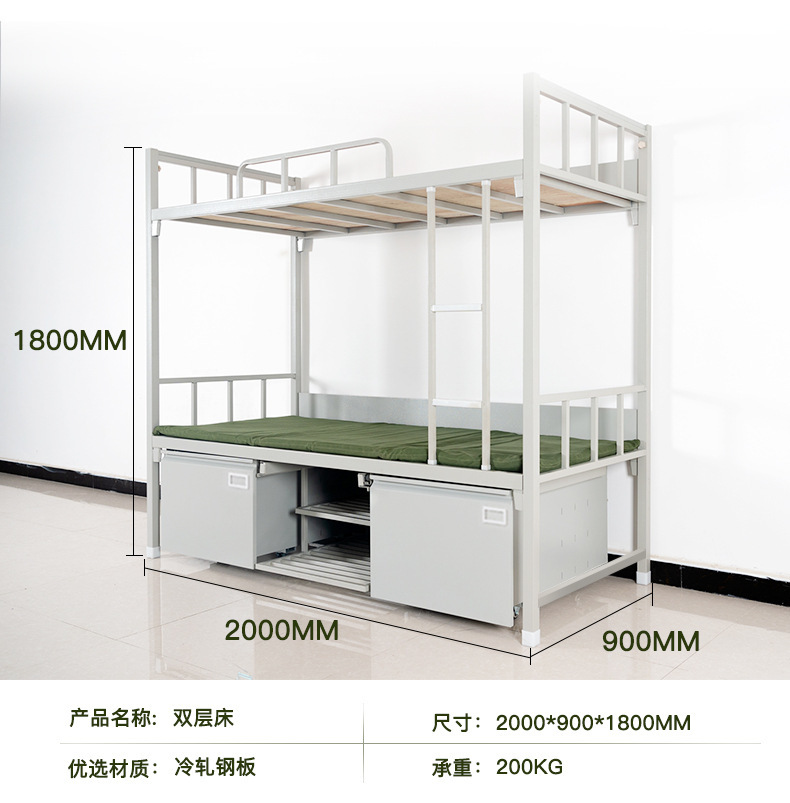 14형 표준 캠프용품 이층침대 공장 기숙사 상단 침대 및 하단 테이블 유닛 이층 철제 침대 직원 내부 캐비닛 학습 테이블스토어 가기