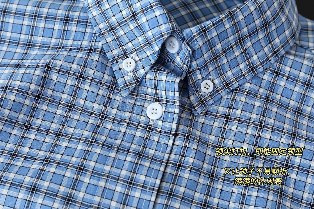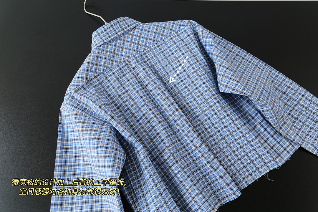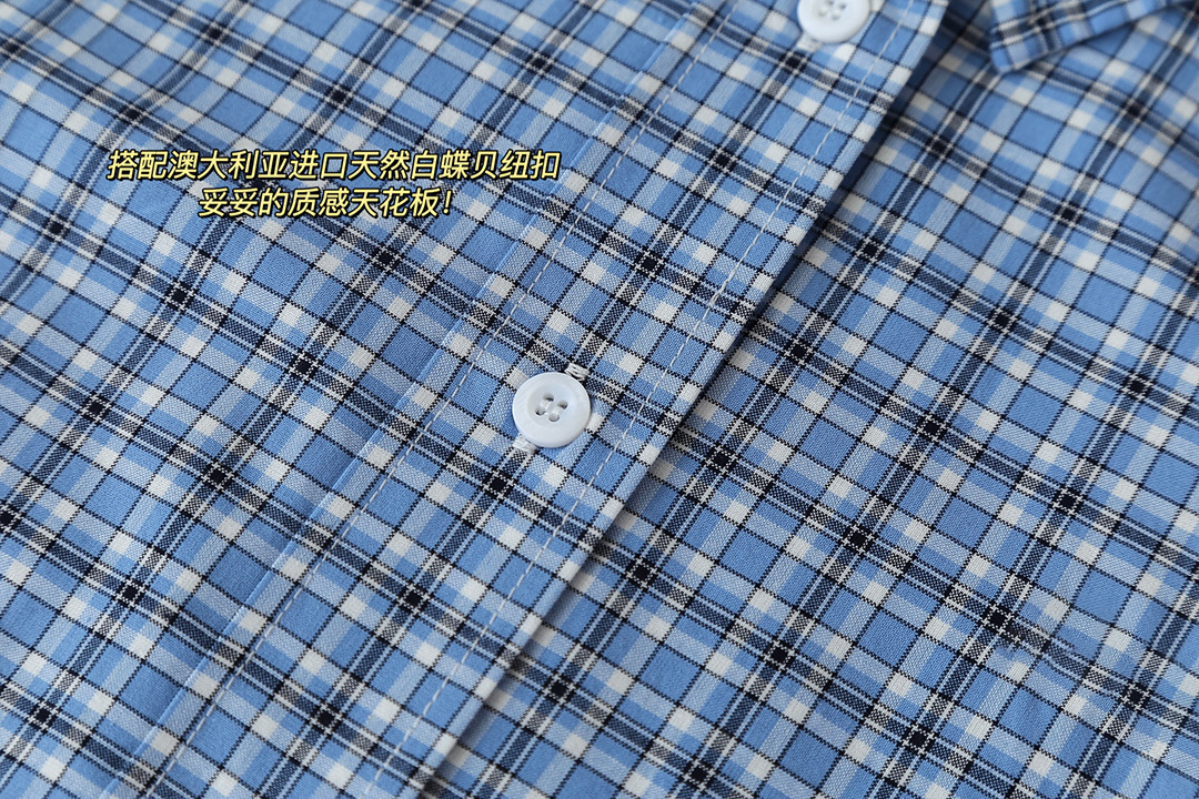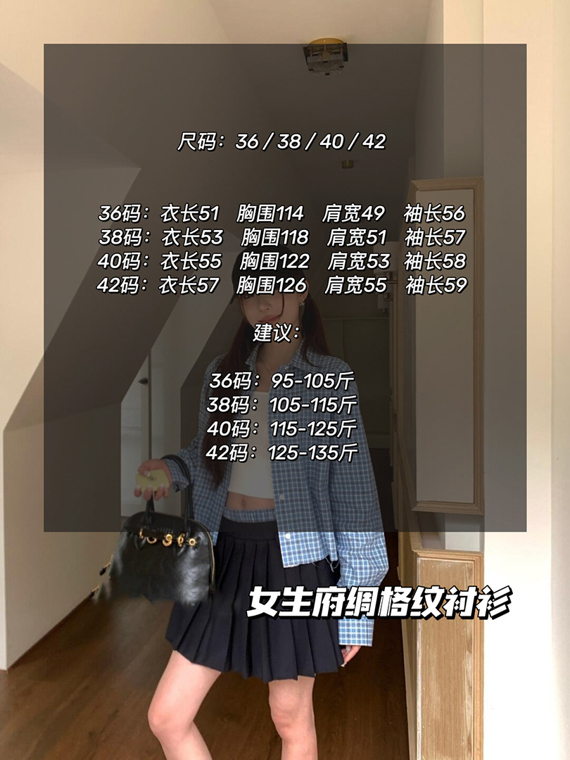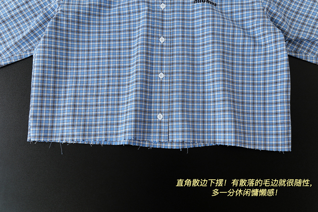 MM 라이트 블루 체크 무늬 짧은 라펠 여성 셔츠 자수 문자 로고 2025 심플 트렌디 브랜드 카디건 재킷스토어 가기