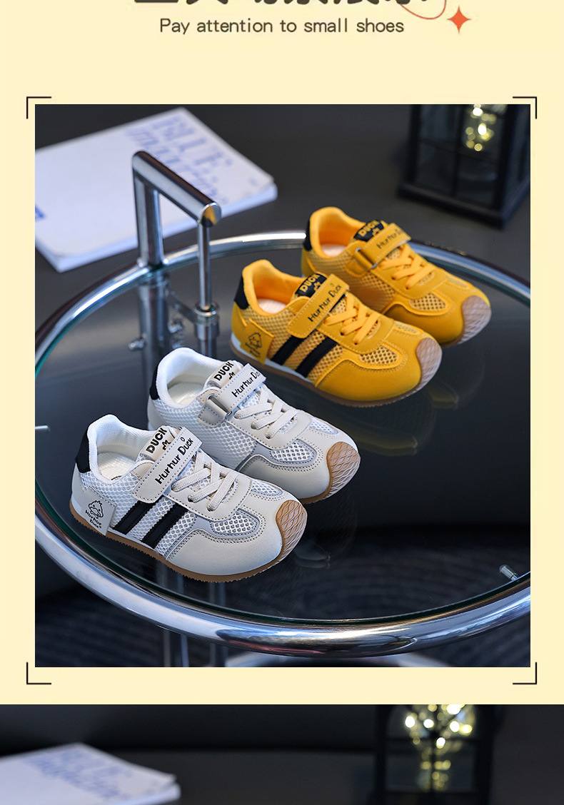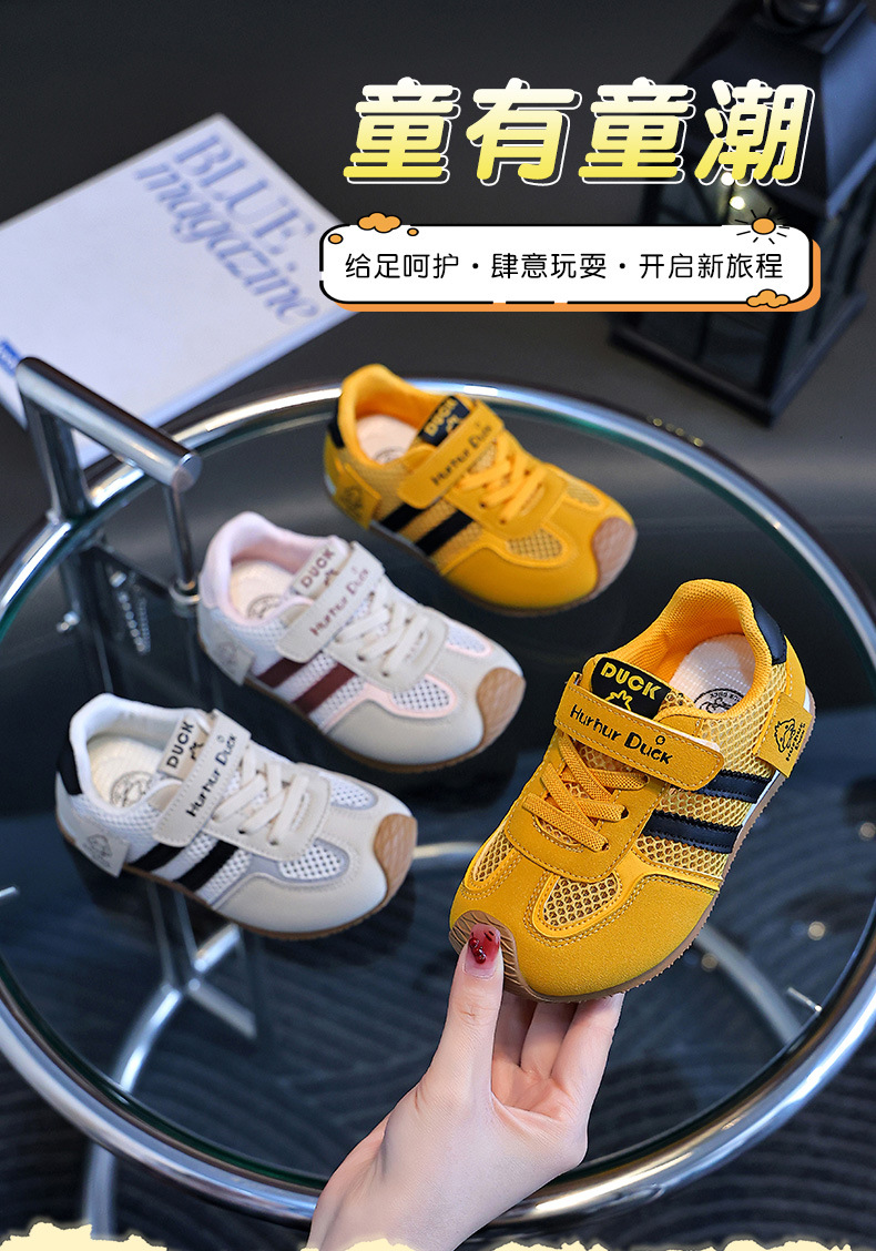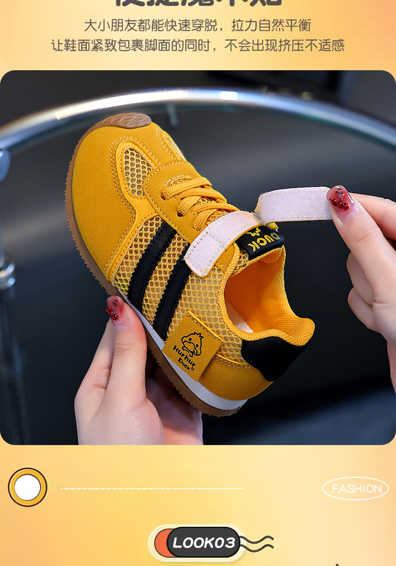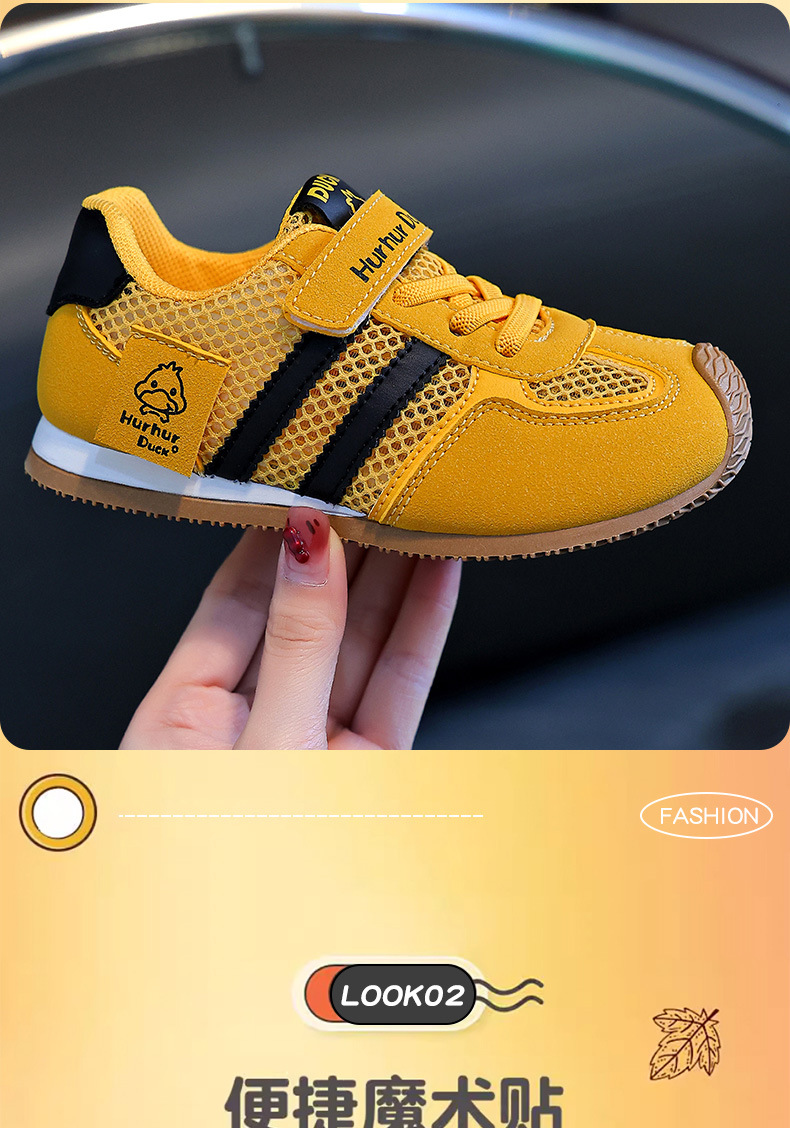 작은 노란색 오리 어린이 포레스트 검프 신발 여름 새 여자 노란색 운동화 육군 훈련 신발 소년 단일 메쉬 운동화 통기성스토어 가기