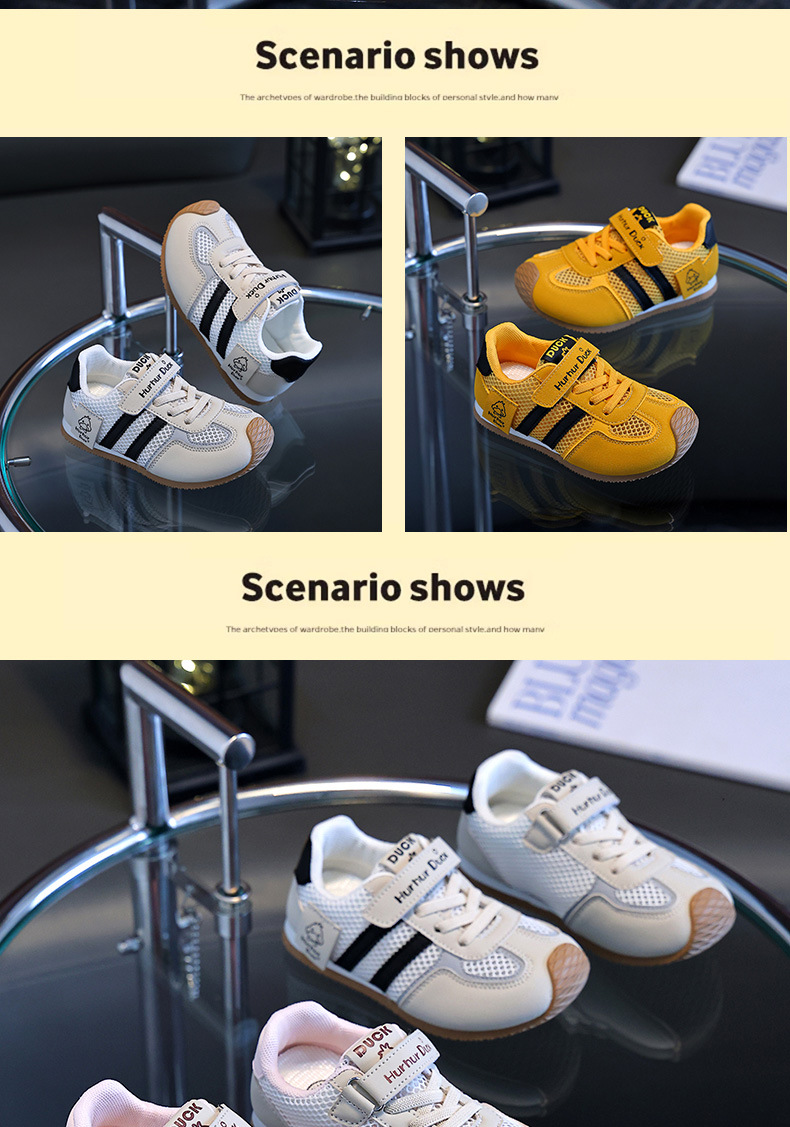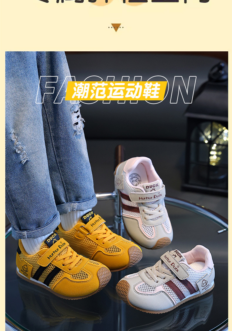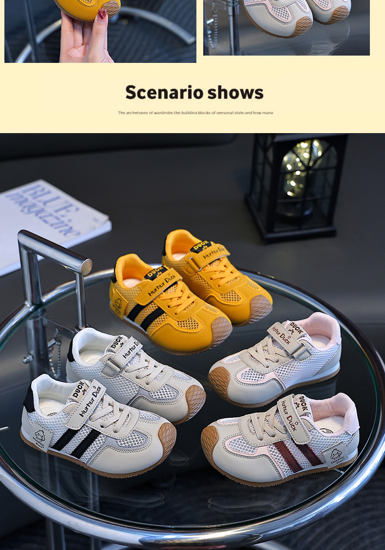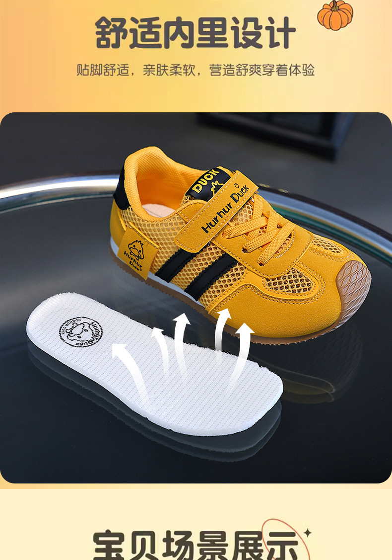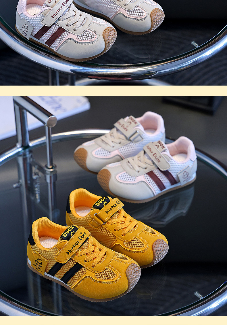 작은 노란색 오리 어린이 포레스트 검프 신발 여름 새 여자 노란색 운동화 육군 훈련 신발 소년 단일 메쉬 운동화 통기성