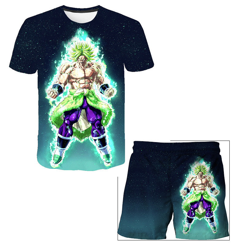 유럽과 미국 2025 여름 어린이 드래곤 볼 3DT 셔츠 + 반바지 2 피스 스포츠 및 레저 소년 소녀 의류 세트 도매스토어 가기