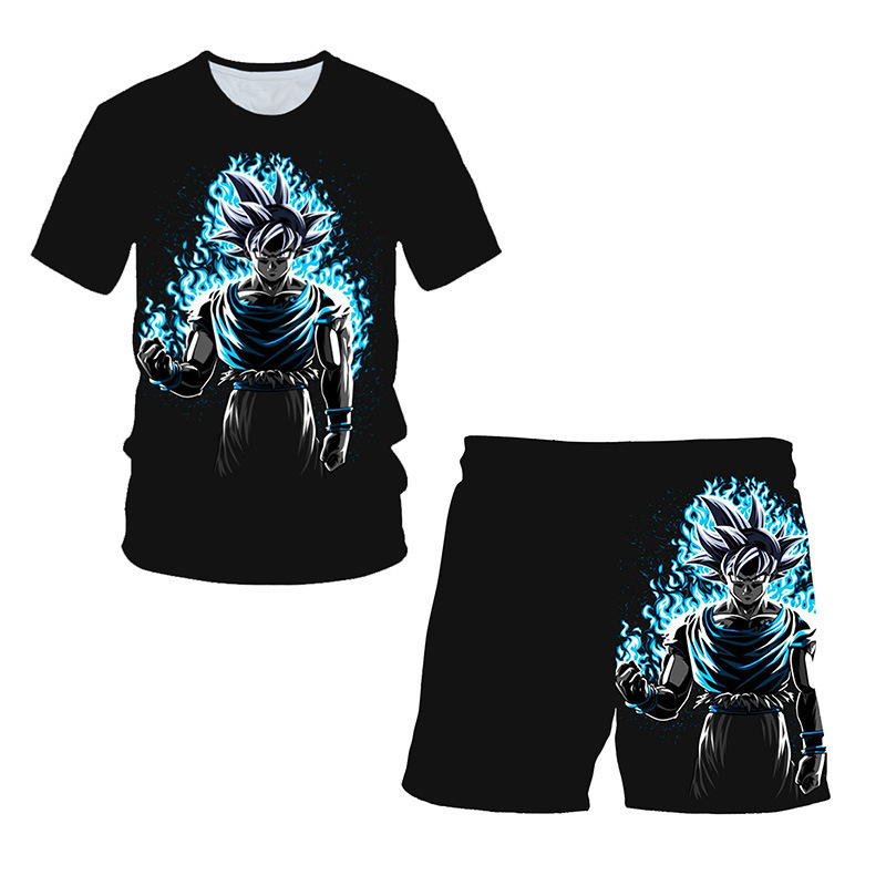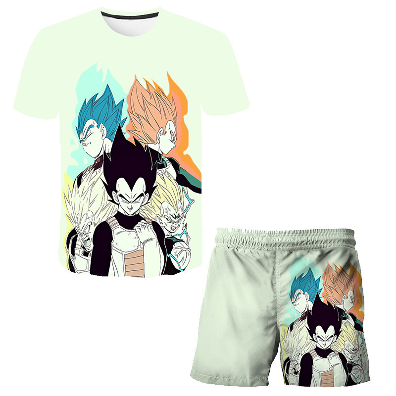 유럽과 미국 2025 여름 어린이 드래곤 볼 3DT 셔츠 + 반바지 2 피스 스포츠 및 레저 소년 소녀 의류 세트 도매