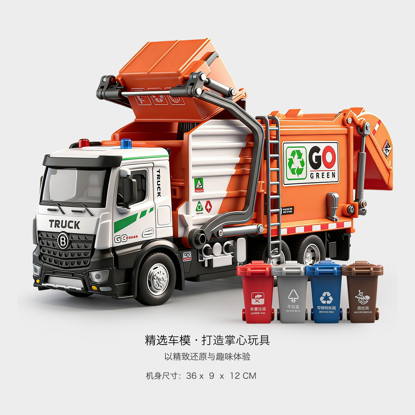 • 합금 버전(전기) 주황색 쓰레기 트럭