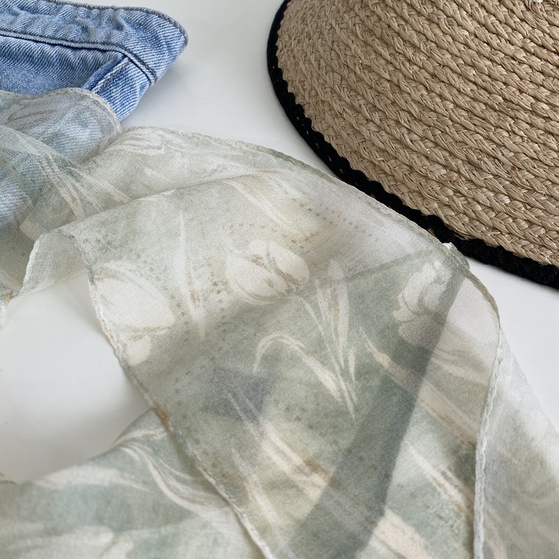 봄과 여름 고급 경량 실크 롱 스카프 여성 100 뽕나무 실크 스카프 서양식 리본 좁은 스카프스토어 가기