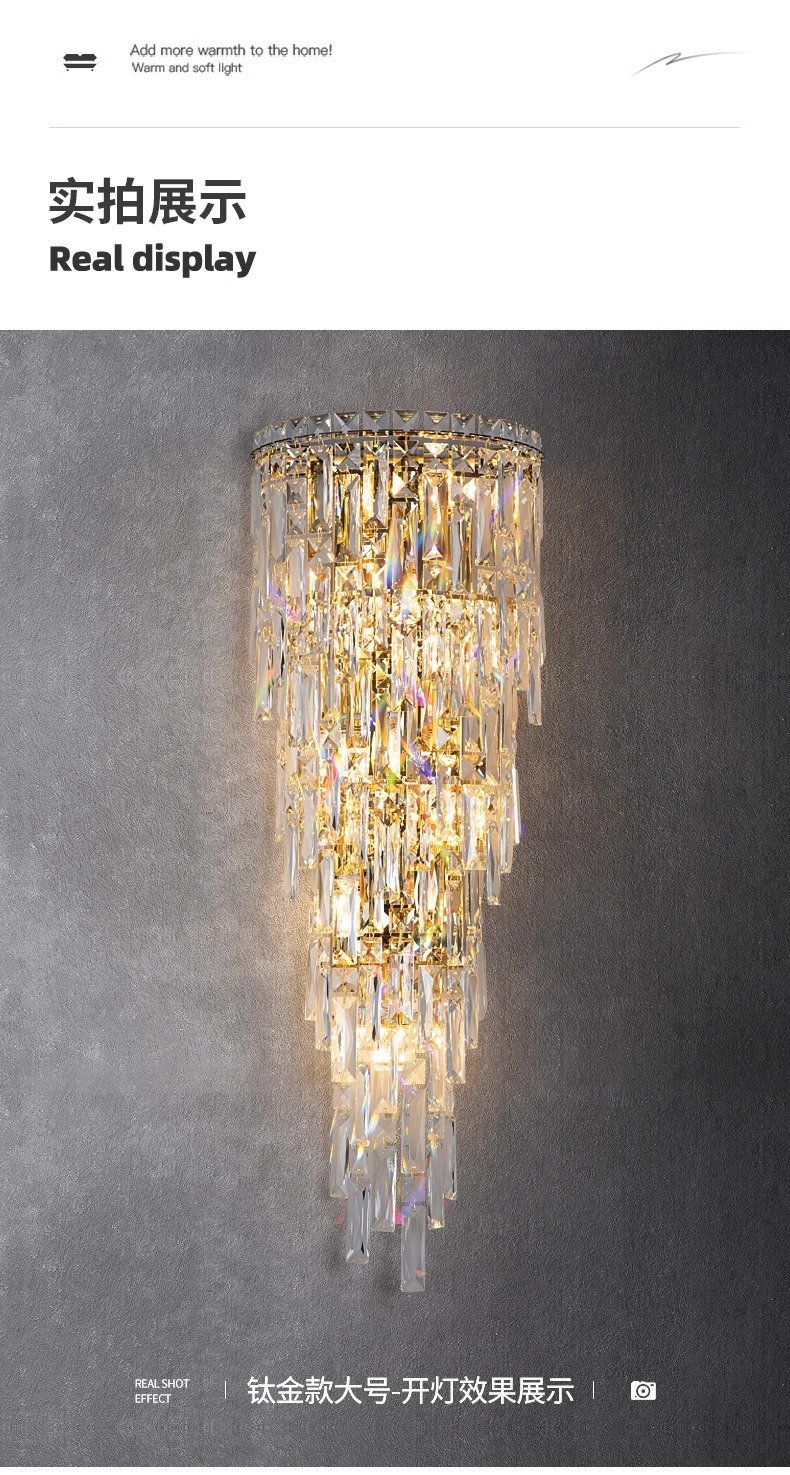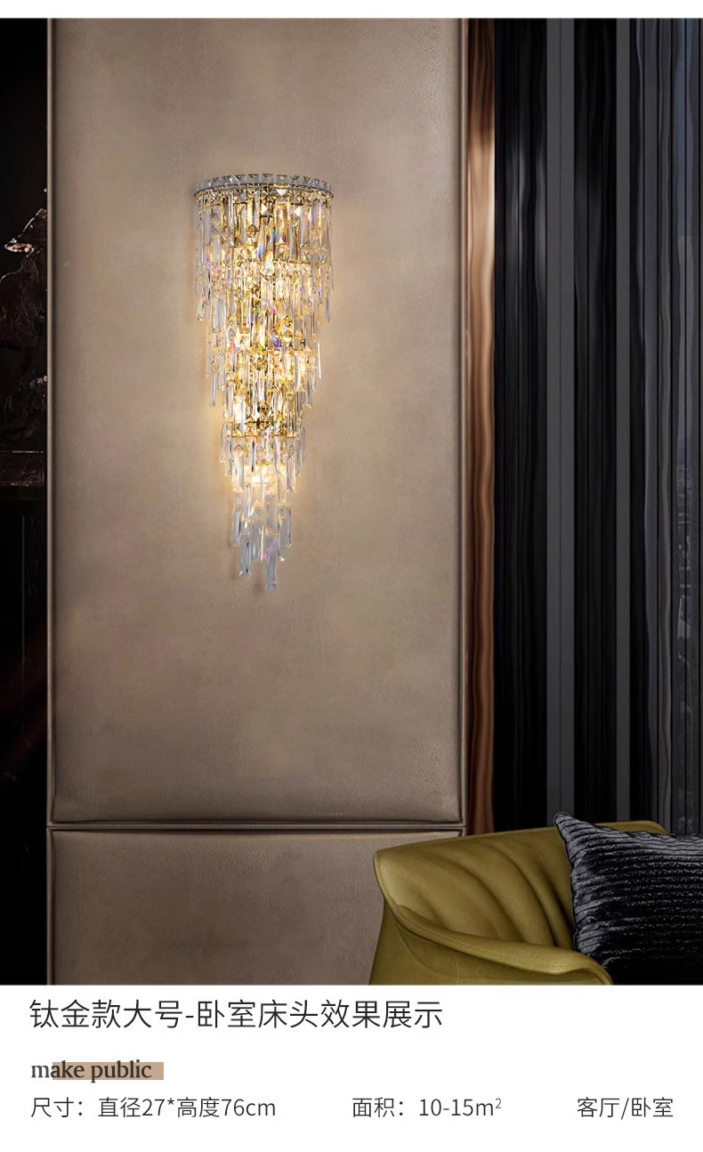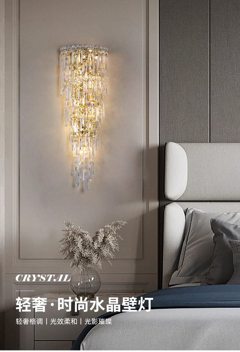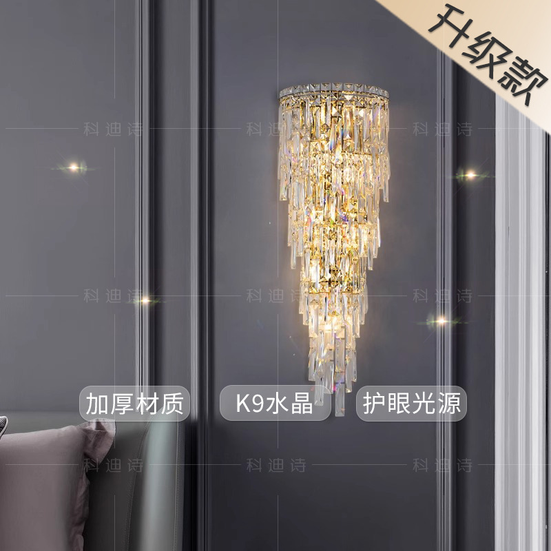 눈 보호 크리스탈 벽 램프 빌라 복층 거실 배경 벽 장식 램프 라이트 럭셔리 침실 벽 램프 분위기 침대 옆 램프스토어 가기