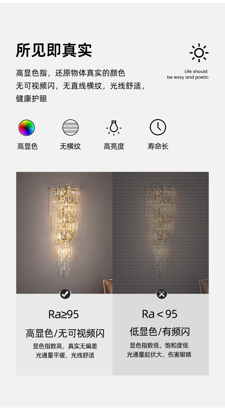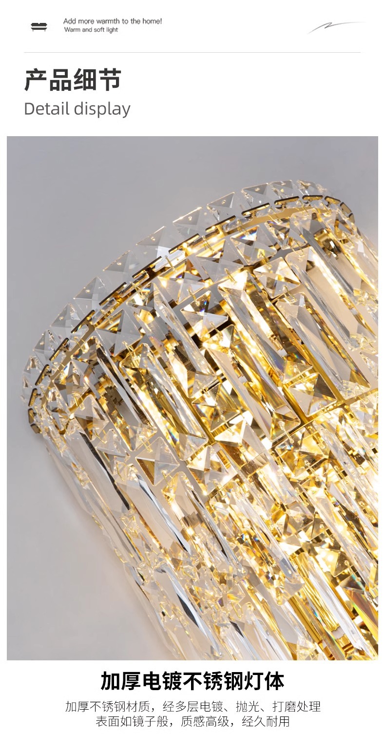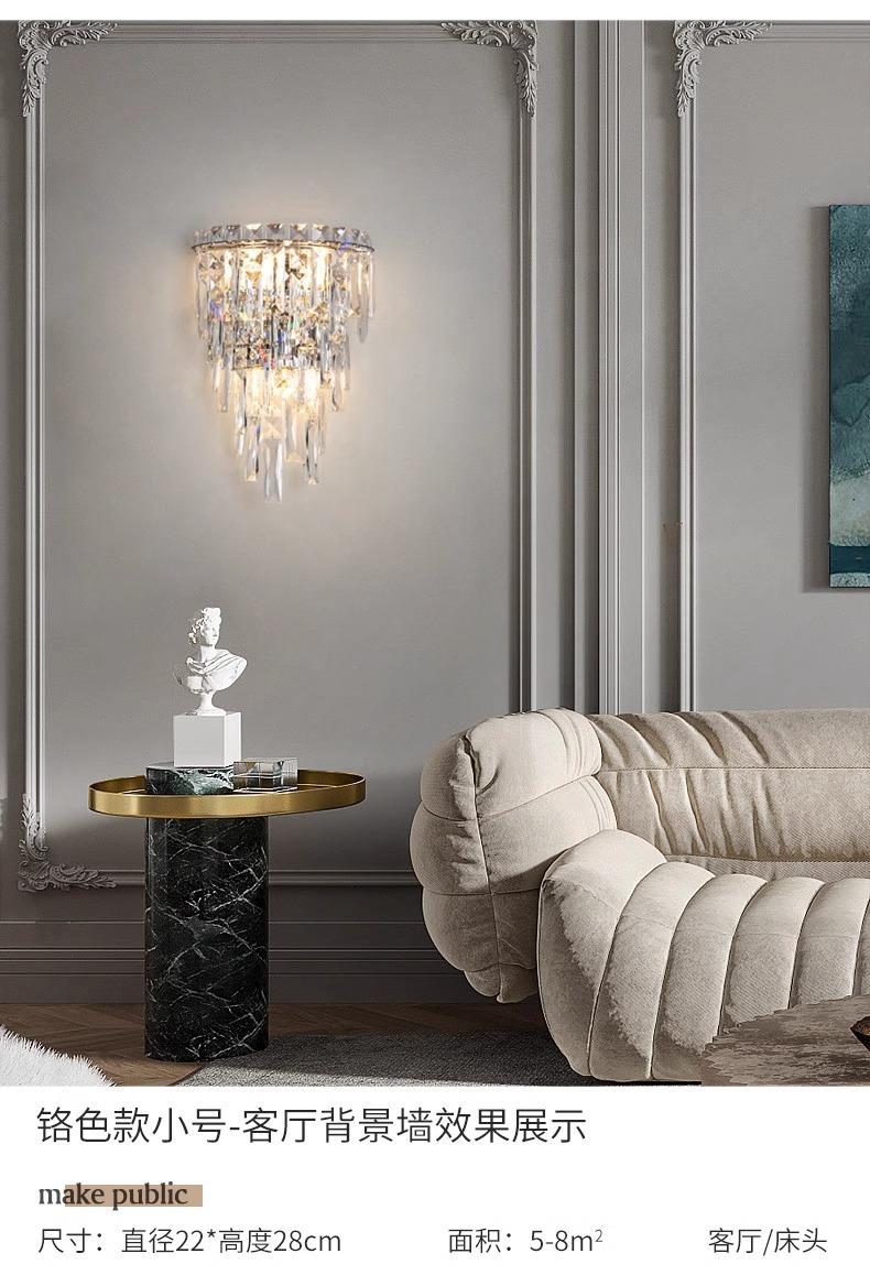 눈 보호 크리스탈 벽 램프 빌라 복층 거실 배경 벽 장식 램프 라이트 럭셔리 침실 벽 램프 분위기 침대 옆 램프스토어 가기