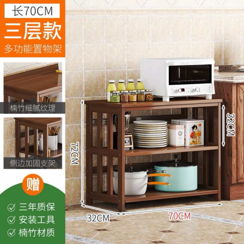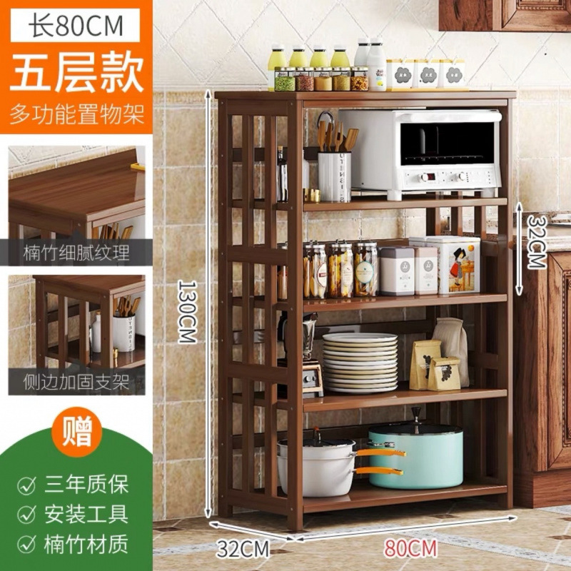 楠竹厨房置物架微波炉烤箱收纳架客厅实木锅具用品多层储物柜落地