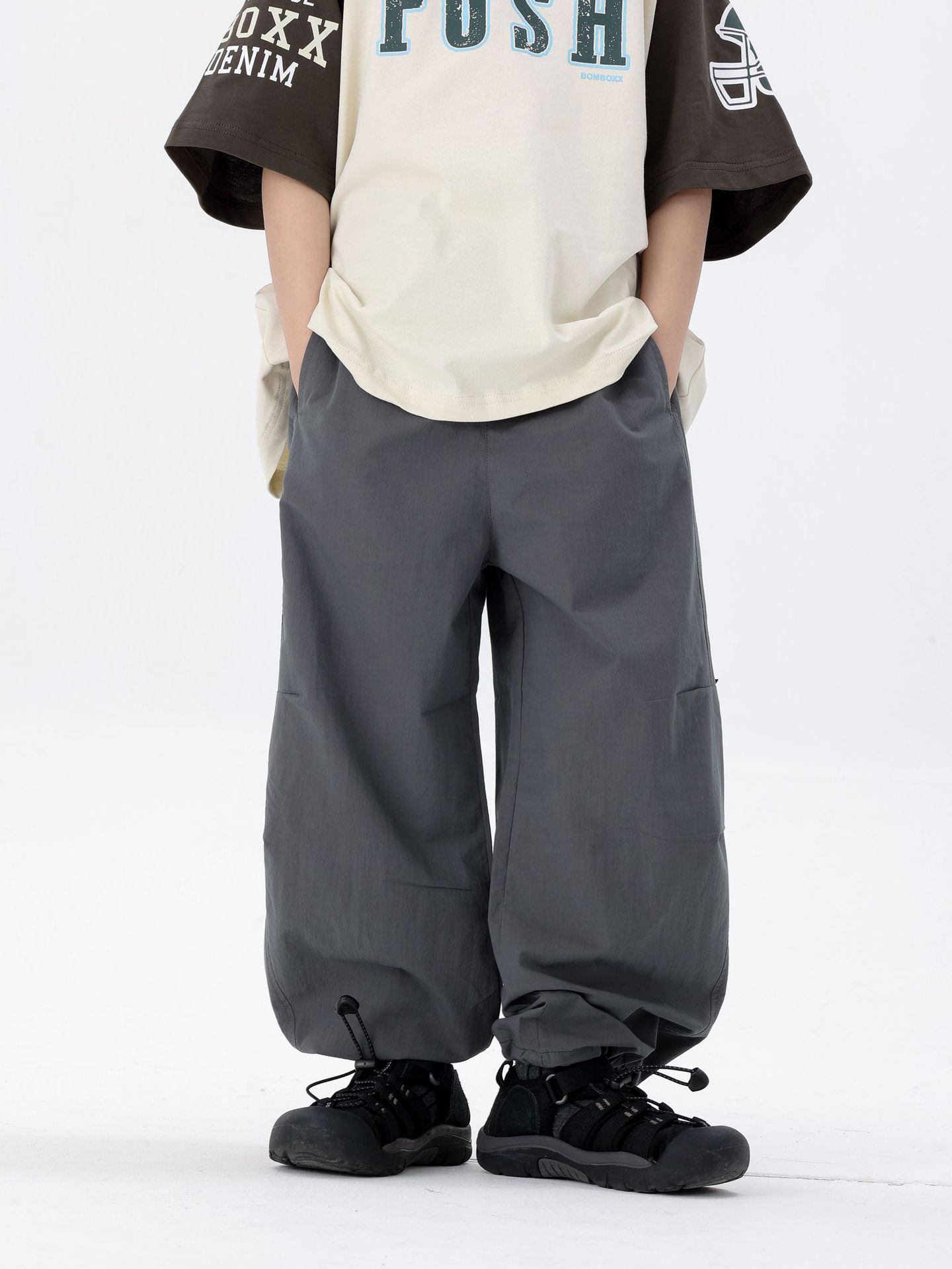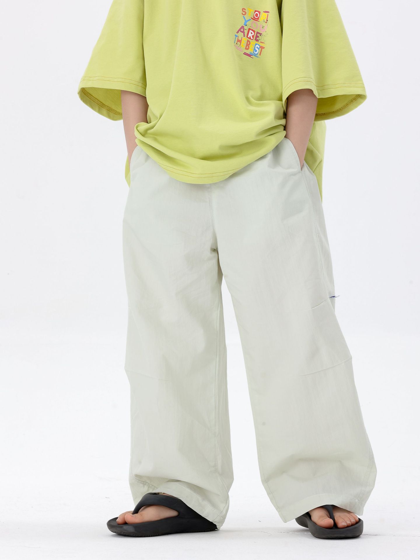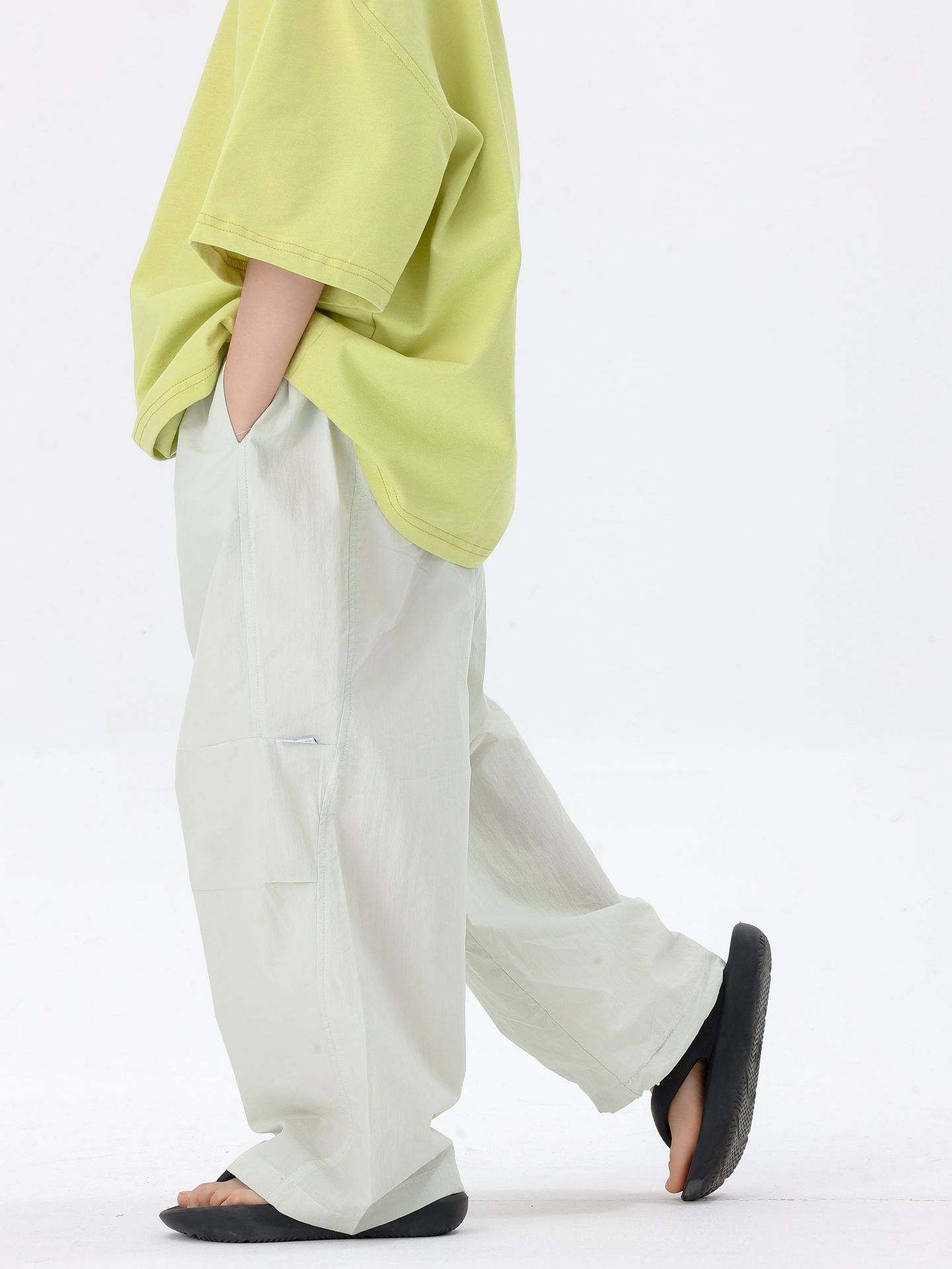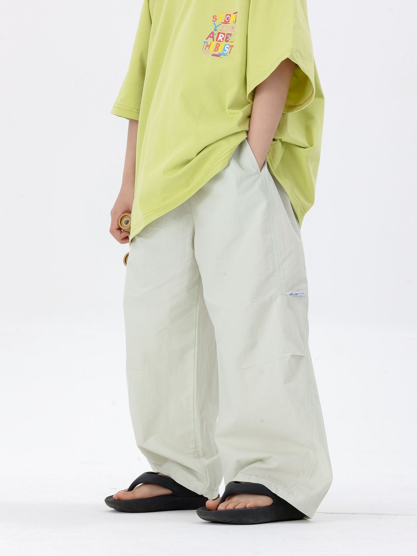 25 새로운 여름 아동 캐주얼 바지 아동용 스트레이트 팬츠 심플하고 멋진 직조 라벨 장식 소년 모기 방지 바지