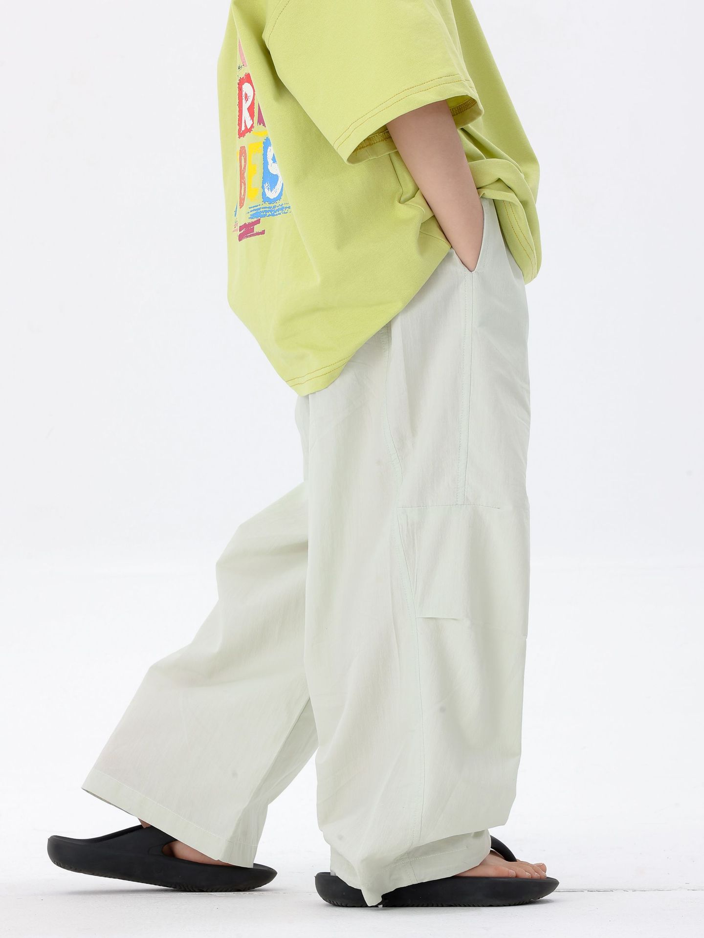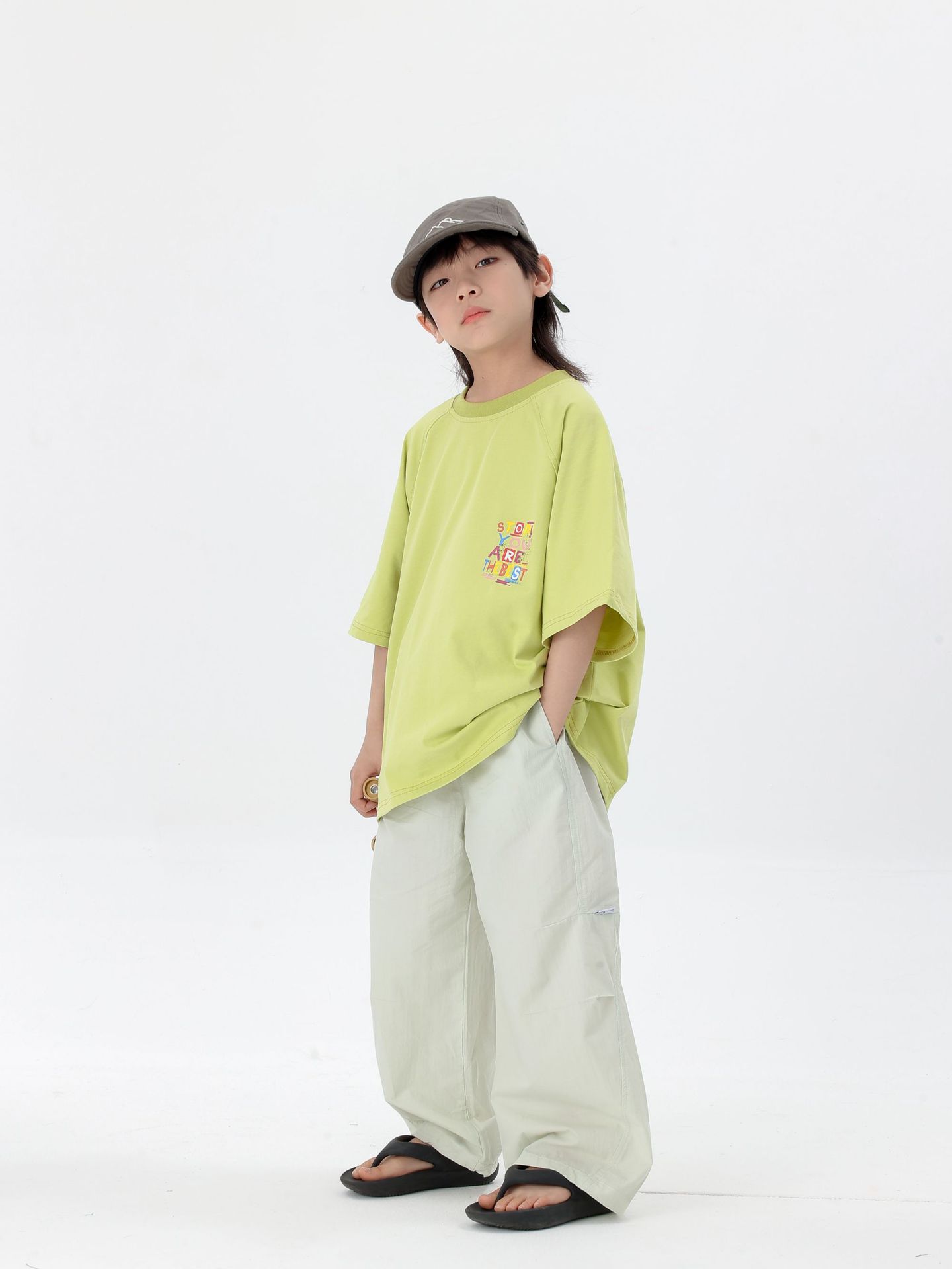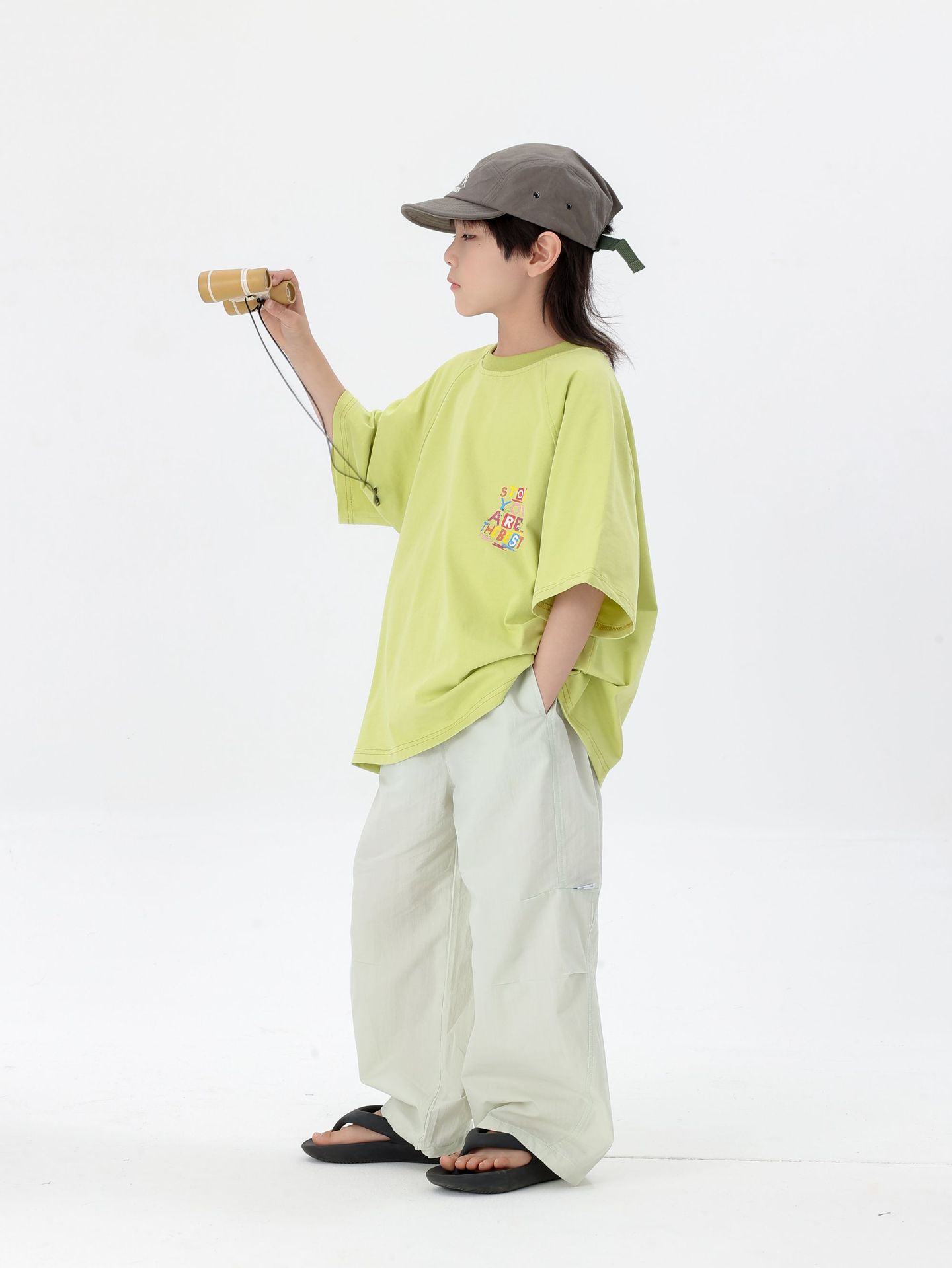 25 새로운 여름 아동 캐주얼 바지 아동용 스트레이트 팬츠 심플하고 멋진 직조 라벨 장식 소년 모기 방지 바지