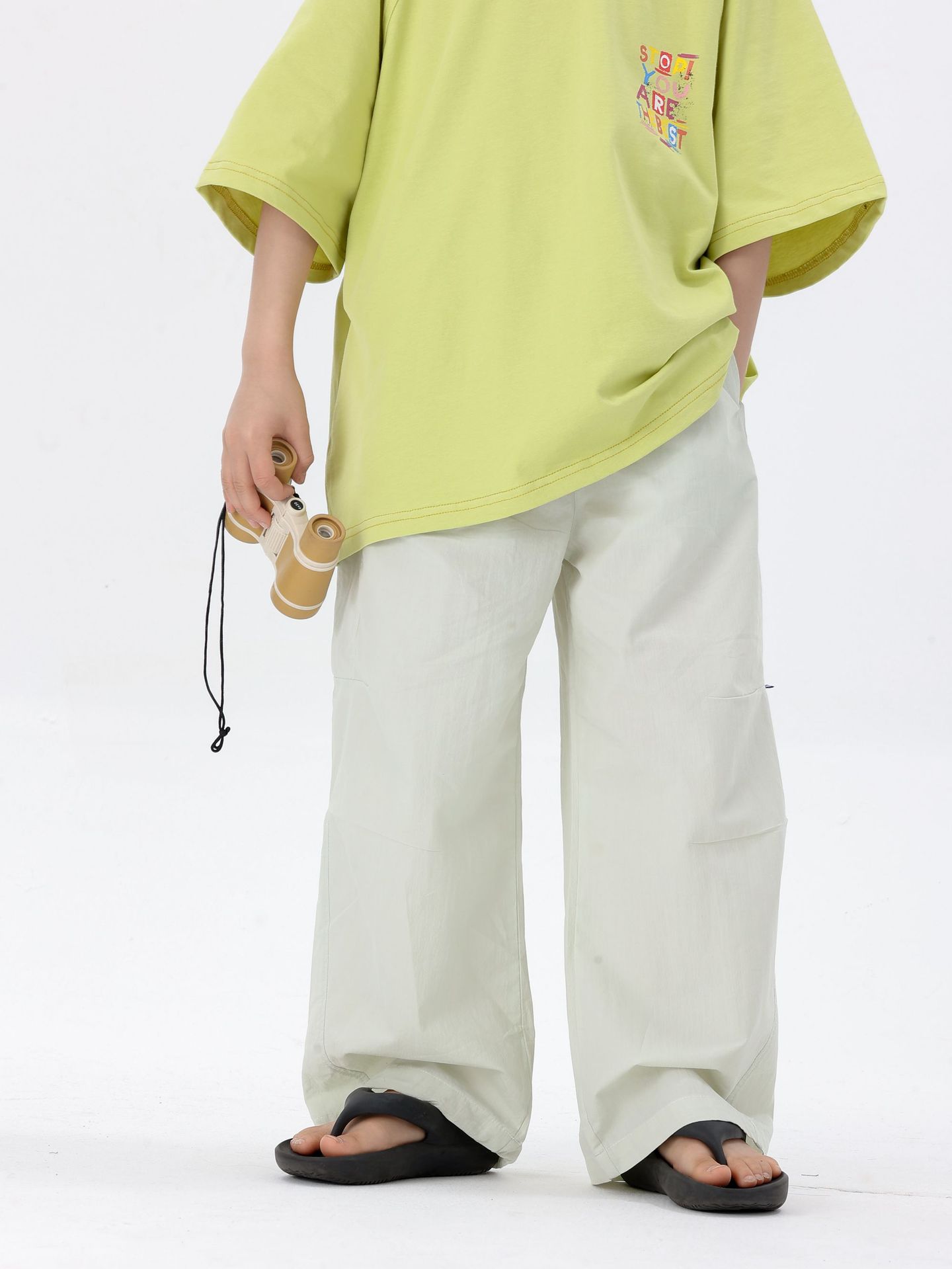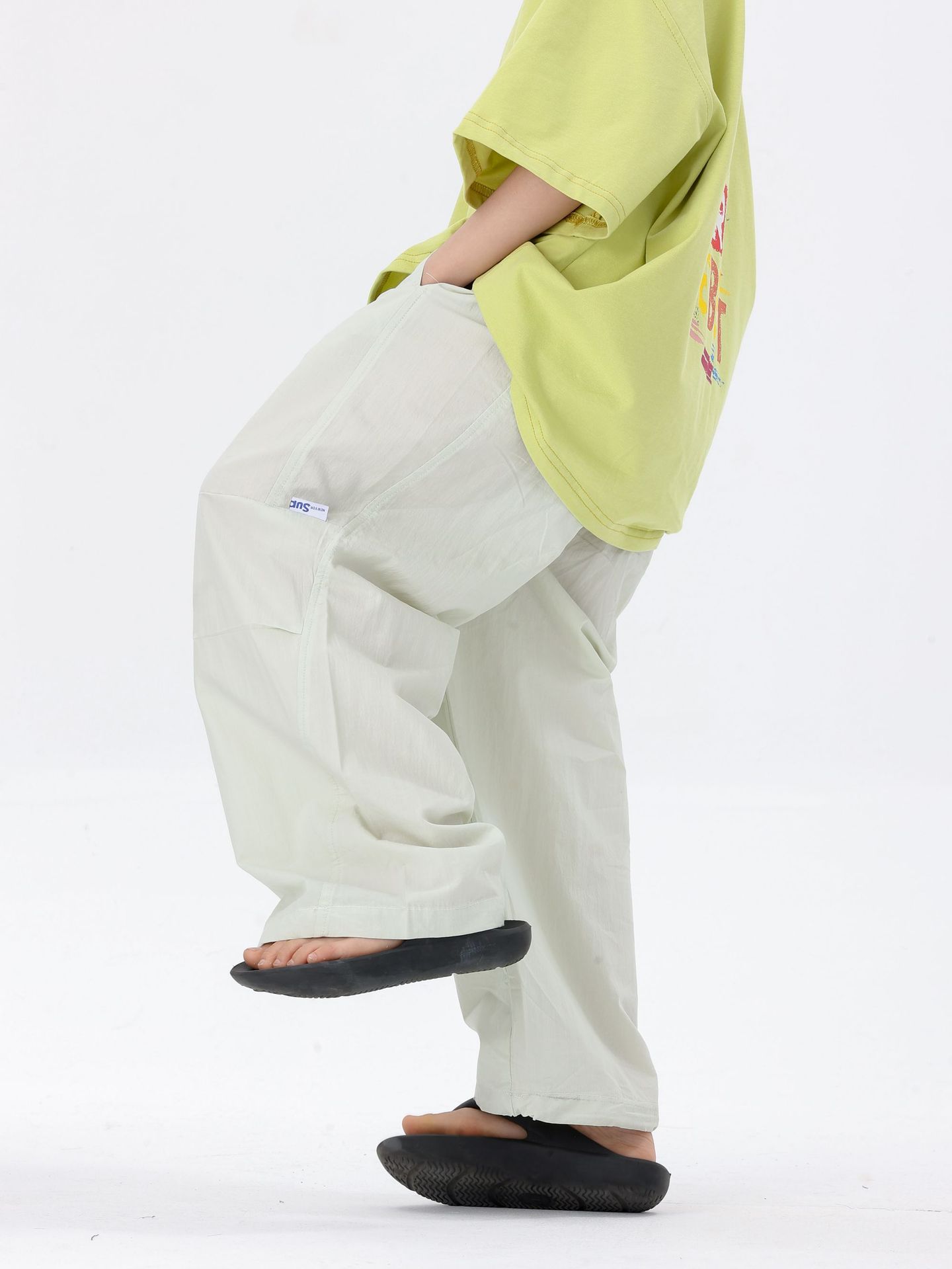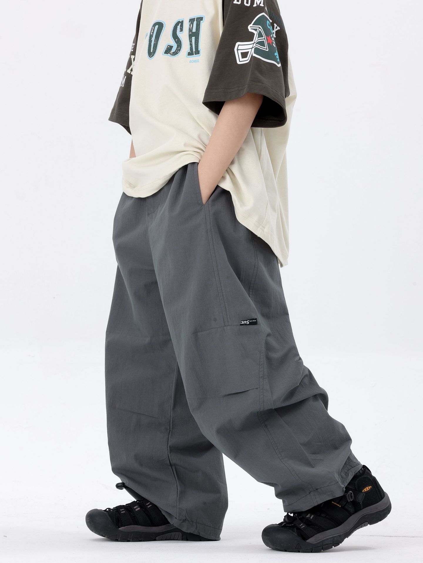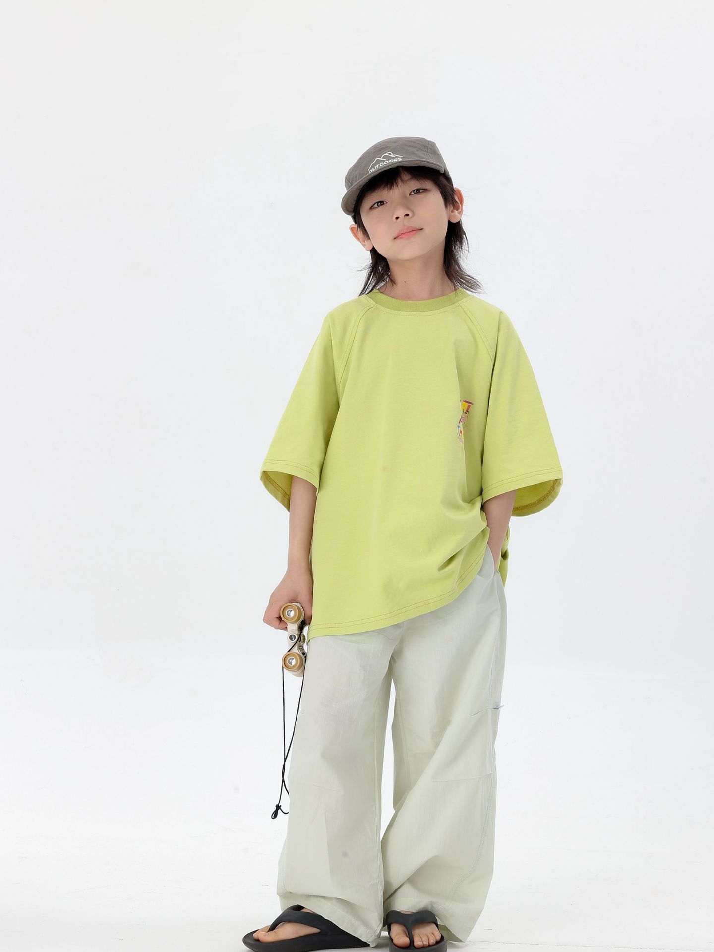 25 새로운 여름 아동 캐주얼 바지 아동용 스트레이트 팬츠 심플하고 멋진 직조 라벨 장식 소년 모기 방지 바지