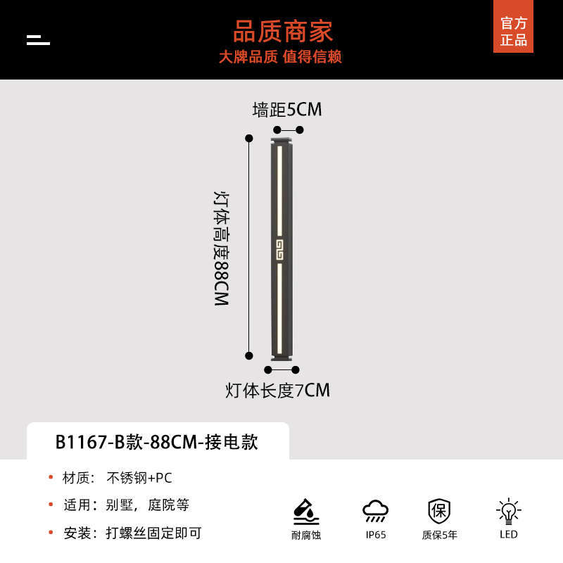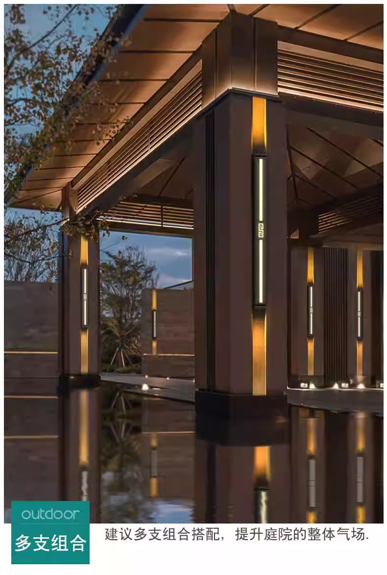 새로운 중국 스타일의 긴 벽 램프 빌라 문 벽 램프 내장 기둥 램프 방수 양방향 외부 벽 램프 야외 안뜰 램프