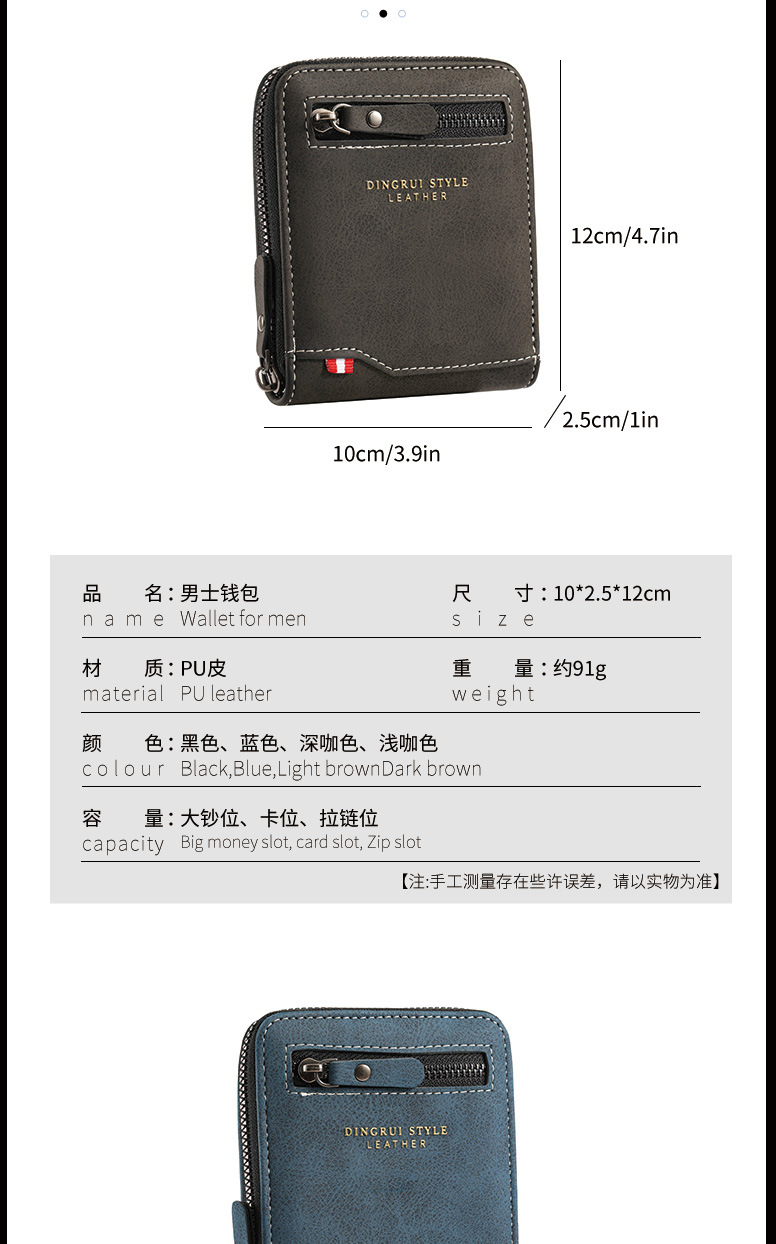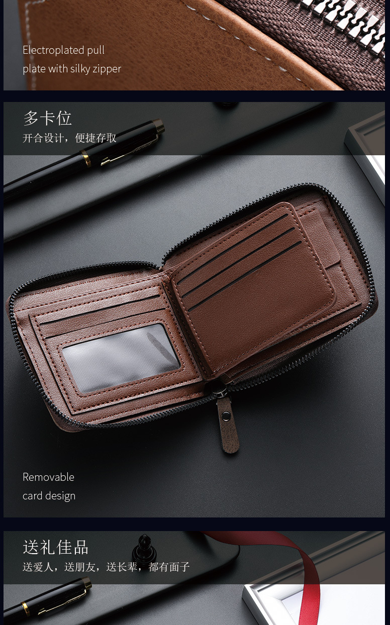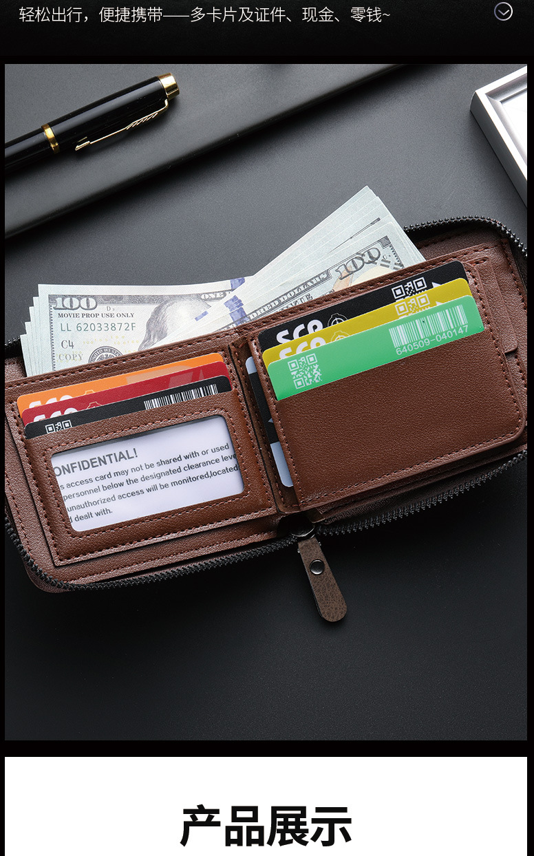 새로운 비즈니스 남성 짧은 지갑 멀티 카드 대용량 성격 지퍼 ID 가방 지갑 운반