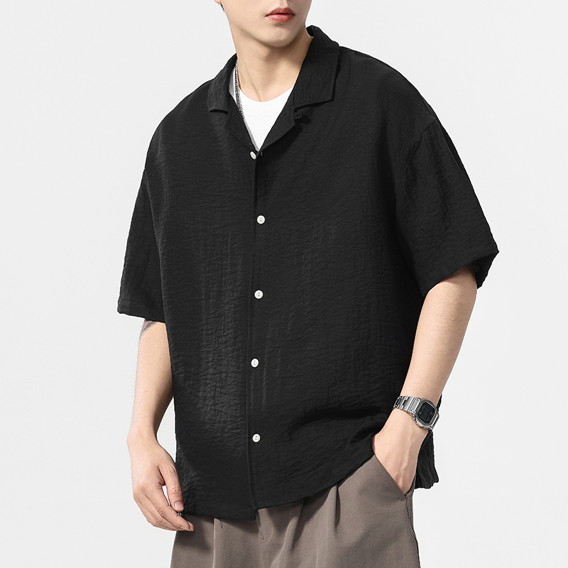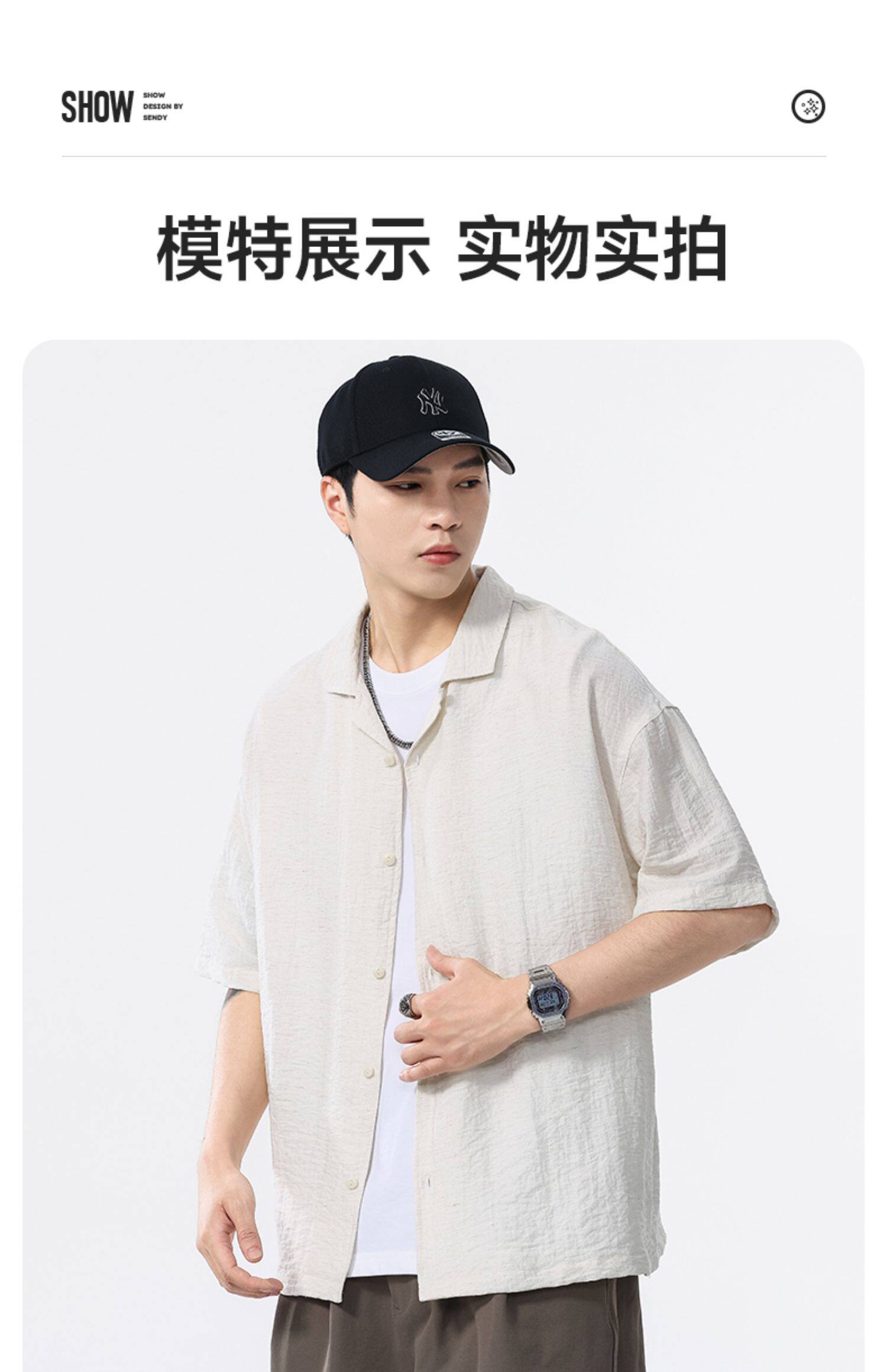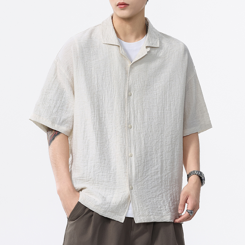 여름 린넨 주름 캐주얼 셔츠 반팔 남성 2025 새로운 스타일 시원하고 통기성이 뛰어나며 다재다능한 남성용 라펠 셔츠스토어 가기