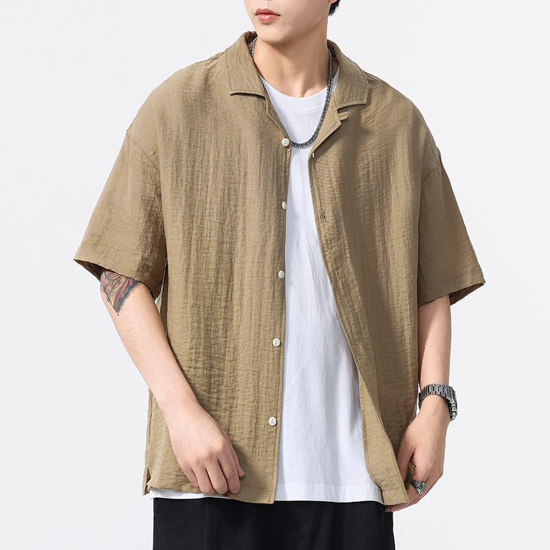 여름 린넨 주름 캐주얼 셔츠 반팔 남성 2025 새로운 스타일 시원하고 통기성이 뛰어나며 다재다능한 남성용 라펠 셔츠