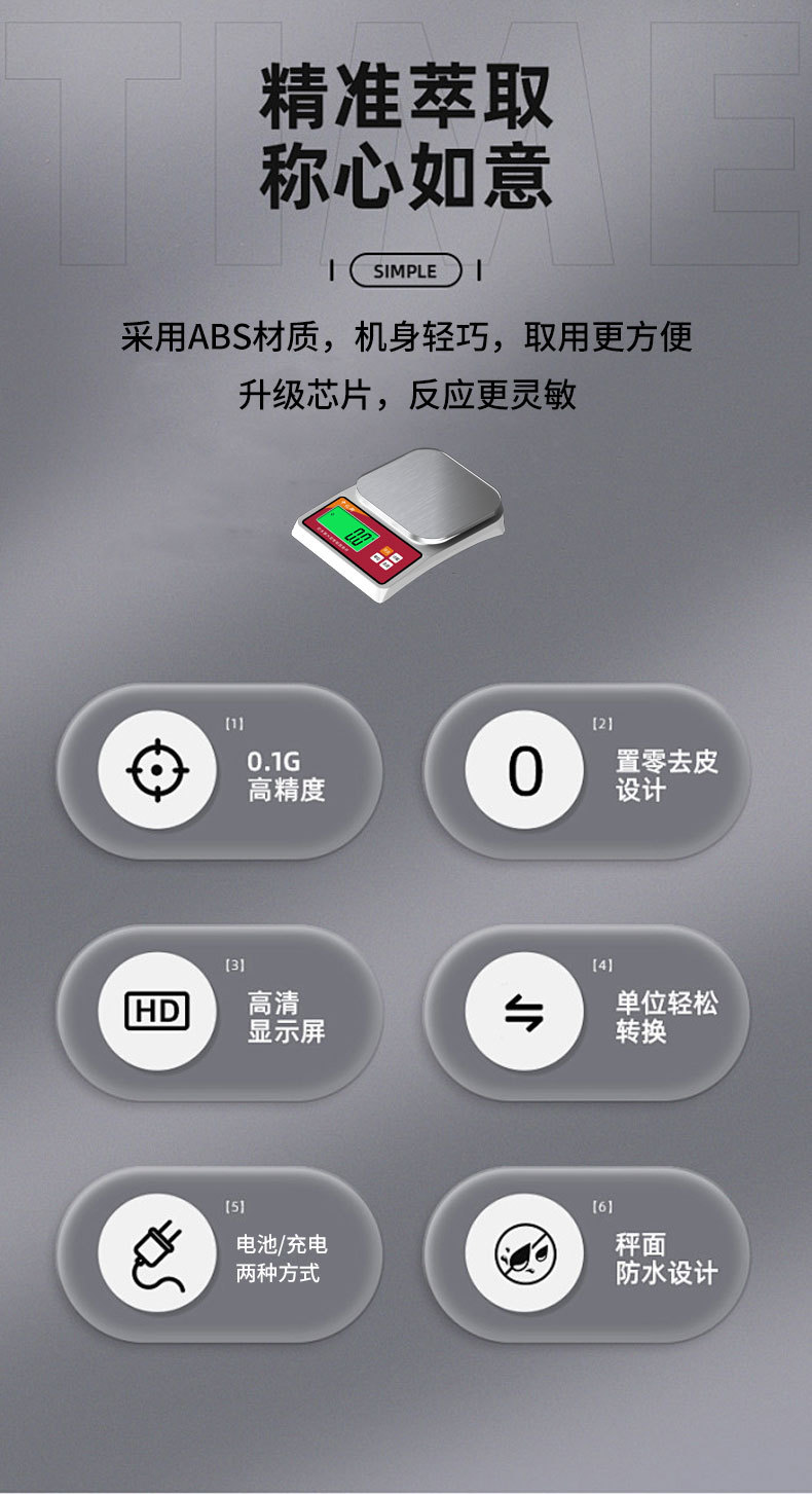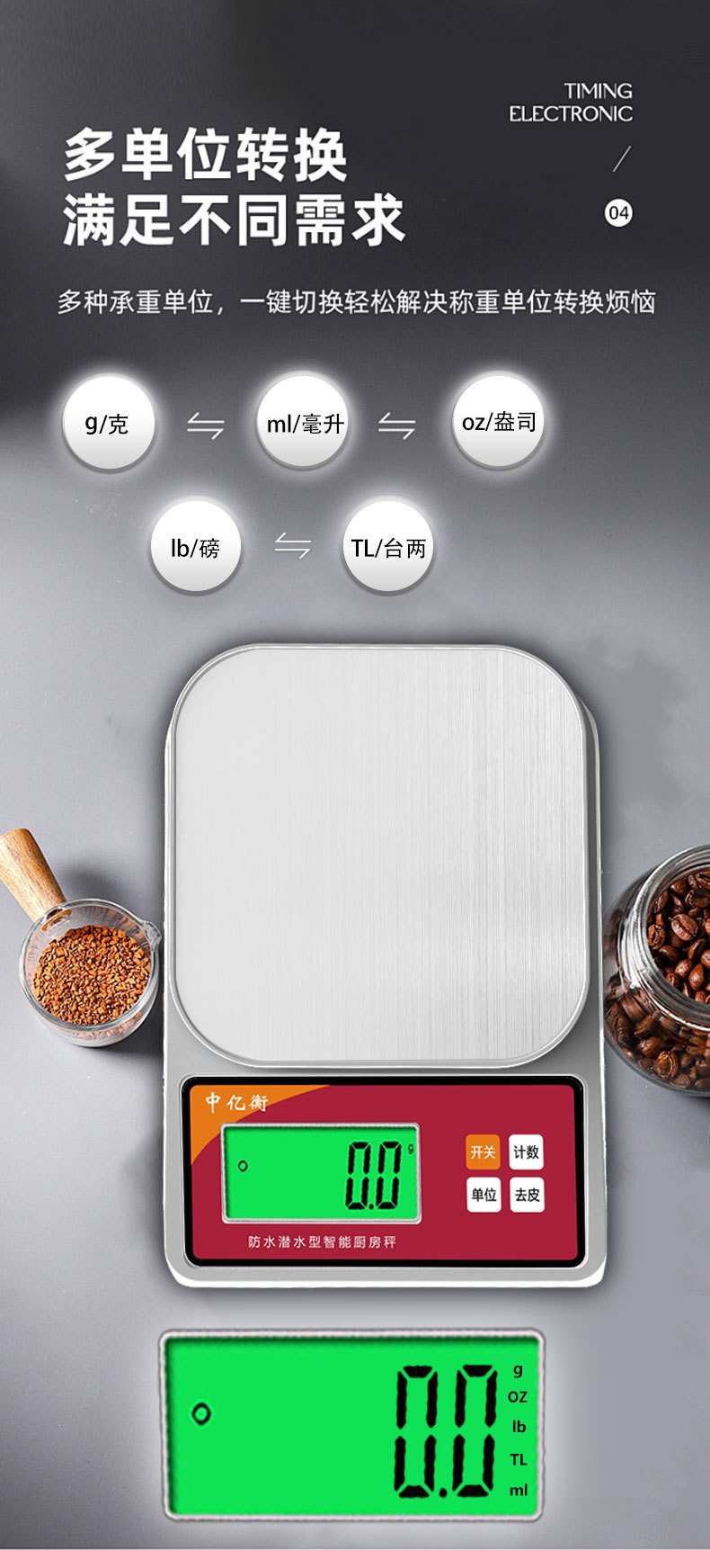 Zhongyi Heng 방수 주방 저울 고정밀 가정용 전자 저울 정확한 베이킹 계량 식품 그램 무게 0.1g