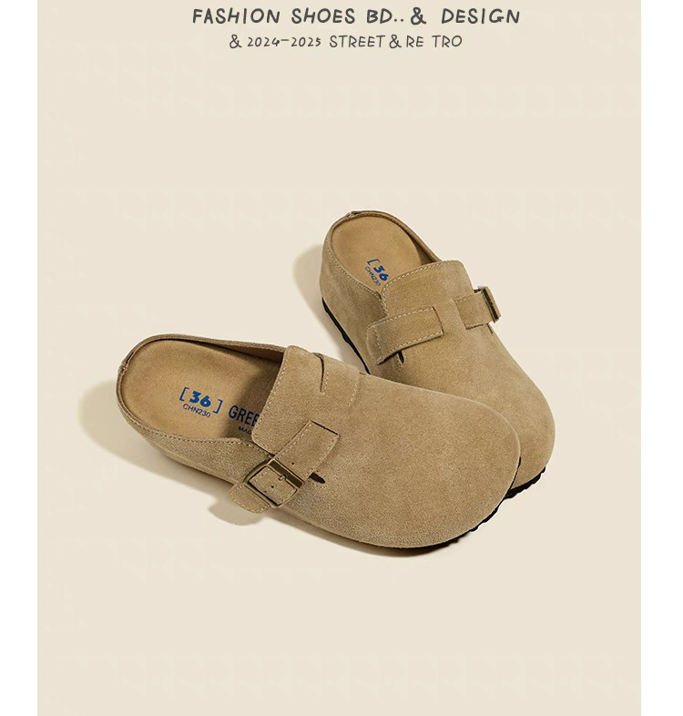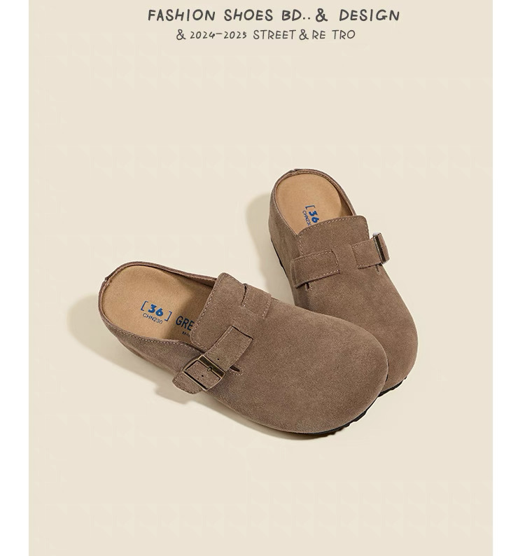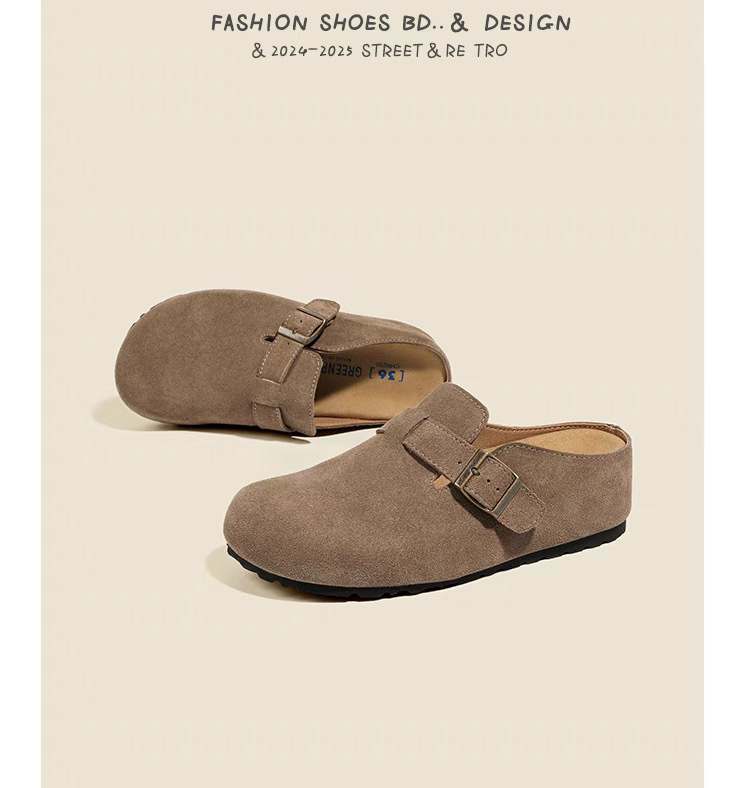 내부 키높이 여성화, 천연가죽 두꺼운 밑창 버켄스탁 스타일, 2026 봄 여름 신상, 앞코가 막힌 슬리퍼, 외출용 레이지 슈즈