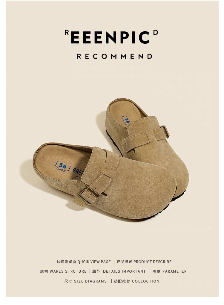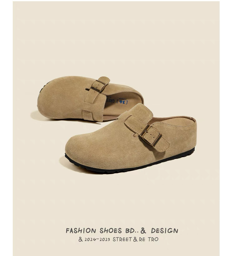 내부 키높이 여성화, 천연가죽 두꺼운 밑창 버켄스탁 스타일, 2026 봄 여름 신상, 앞코가 막힌 슬리퍼, 외출용 레이지 슈즈스토어 가기