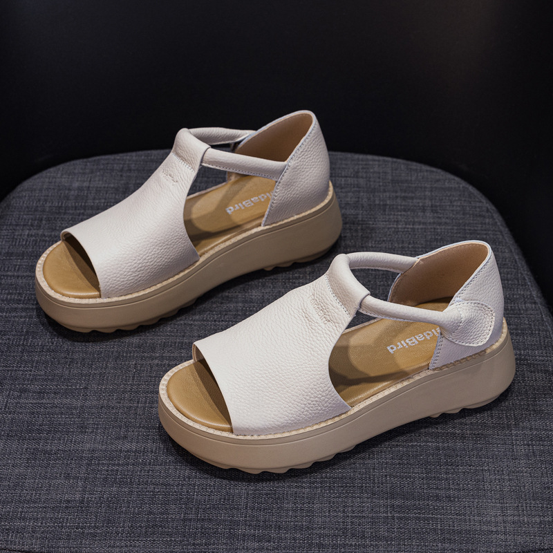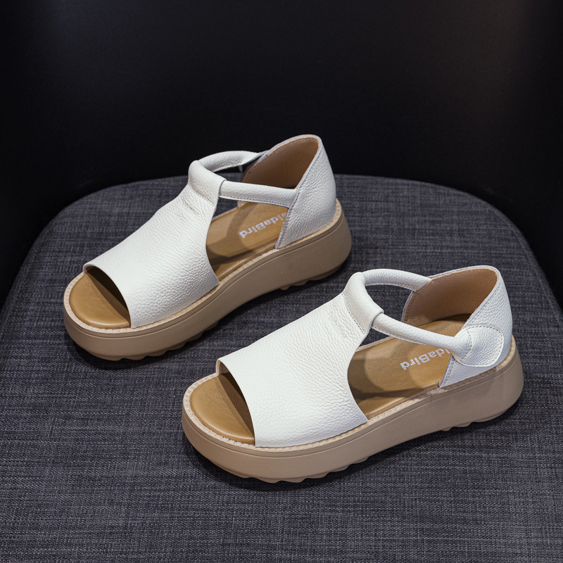 여성을위한 탑 레이어 Cowhide 가죽 샌들 2025 여름 새로운 복고풍 스타일 플랫폼 경량 생선 입 가죽 높이 증가 샌들스토어 가기