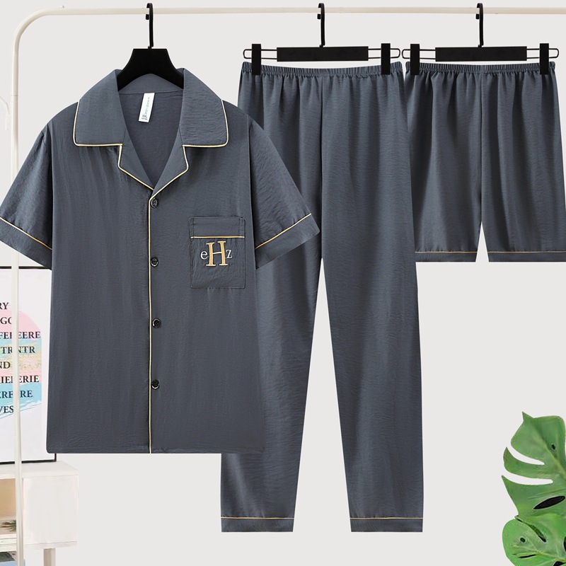 잠옷 남자 여름 구름 면 3 조각 세트 2025 새로운 도착 얇은 반팔 반바지 여름 홈 의류