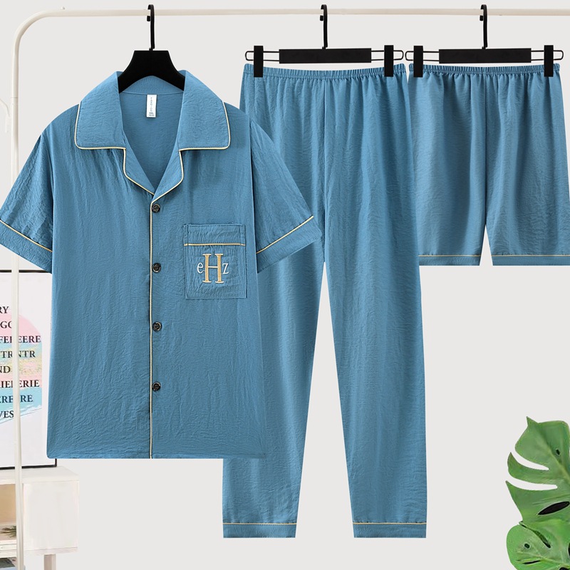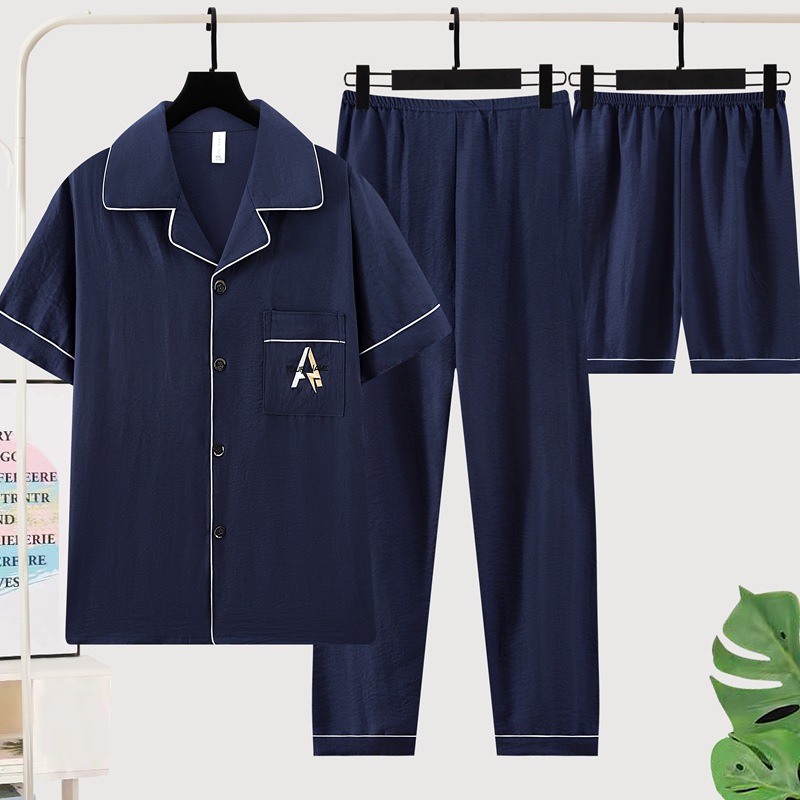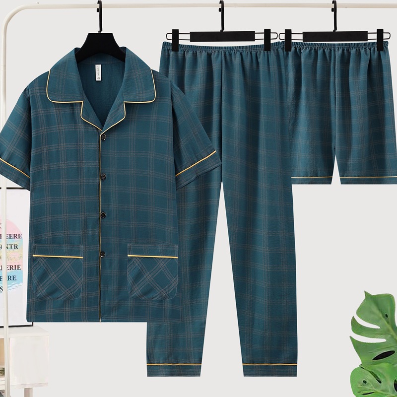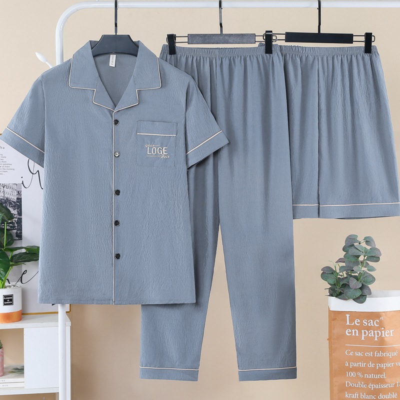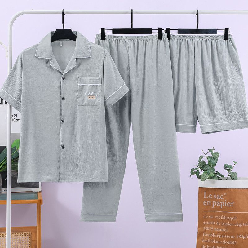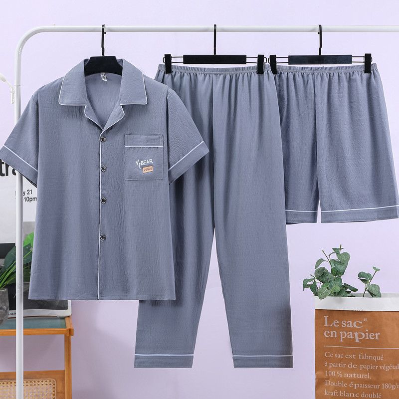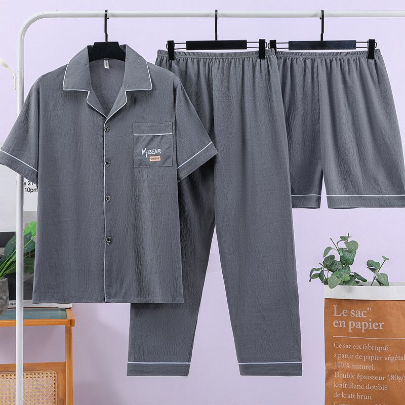 잠옷 남자 여름 구름 면 3 조각 세트 2025 새로운 도착 얇은 반팔 반바지 여름 홈 의류스토어 가기