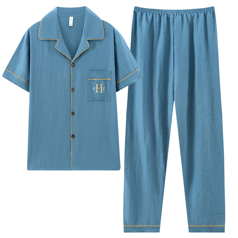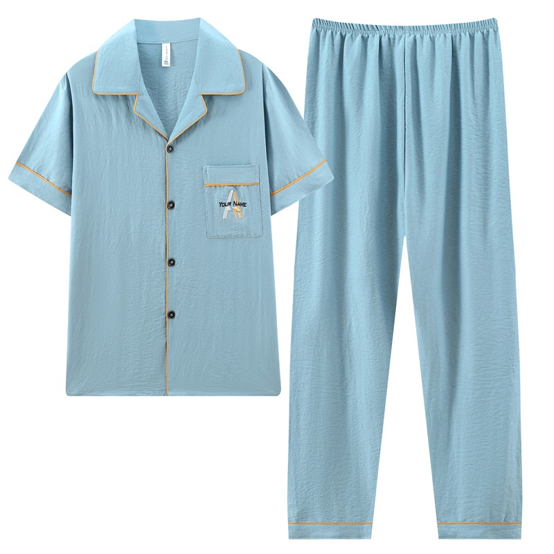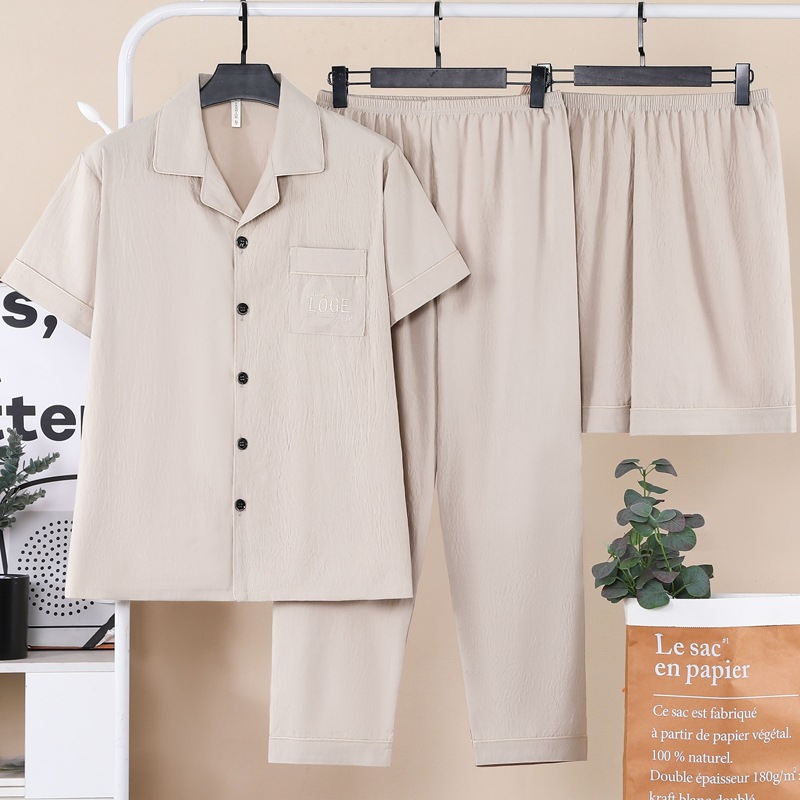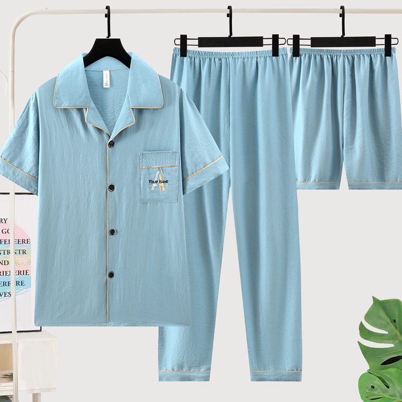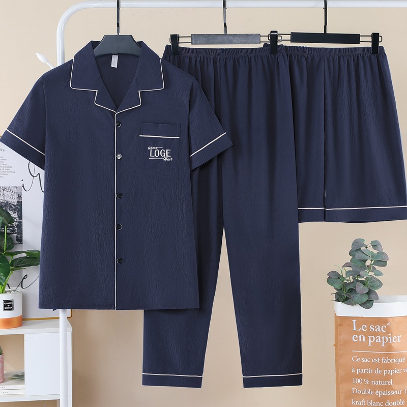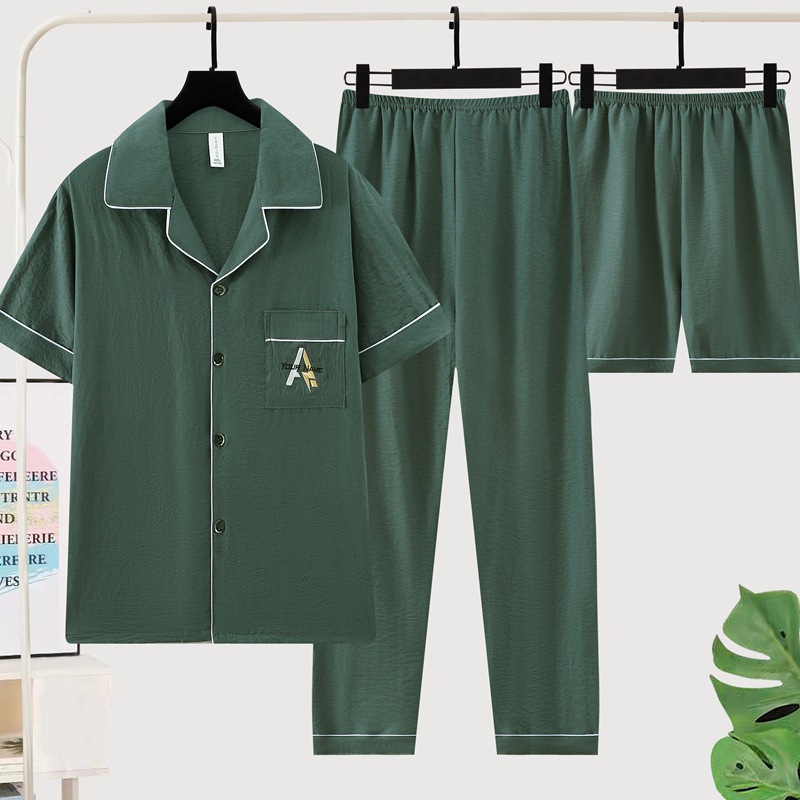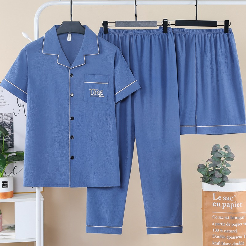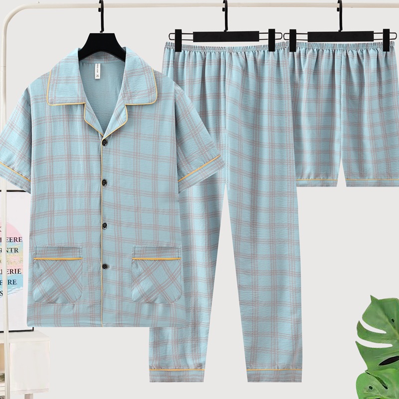 잠옷 남자 여름 구름 면 3 조각 세트 2025 새로운 도착 얇은 반팔 반바지 여름 홈 의류스토어 가기