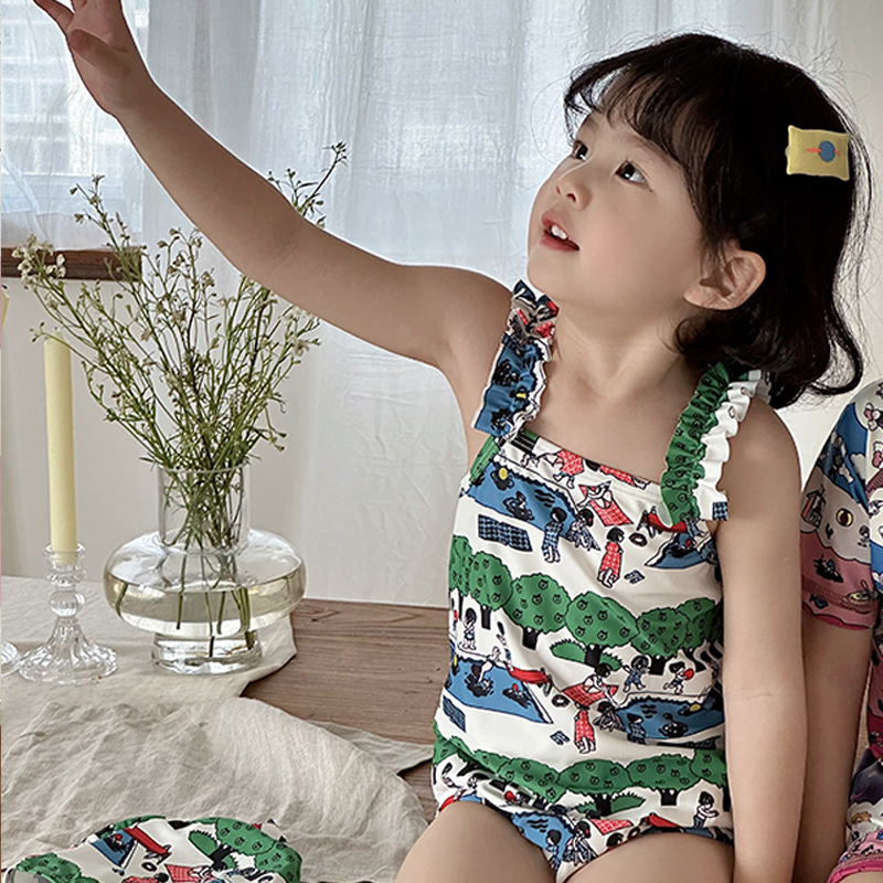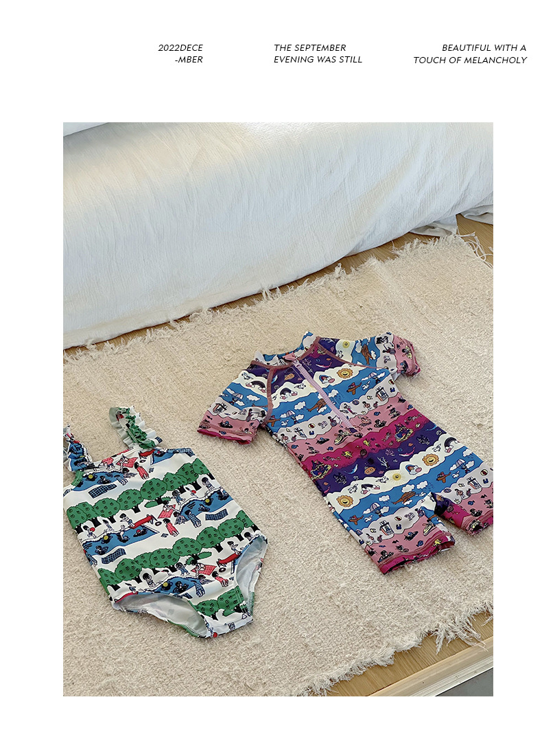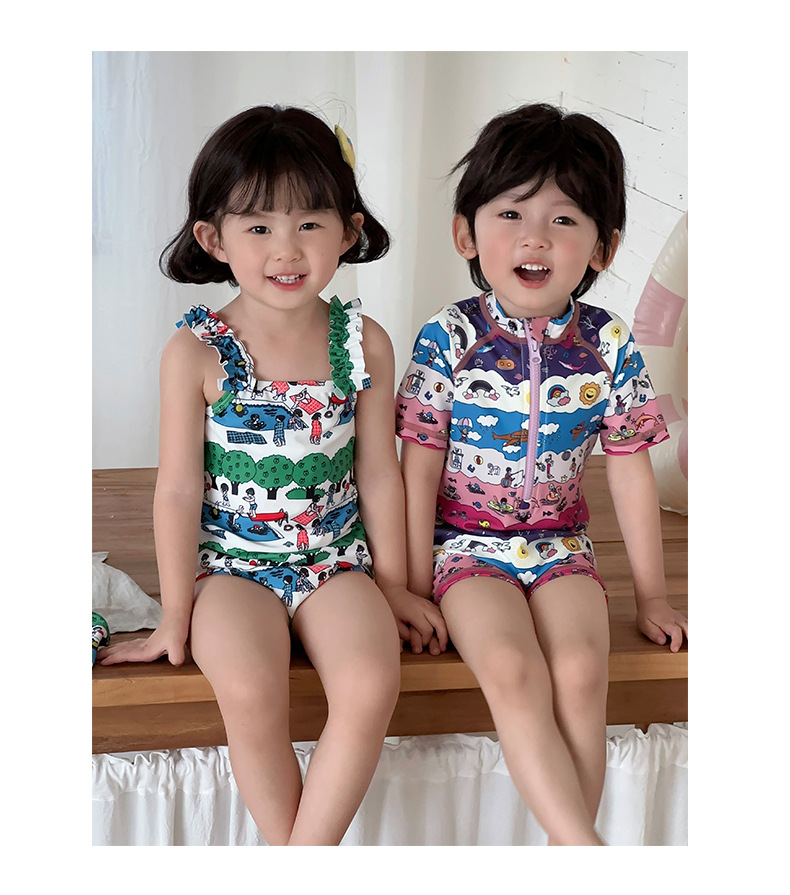 2025 새로운 어린이 수영복 원피스 형제와 자매 스타일 귀여운 속건성 수영복 수영장 물놀이 해변 수영복스토어 가기
