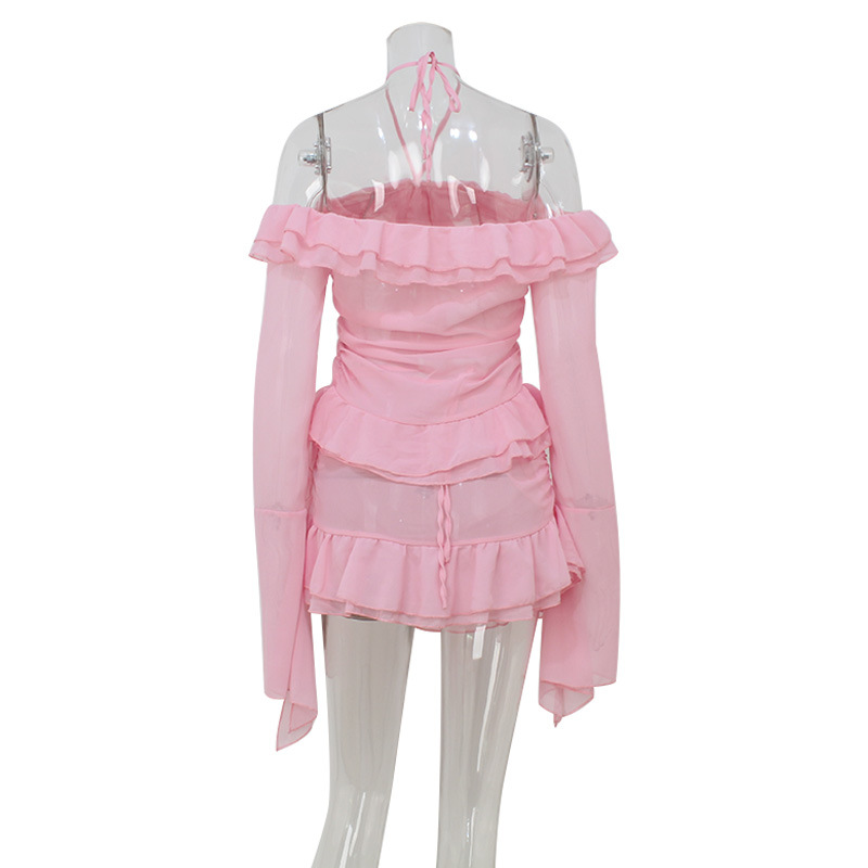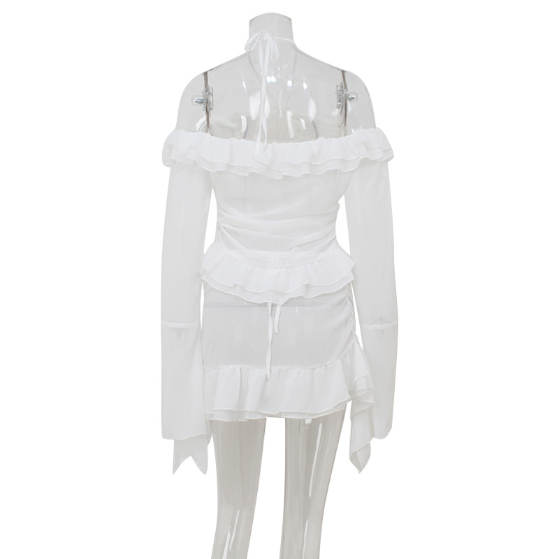 유럽과 미국의 국경 여성 의류 여름 새로운 패션 우아한 트럼펫 소매 귀 테두리 최고 틈새 디자인 짧은 치마 세트스토어 가기