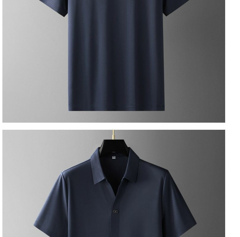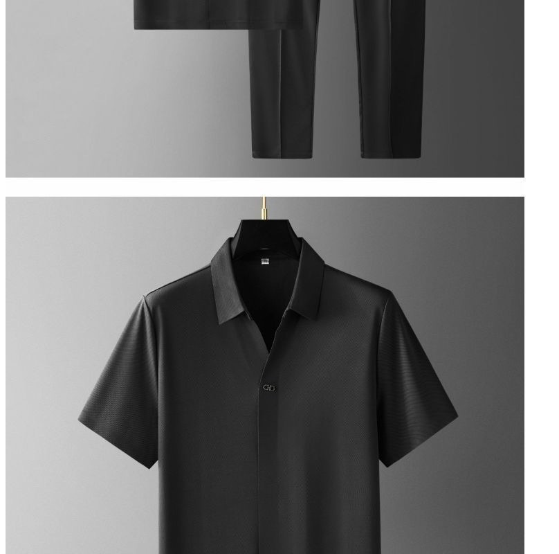 夏季超薄滑冰高端压胶短袖衬衫套装冰丝商务休闲男士运动两件套